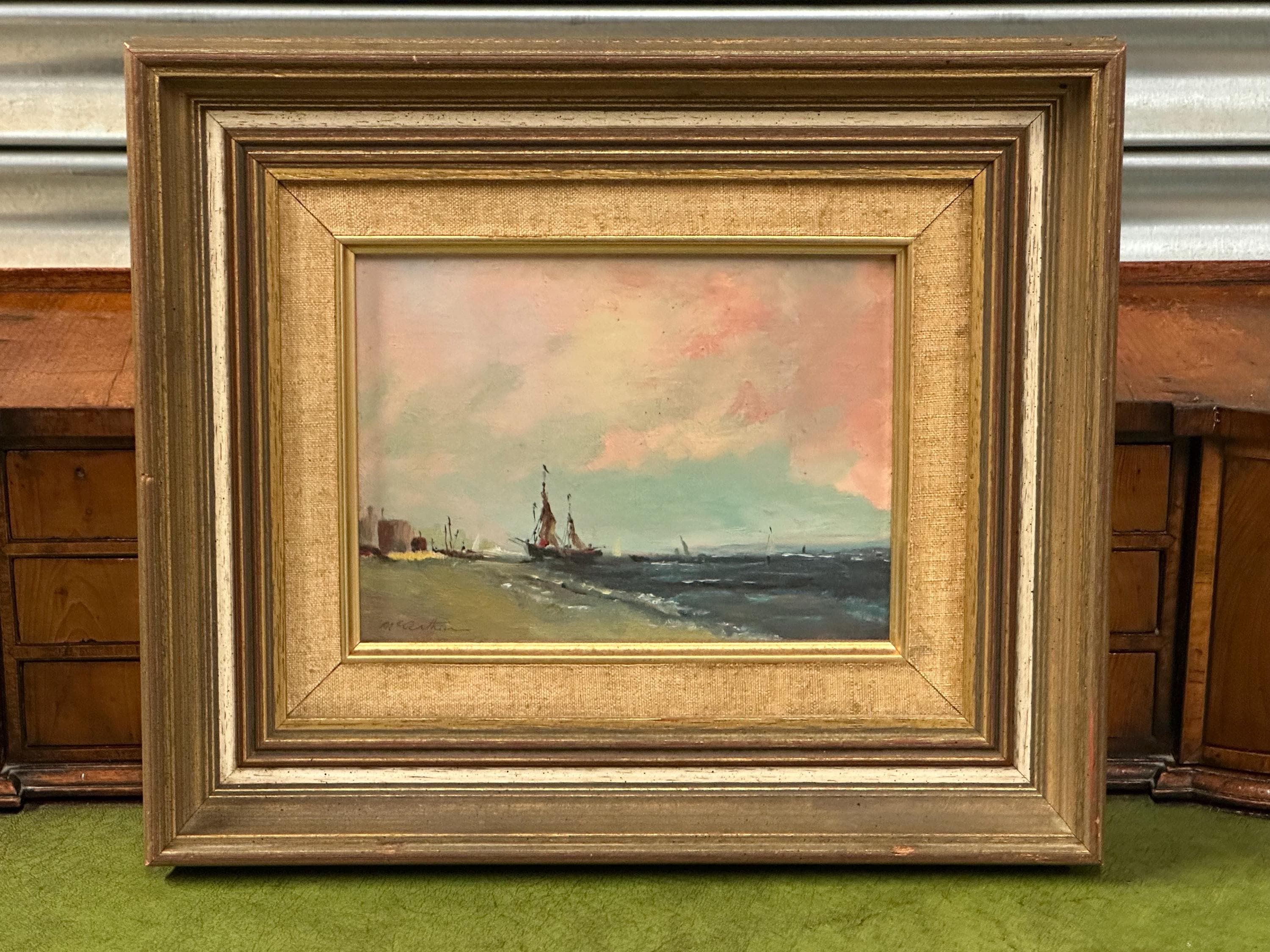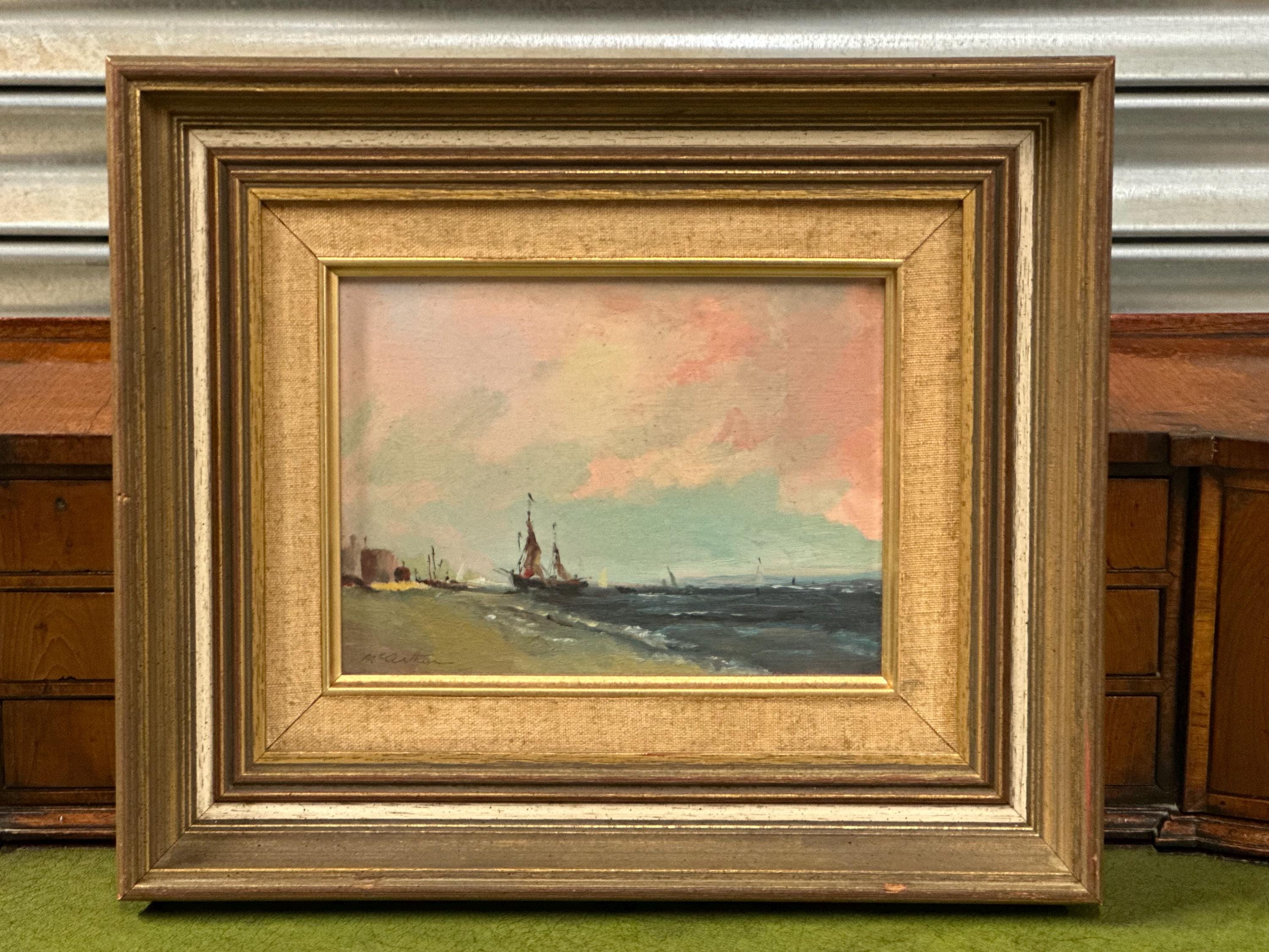 Thomas McArthur Oil Painting Seascape Boats Coastal Scene Framed British Artist