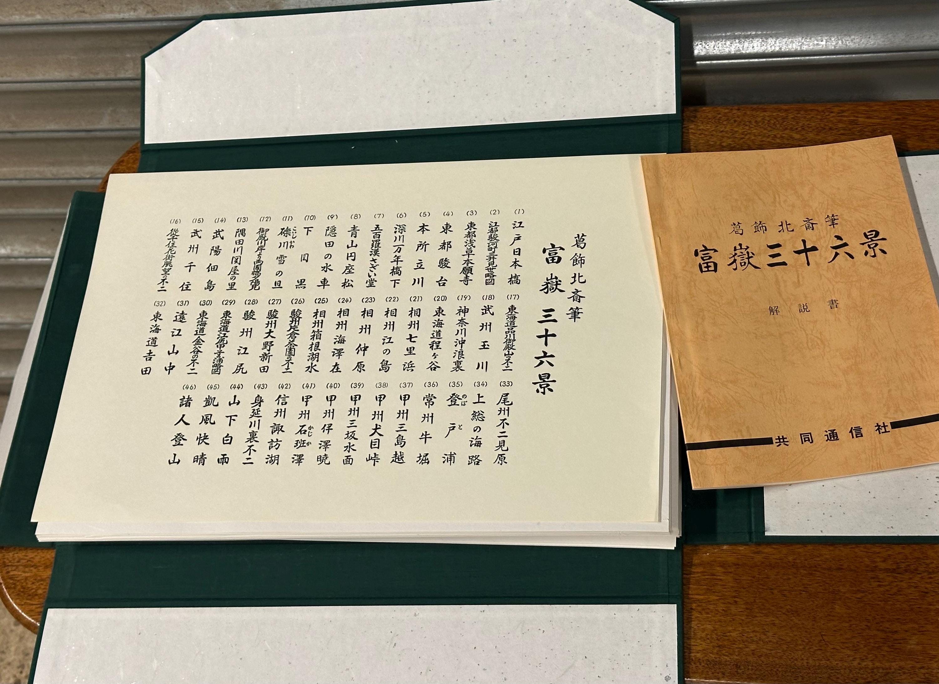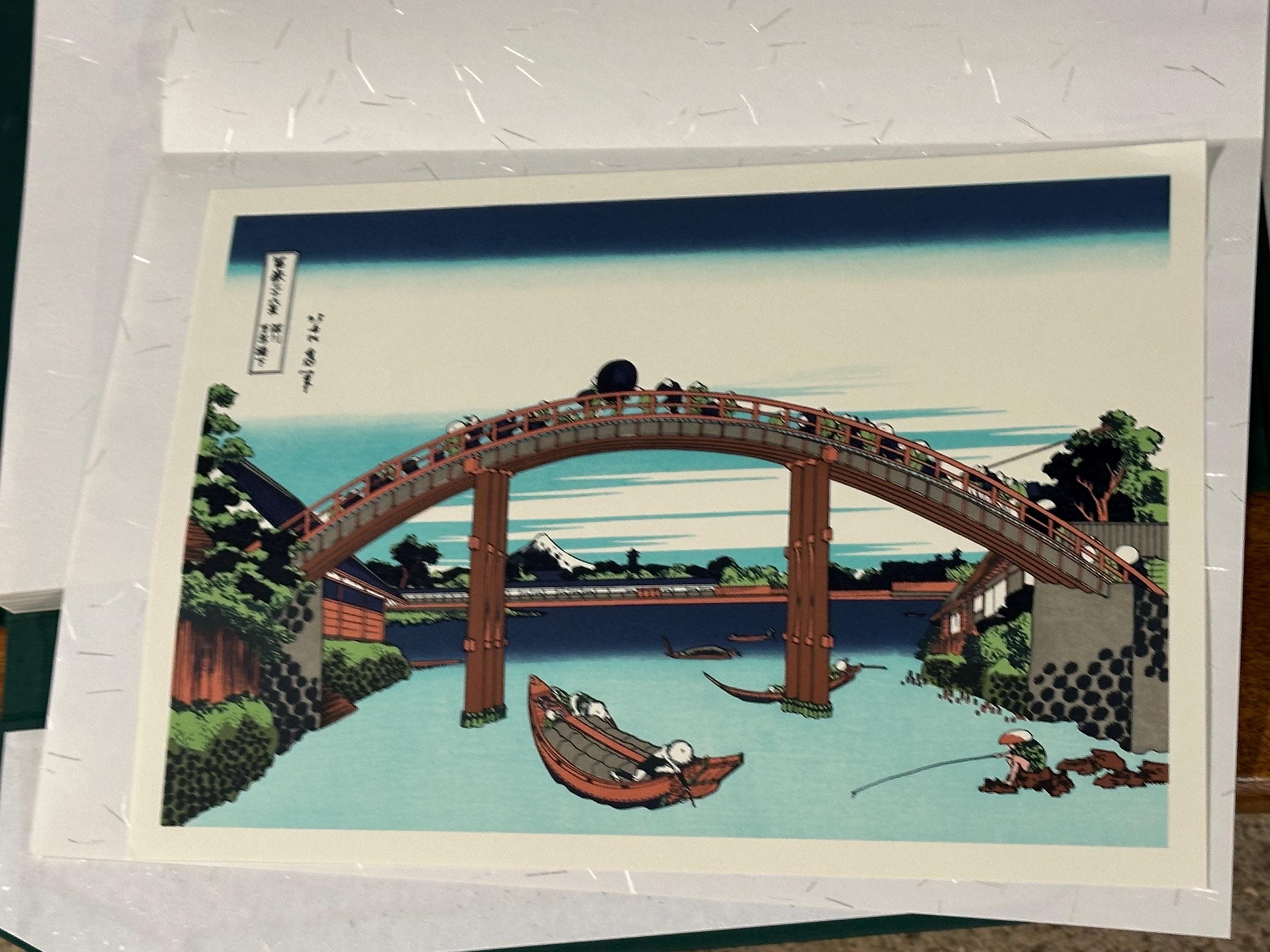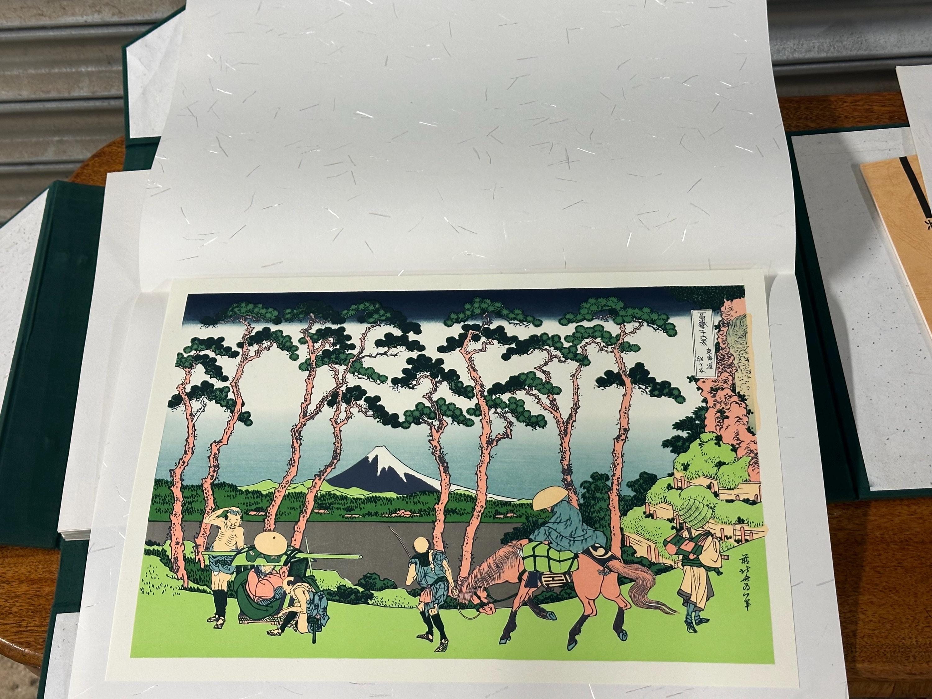 Japanese Woodblock Prints – Thirty‑six Views of Mount Fuji by Katsushika Hokusai, Complete Set of 46 - With Original Folder circa 1982