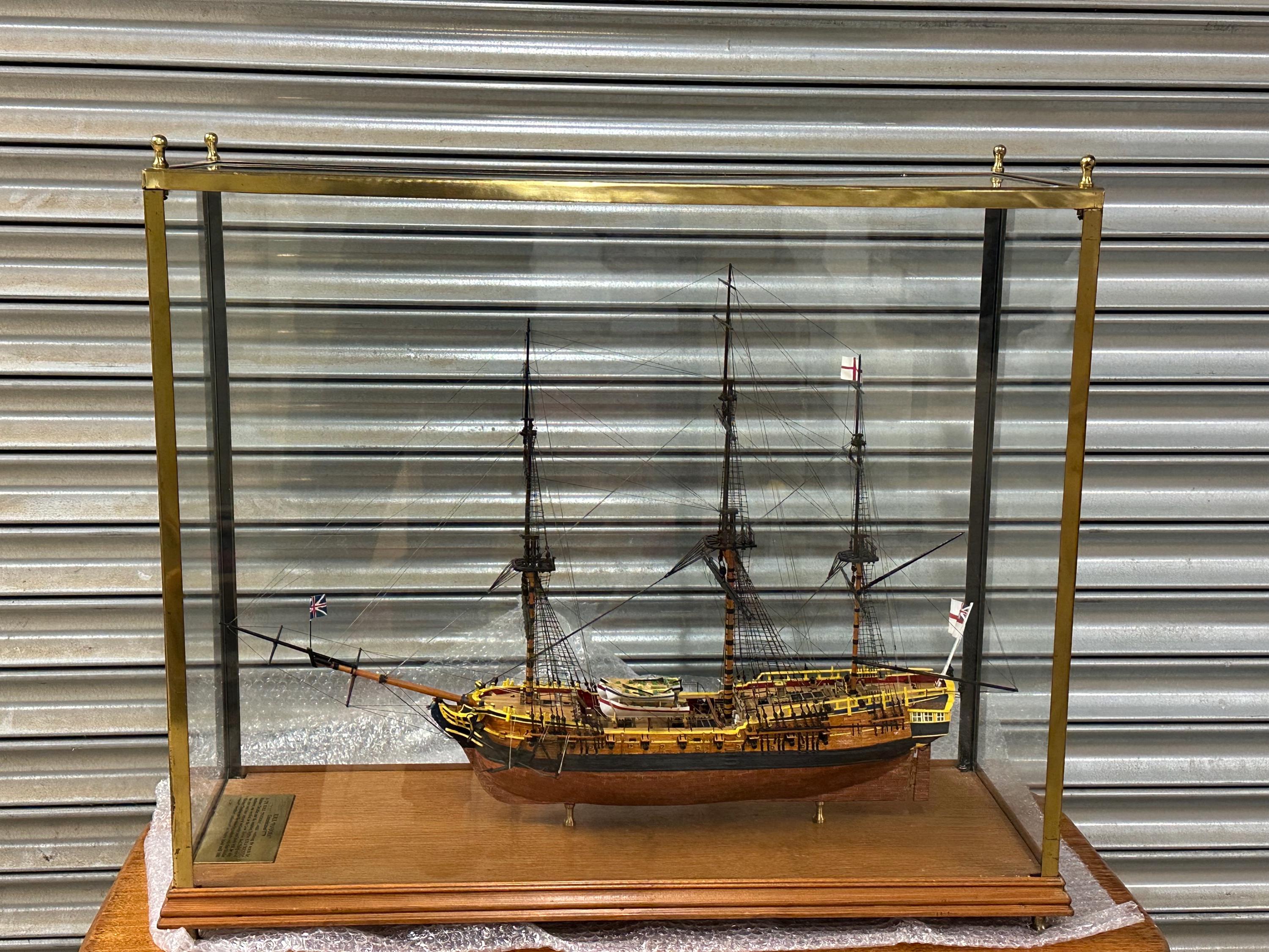 HMS Pandora Ship Model In Glass Display Case – Wooden Base Maritime Model – Detailed Rigging