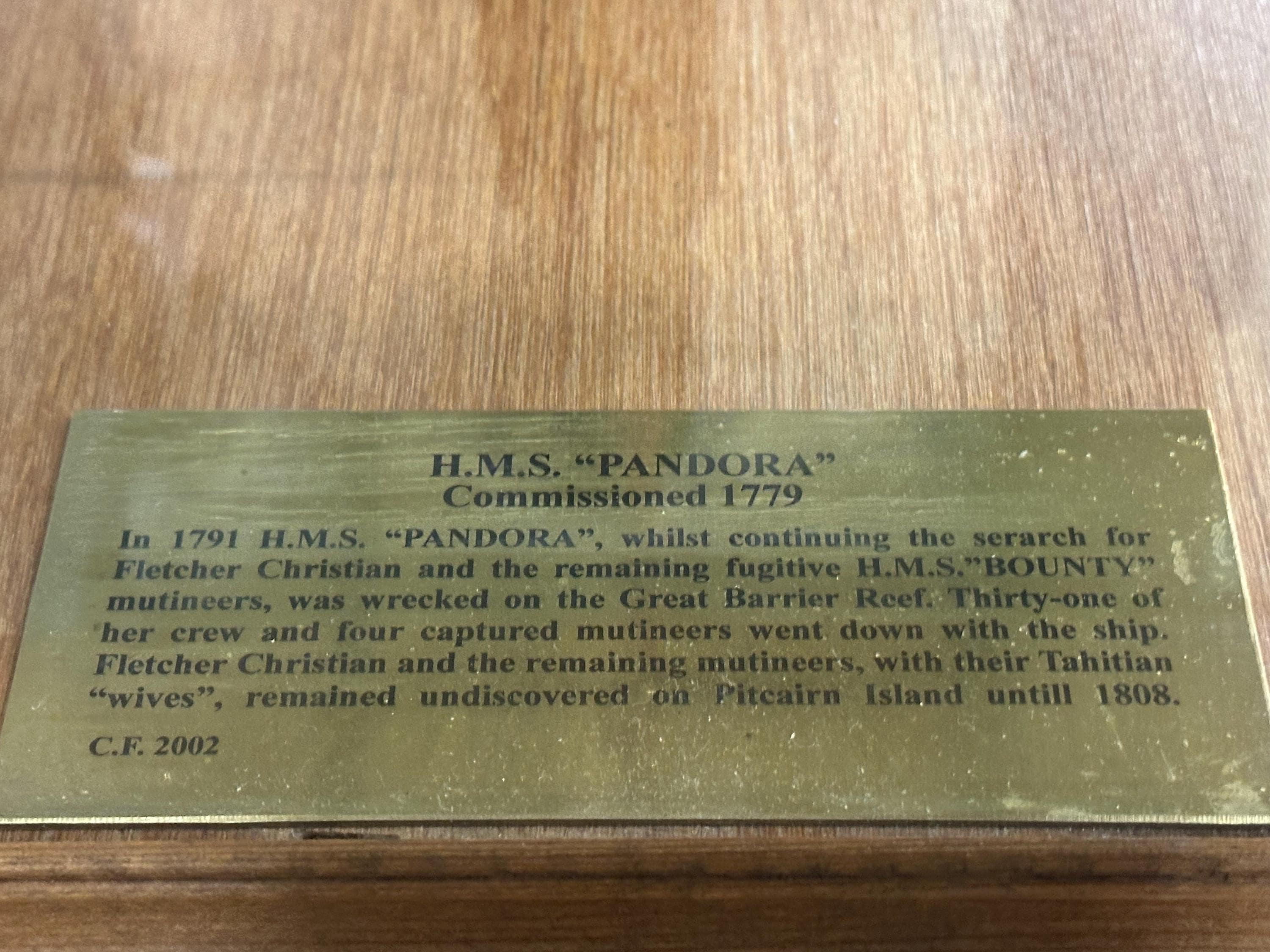 • Model ship: H.M.S. Pandora (commissioned 1779)