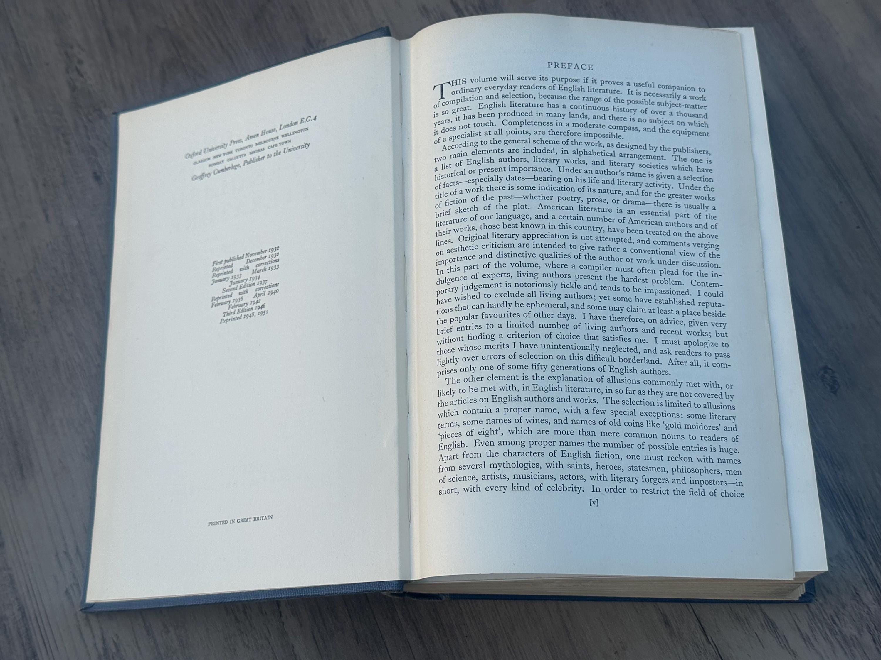 A highly respected literary reference work and an essential addition to any library, book collection, or study of English literature. Ideal for collectors of vintage Oxford reference books or those interested in literary history.