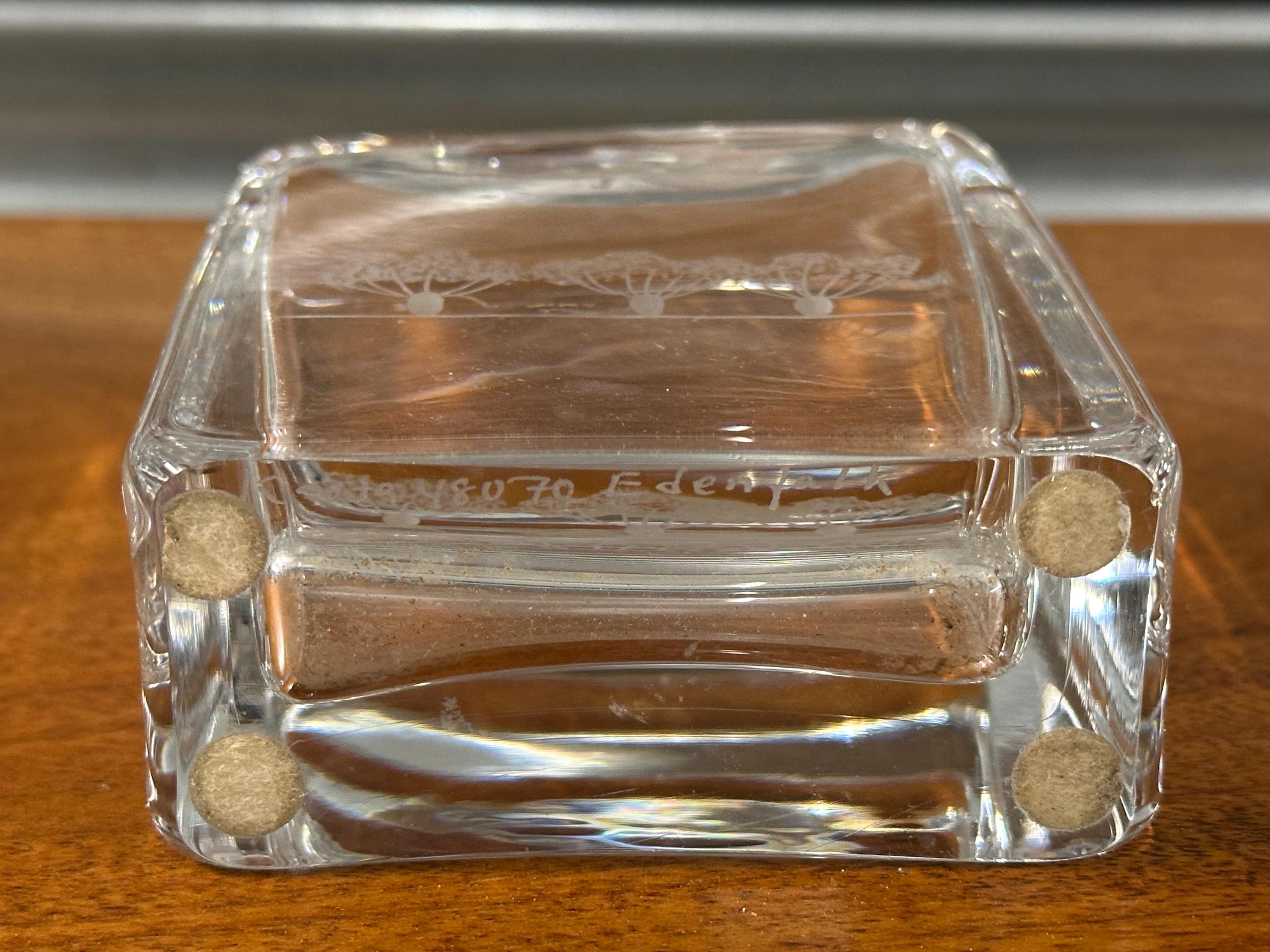The base is engraved “Bengt Edenfalk” along with model details, confirming its attribution to the celebrated Swedish designer who worked extensively with Skruf Glassworks during the 1950s–1970s.