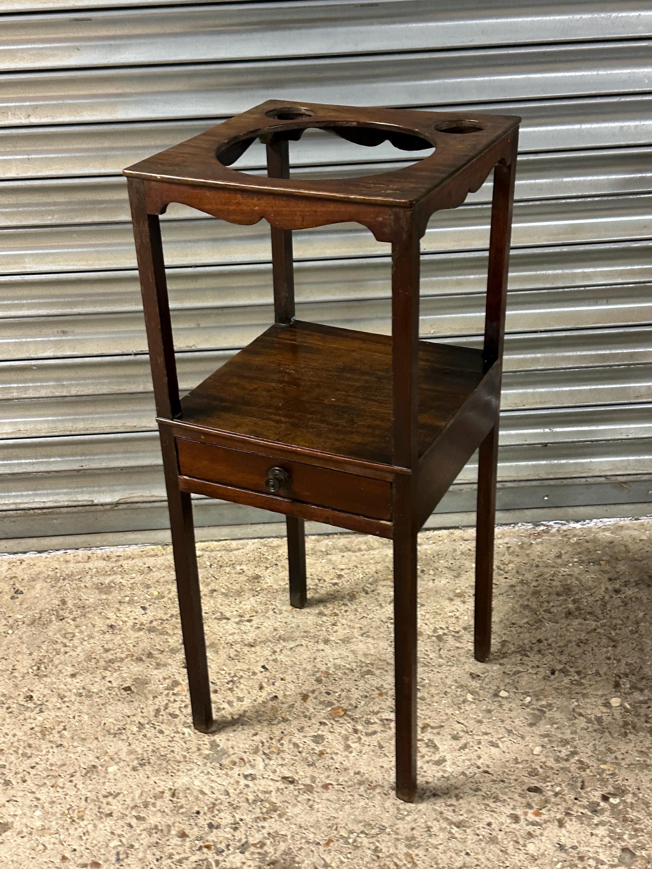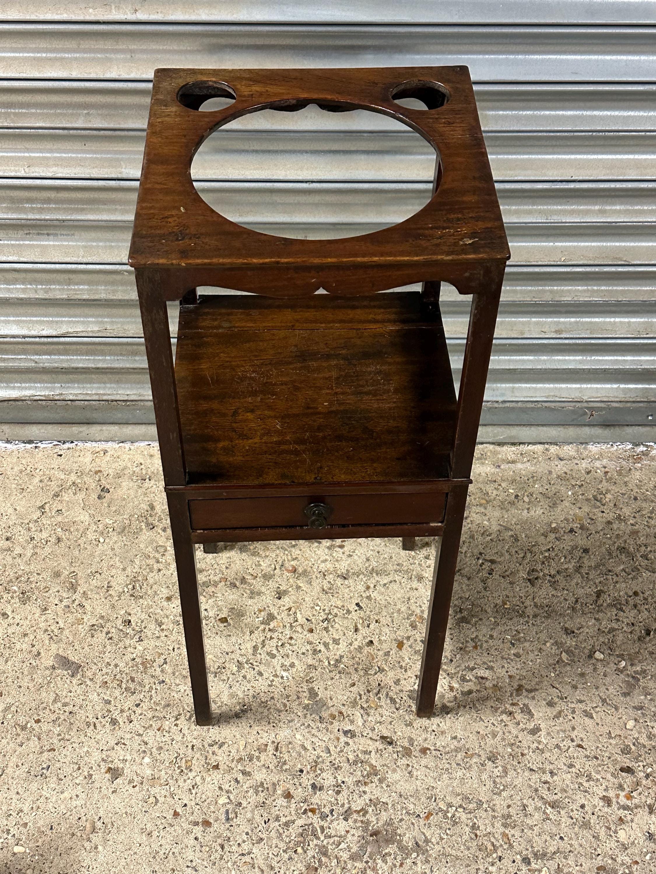 Antique Georgian Mahogany Washstand – Drawer & Shelf