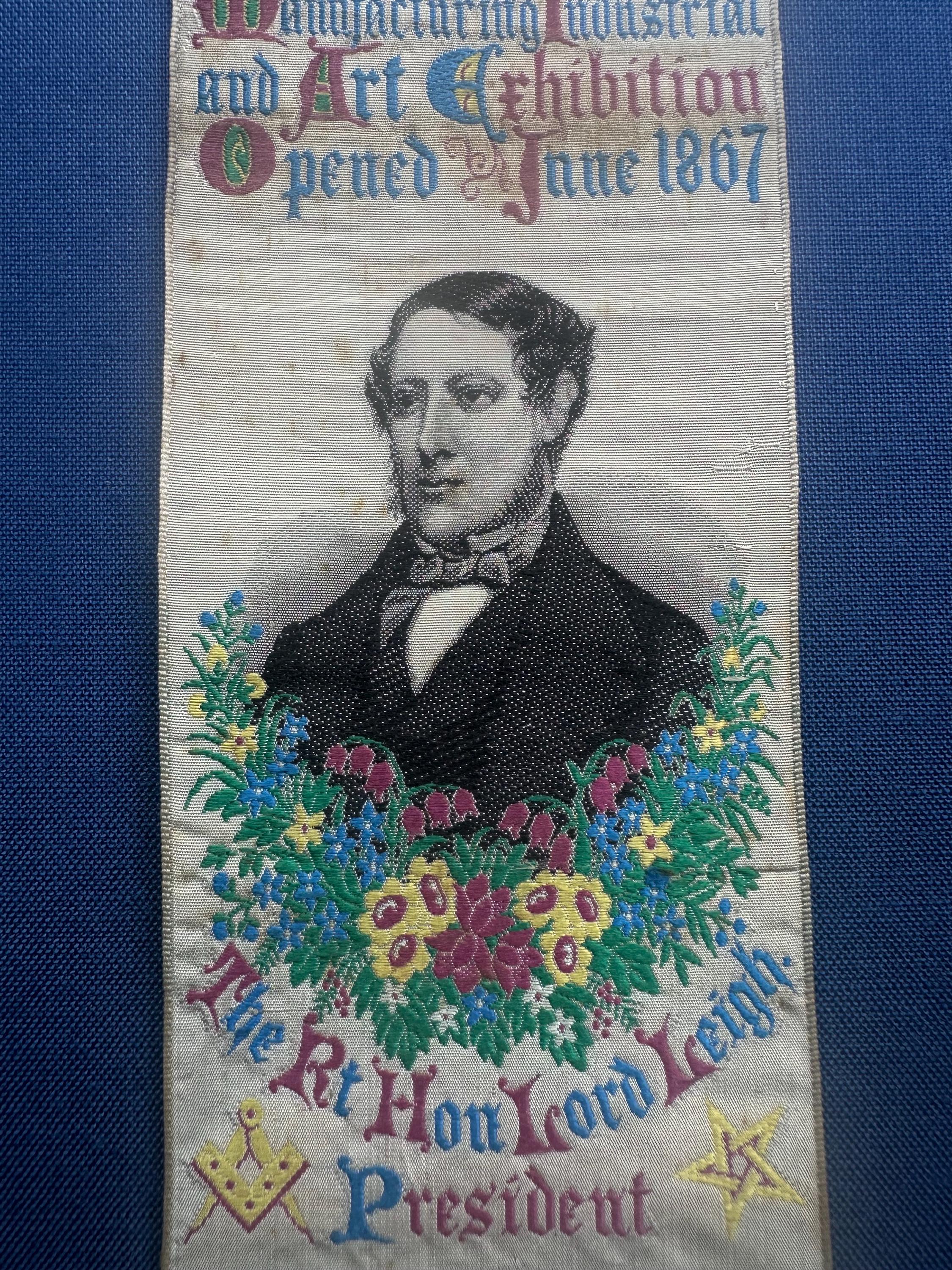 This ribbon was woven at the Exhibition and reported upon in The Royal Leamington Chronicle of 29th June 1867:
