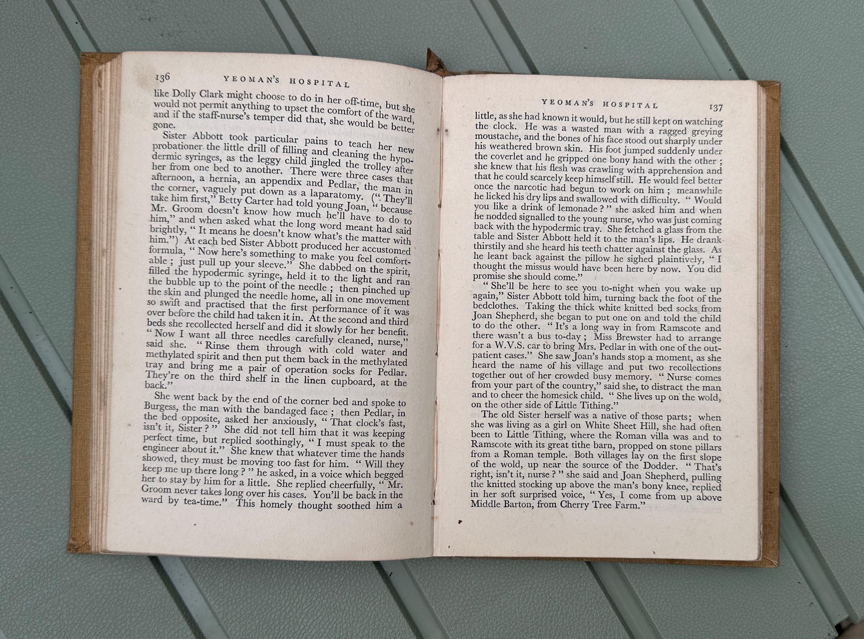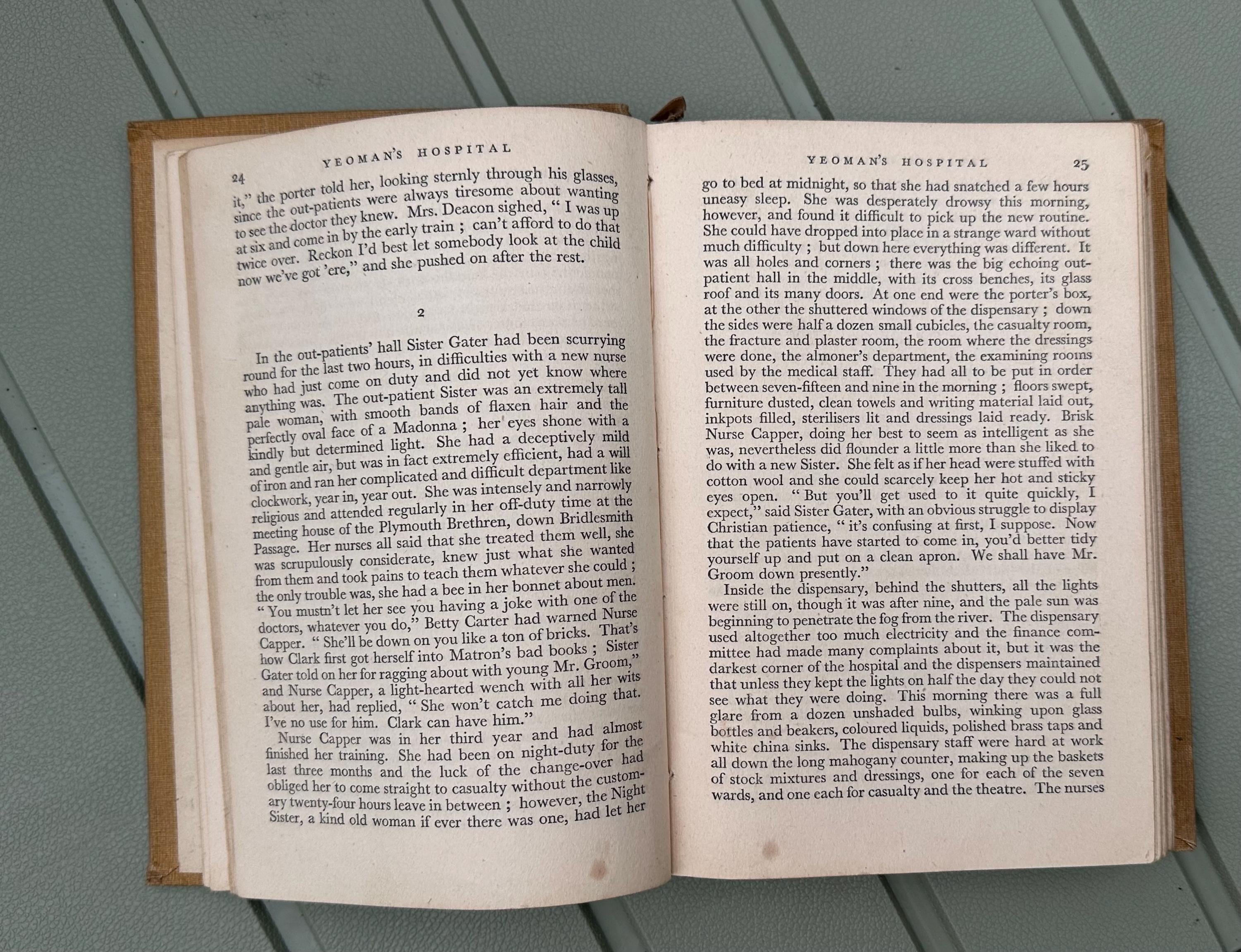 A charming vintage hardback edition of Yeoman’s Hospital by Helen Ashton, published in 1944 by Collins, London. A classic mid-20th century novel set within a fictional hospital, offering a fascinating glimpse into wartime-era storytelling and medical life.