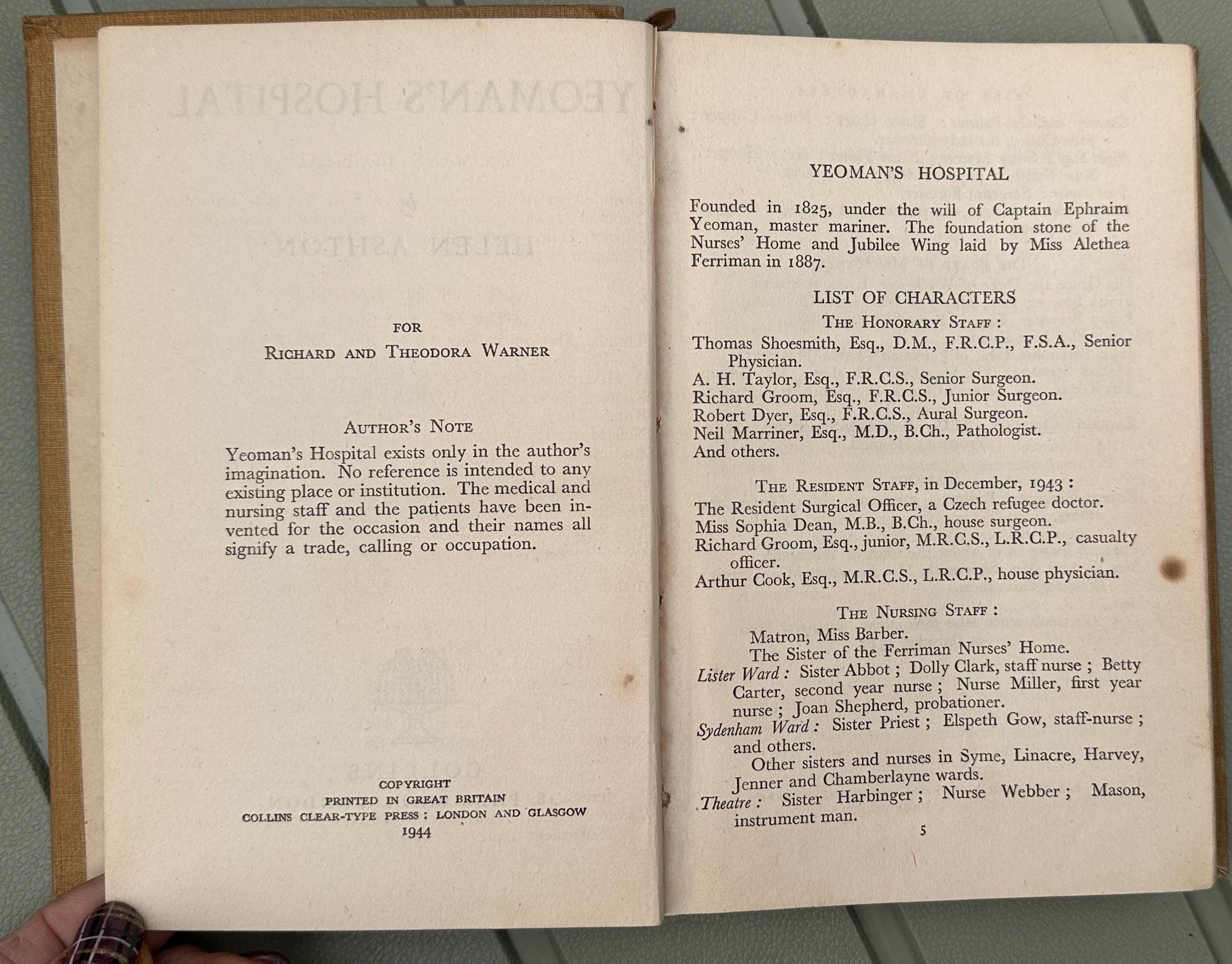 📚 Yeoman’s Hospital – Helen Ashton (1944) | Vintage Hardback Novel
