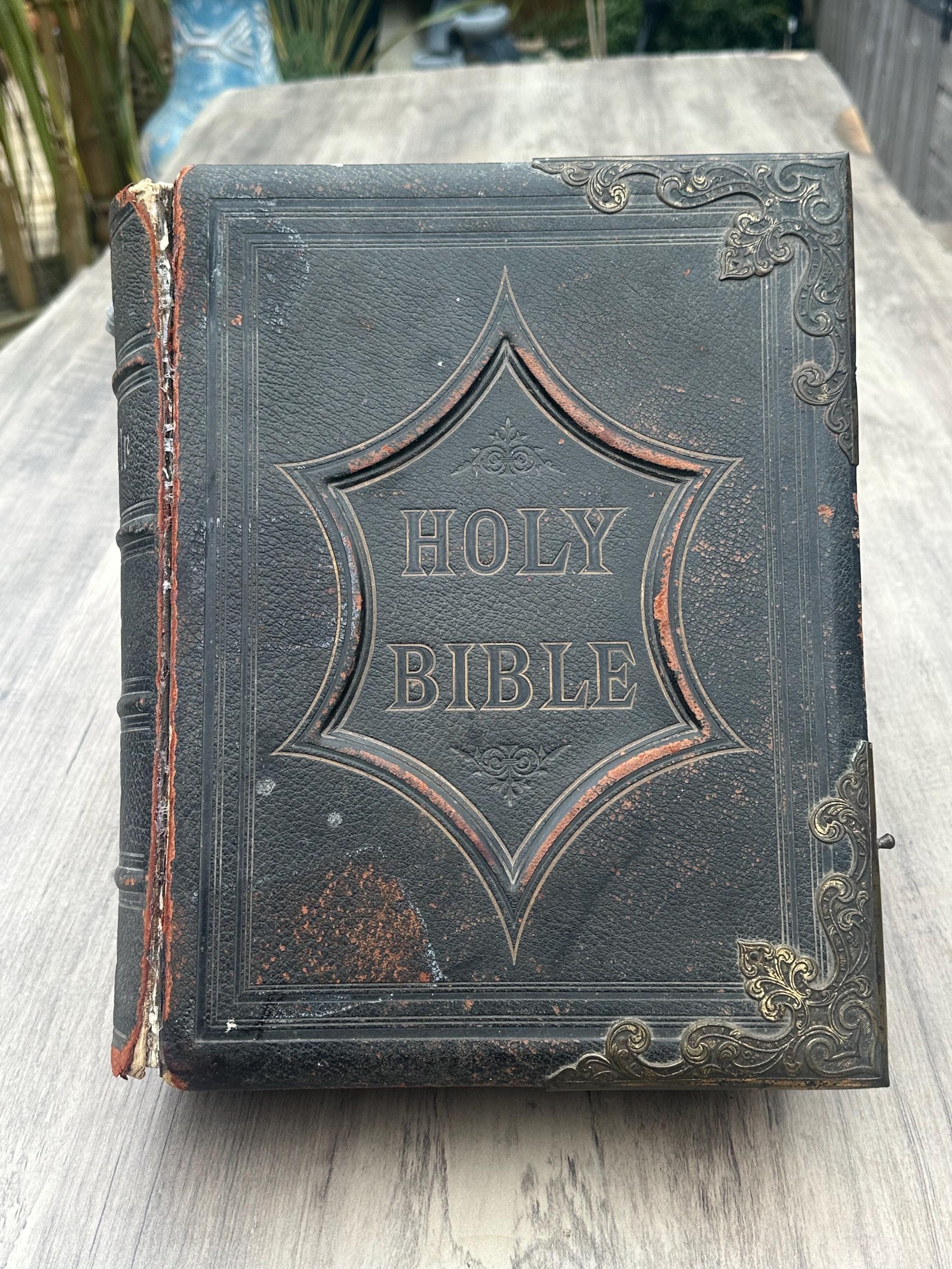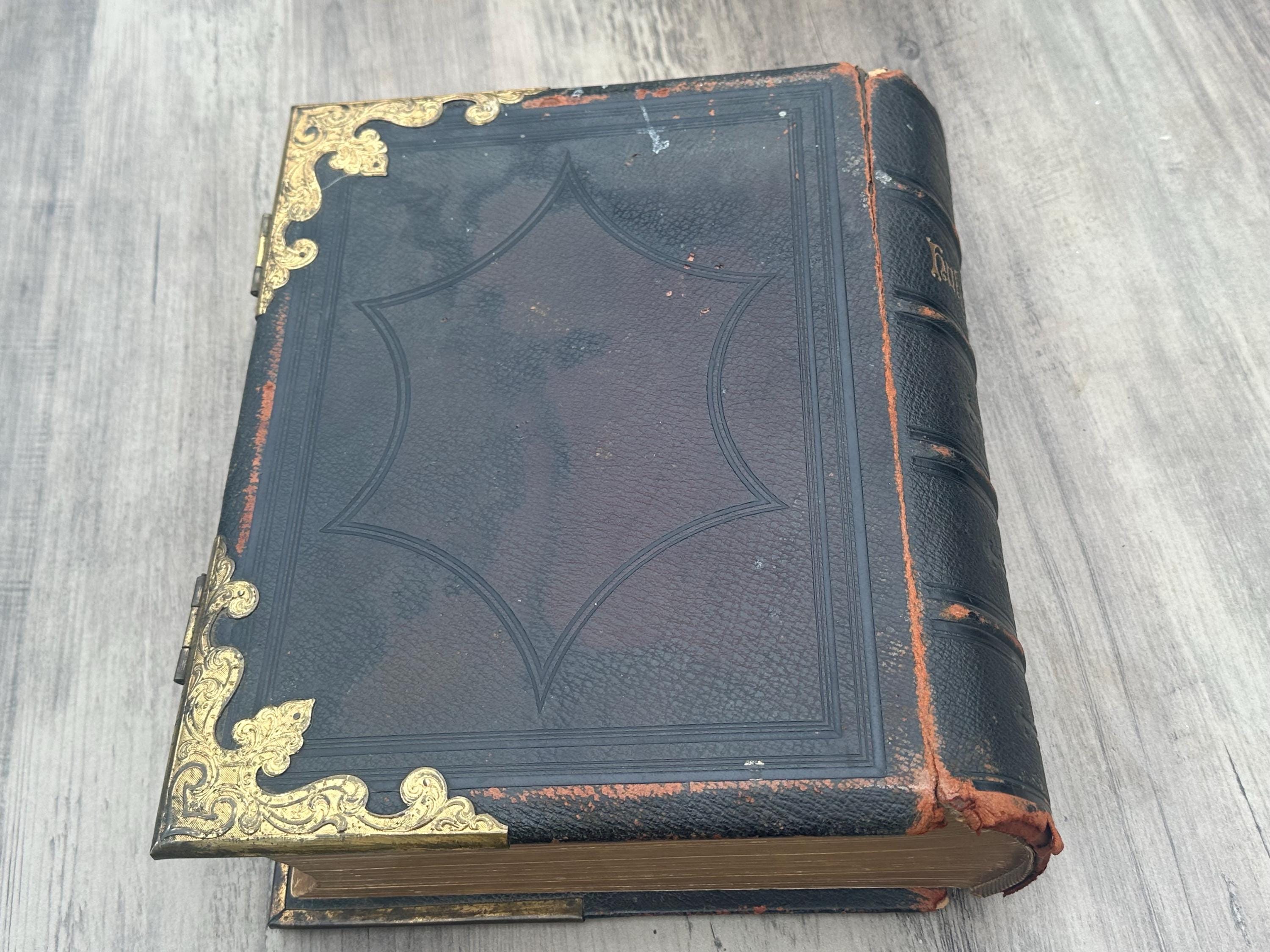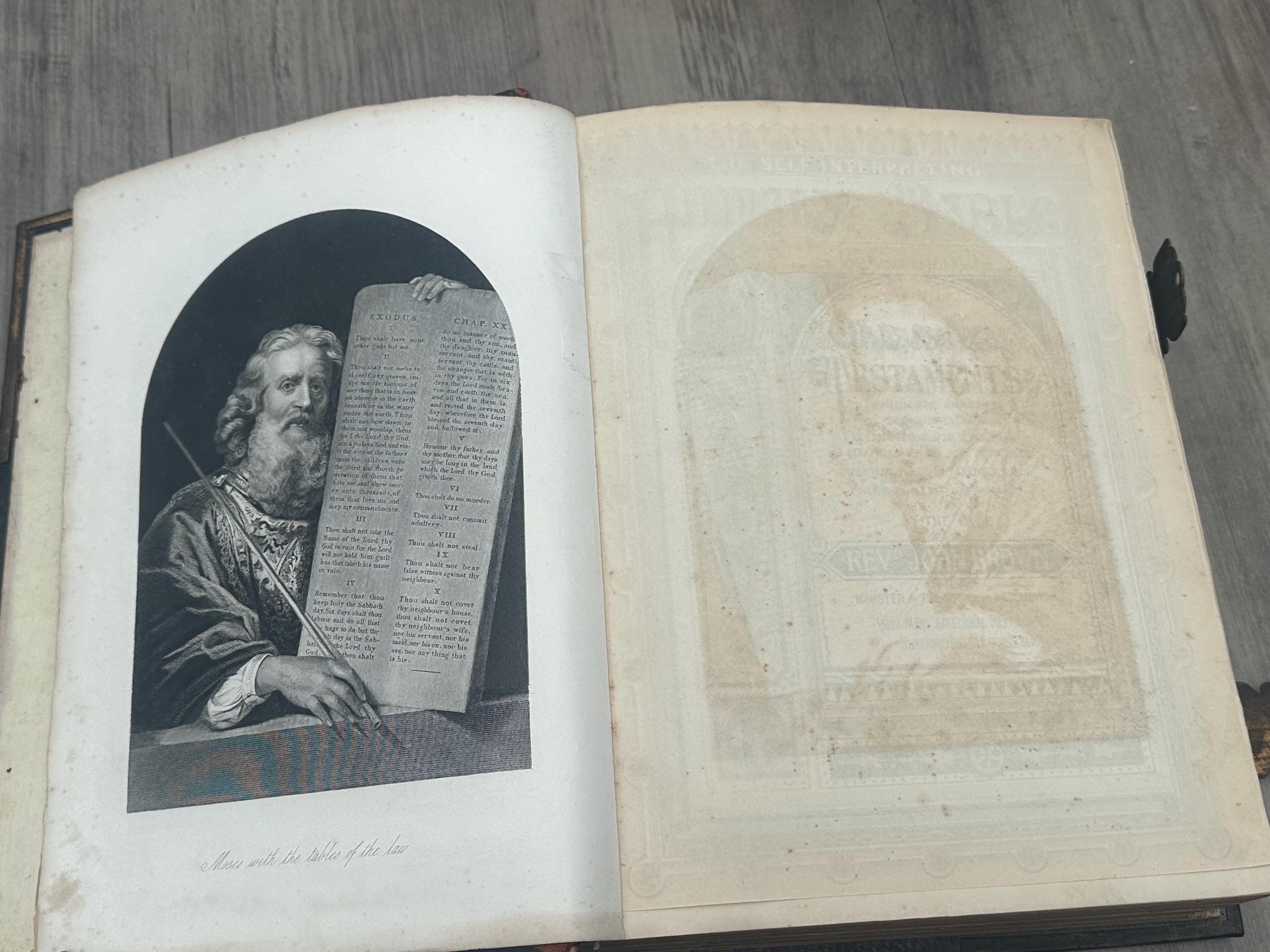 Rare Bible Leather Tooled c1850’s Browns Self Interpreting Family Bible