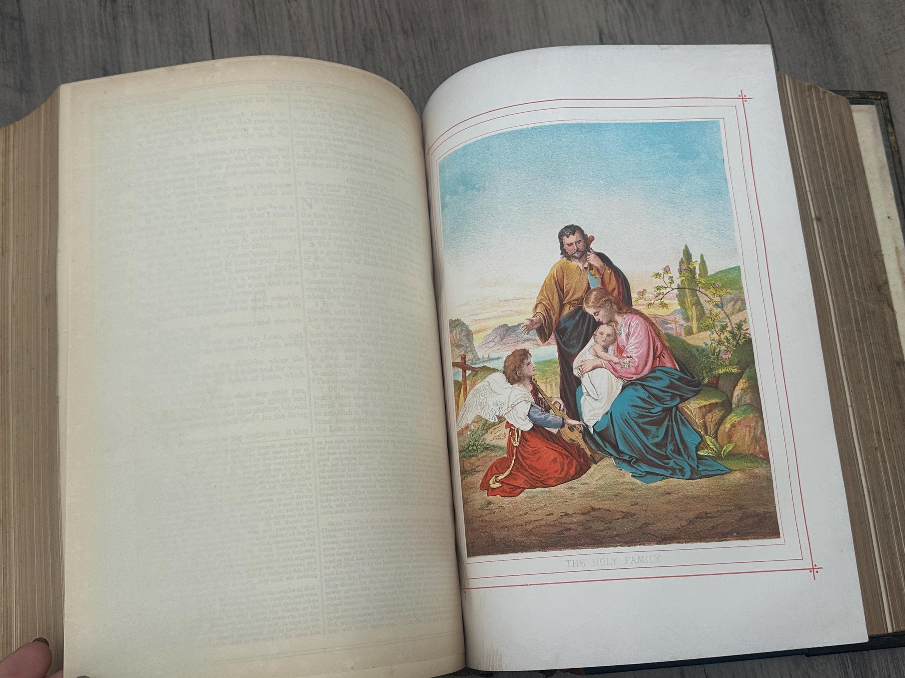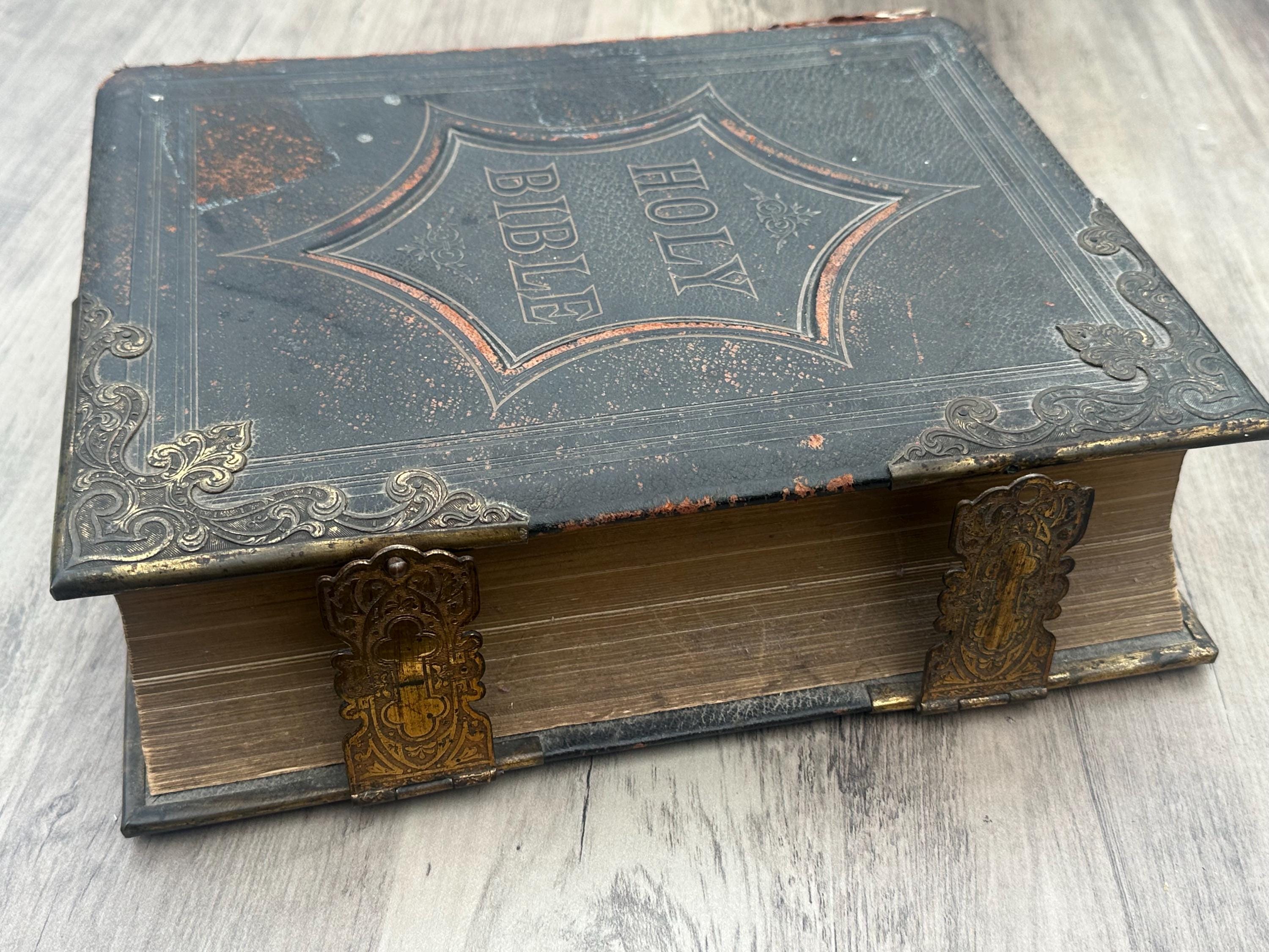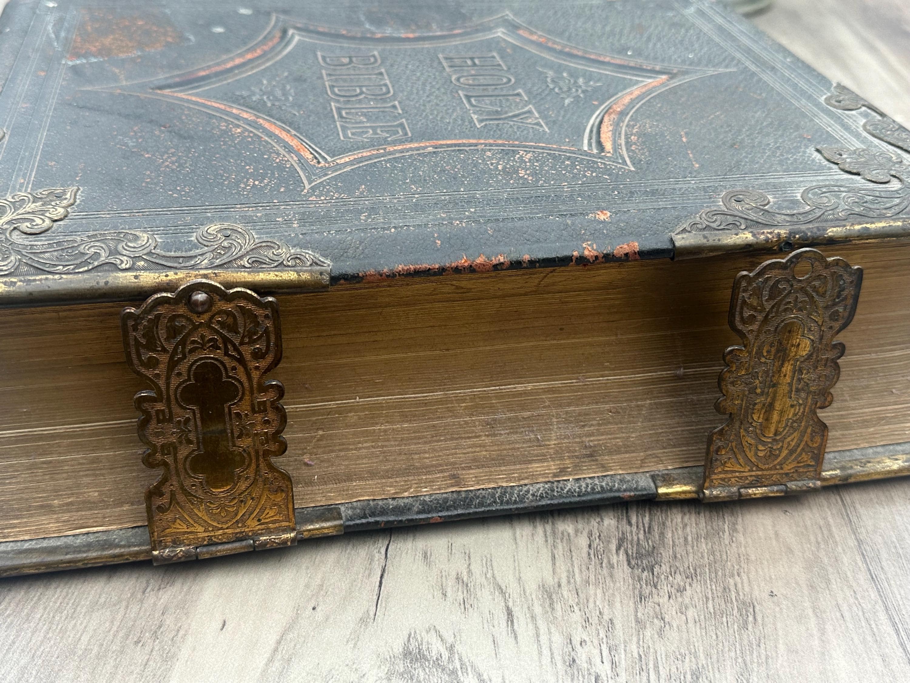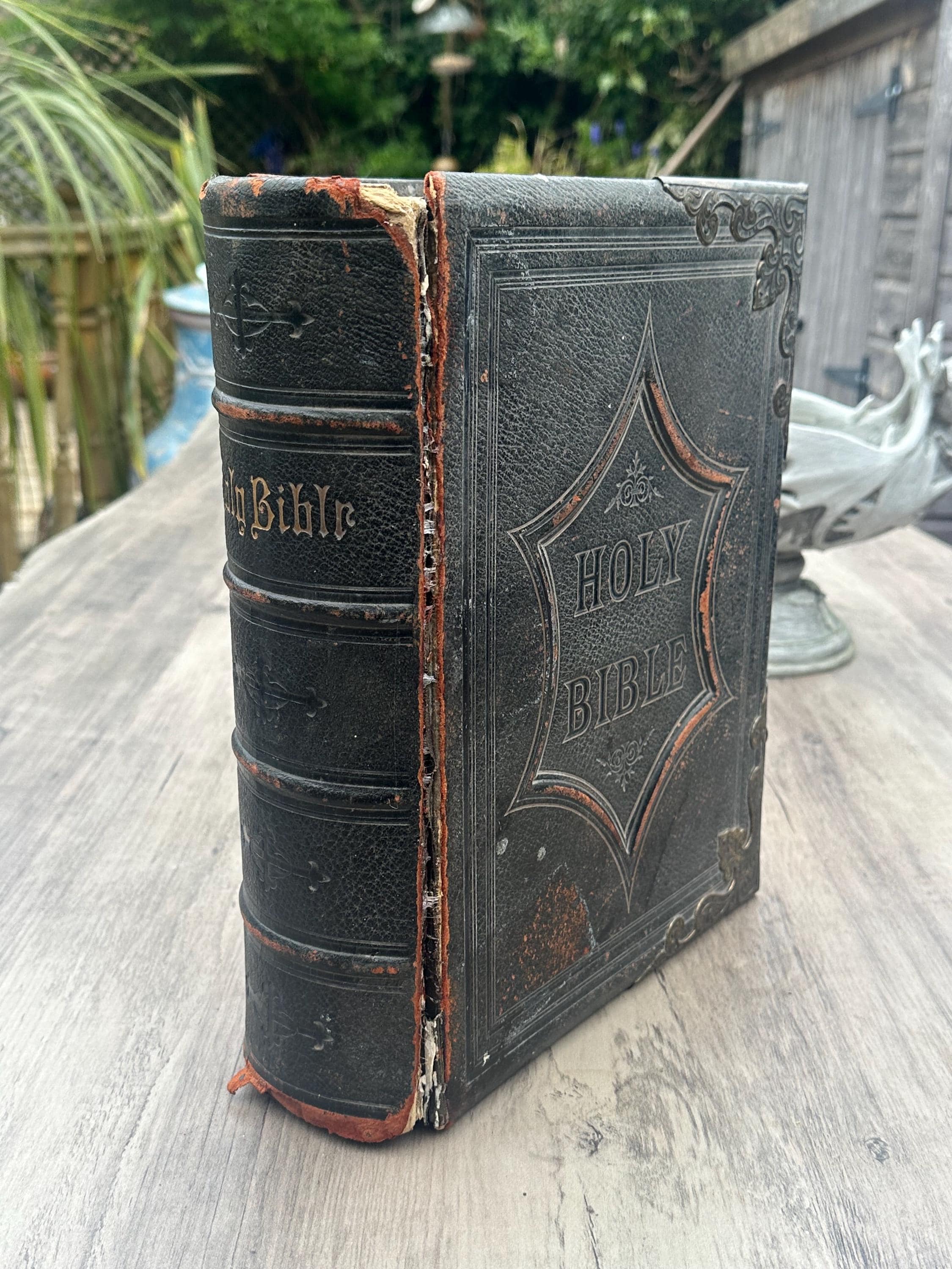 Rare Bible Leather Tooled c1850’s Browns Self Interpreting Family Bible