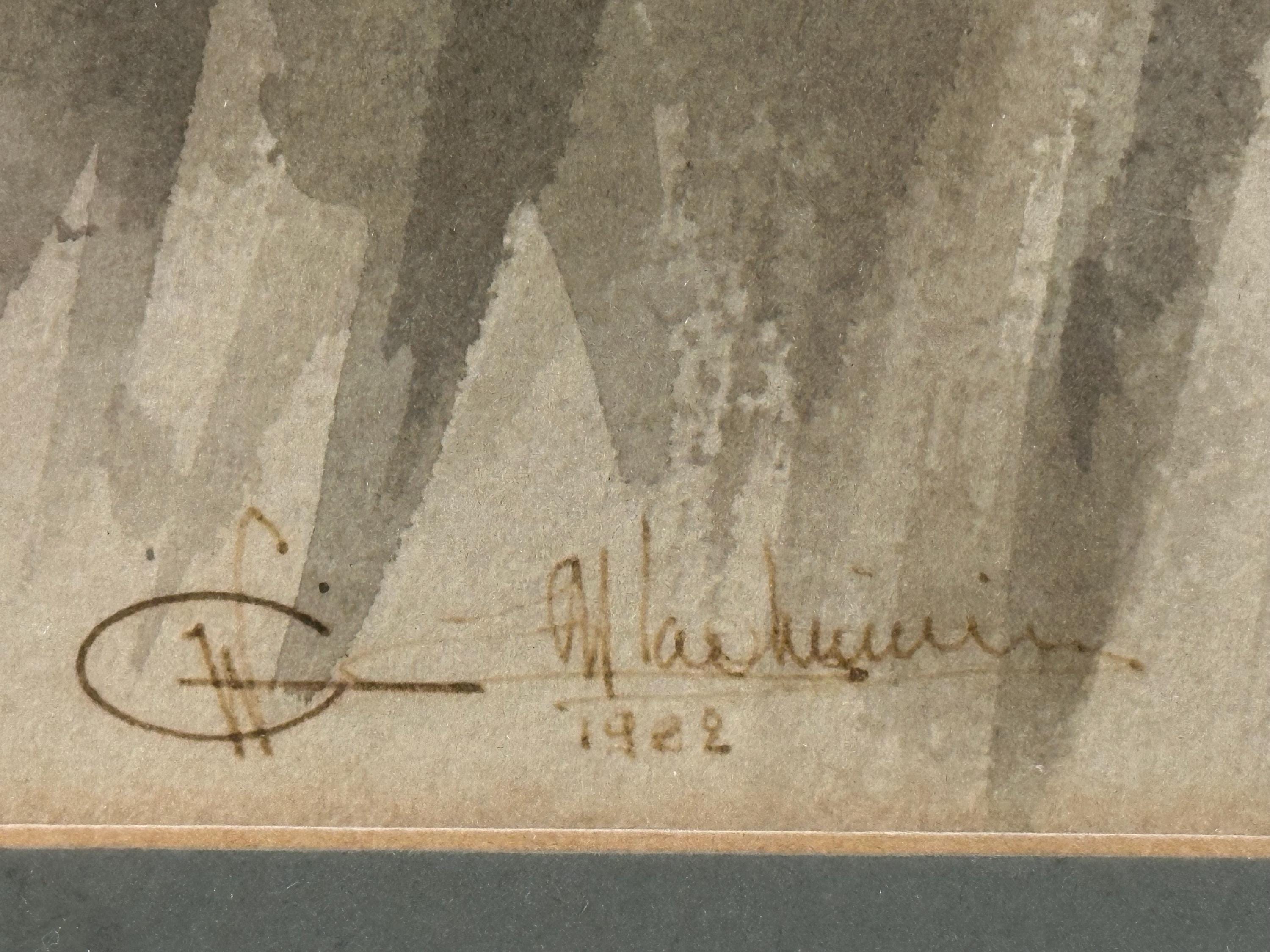 The painting is presented in a traditional gilt frame with a complementary mount, ready to display.