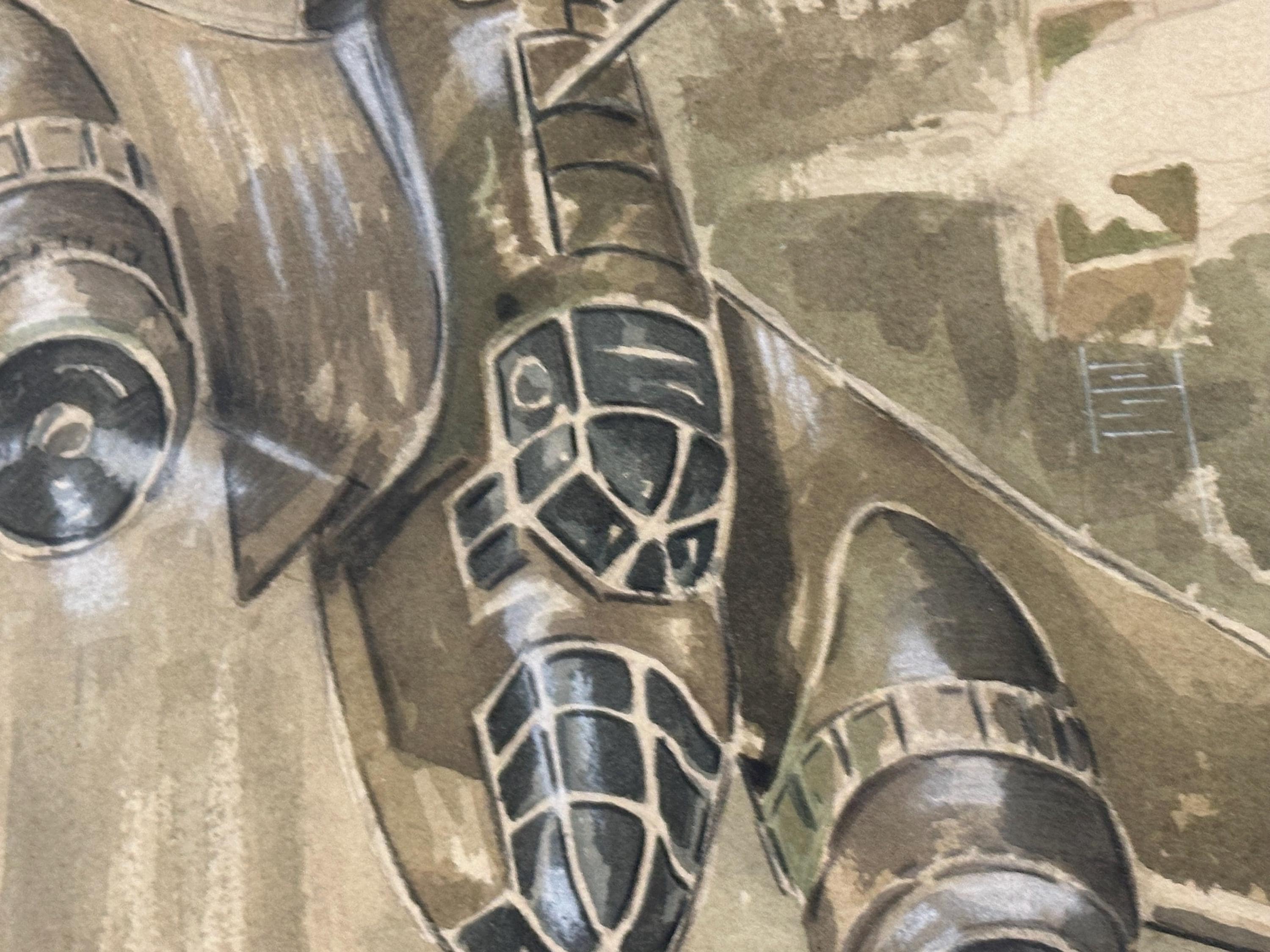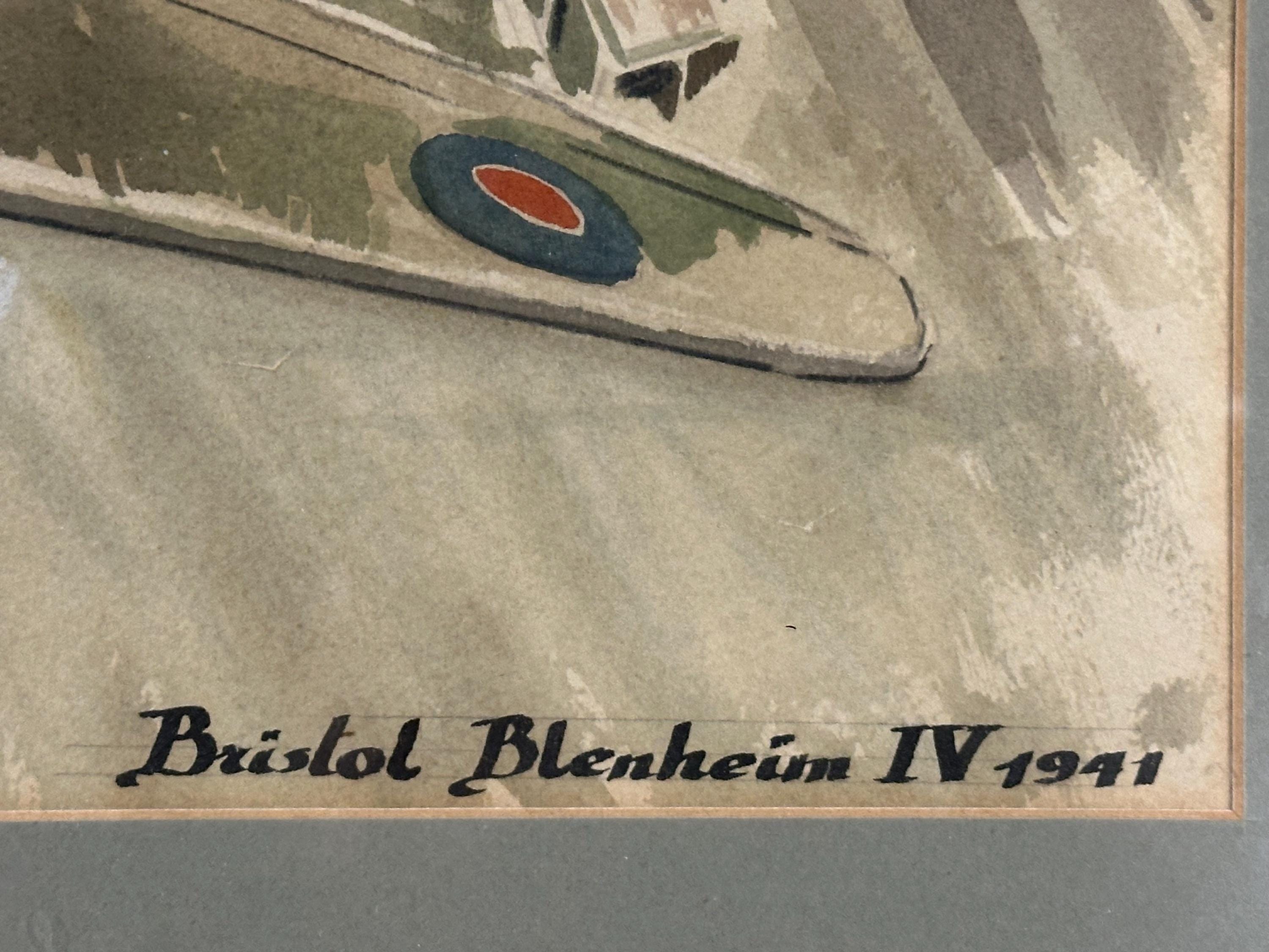 Vintage RAF Bristol Blenheim IV Watercolour Painting, indistinctly signed and dated 1982