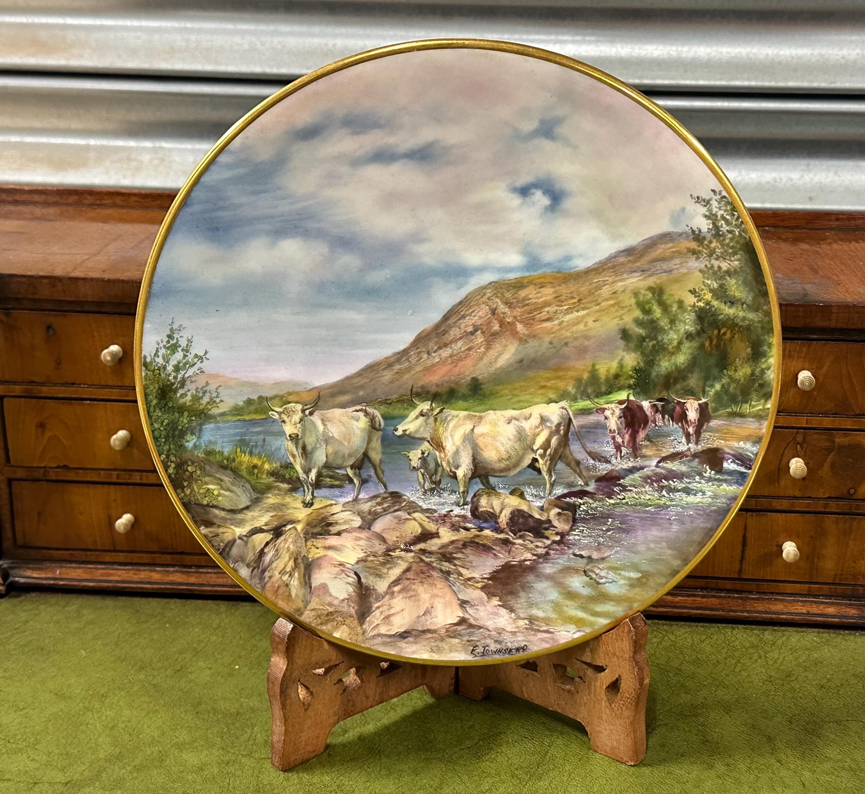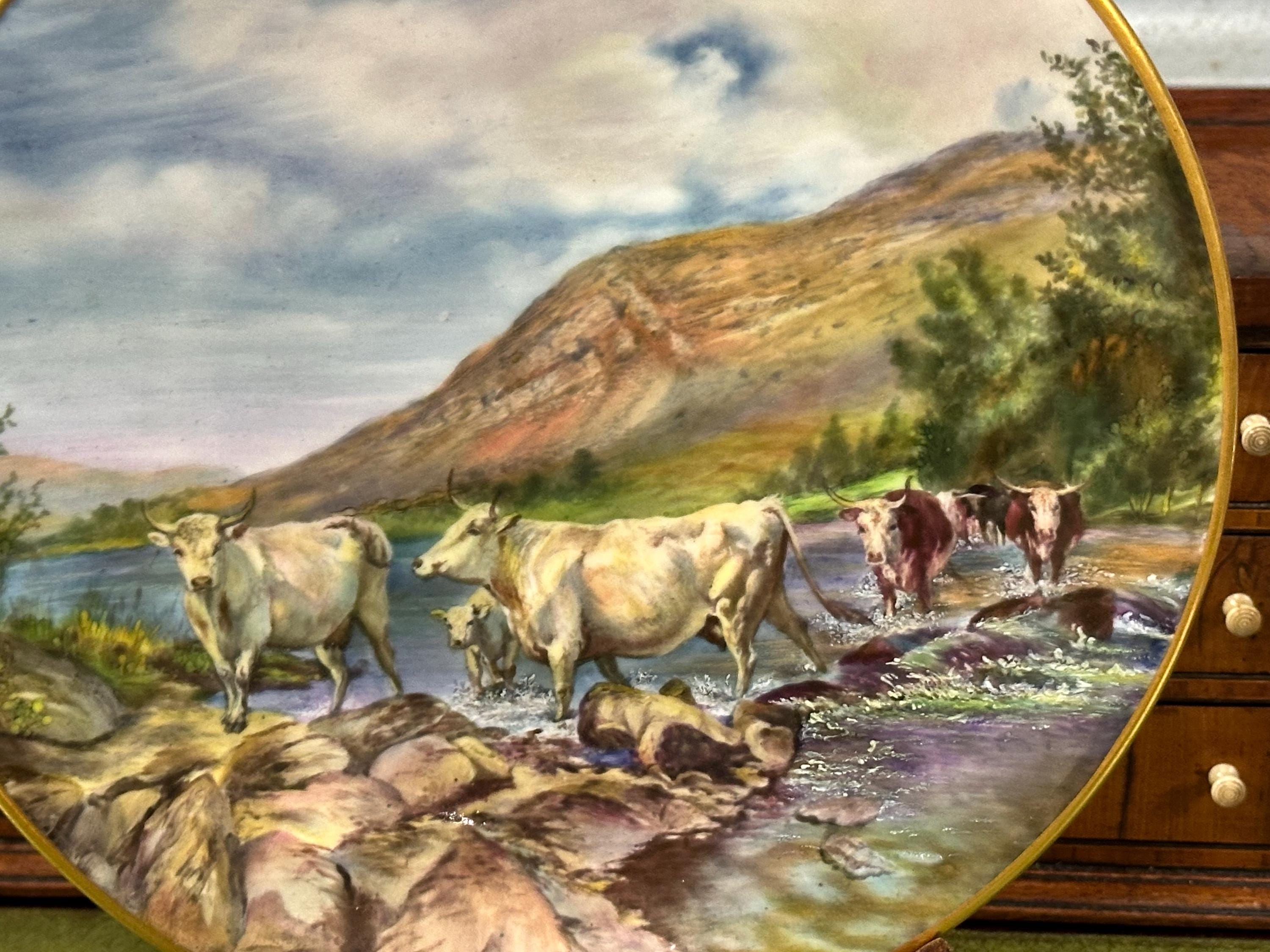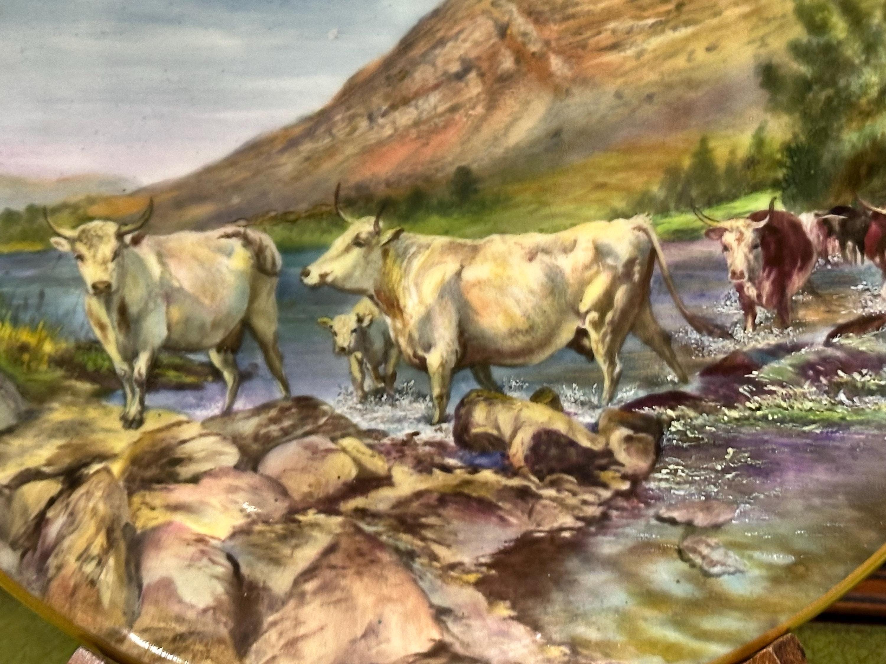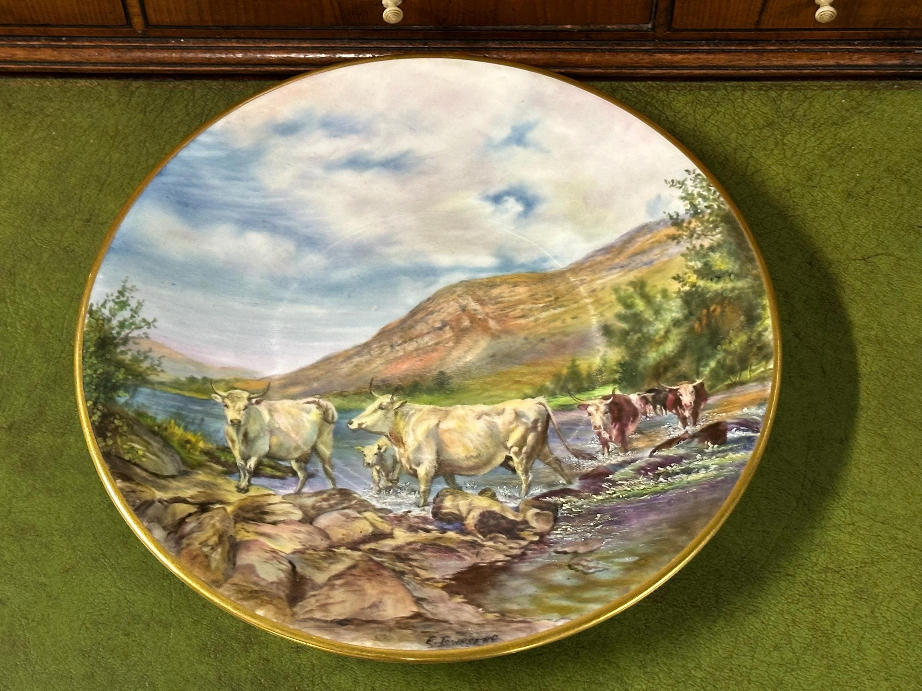 Stunning Royal Worcester Cabinet Plate – Signed Edward Townsend – Highland Cattle River Landscape c.1930s - Perfect Gift