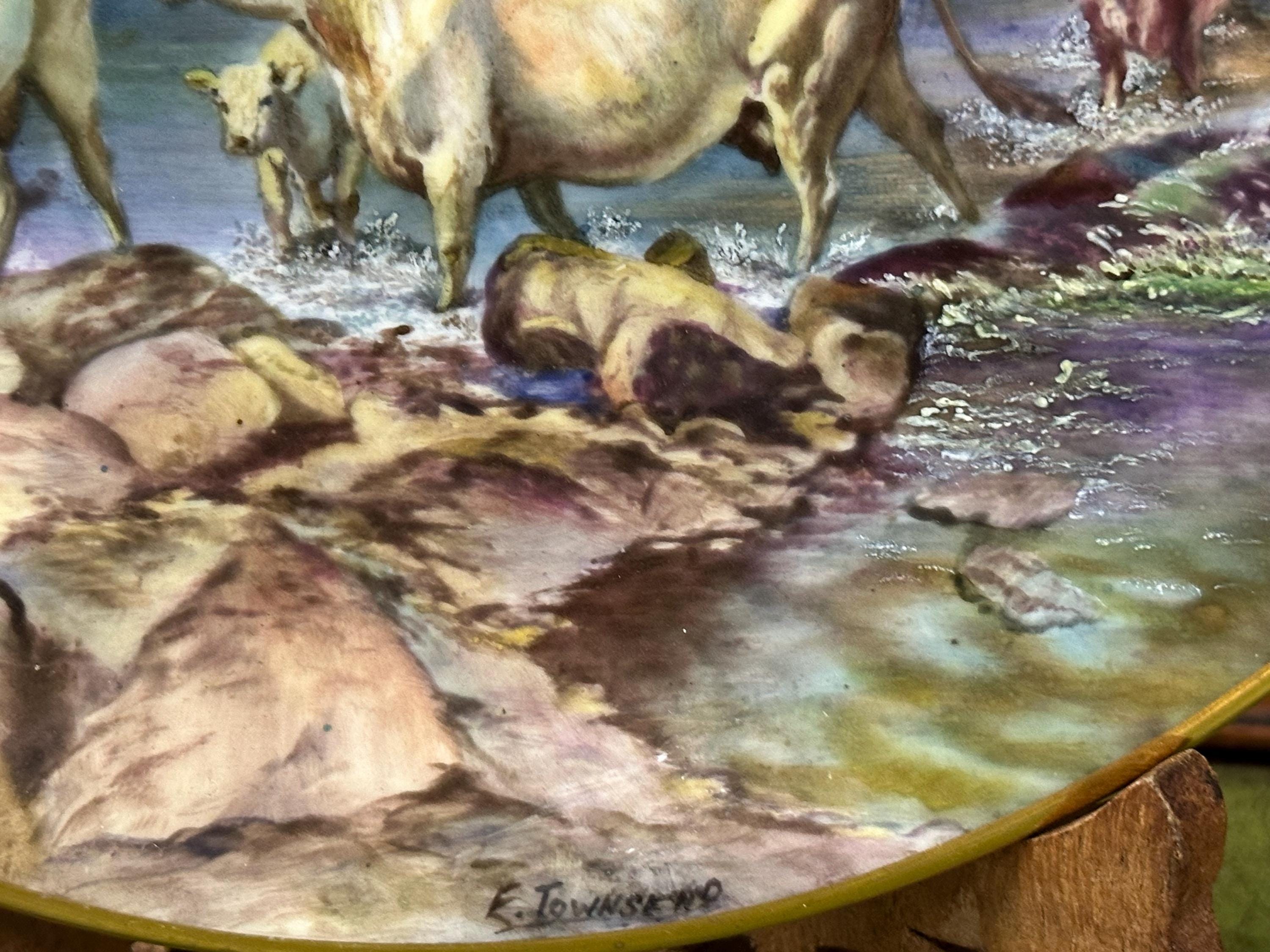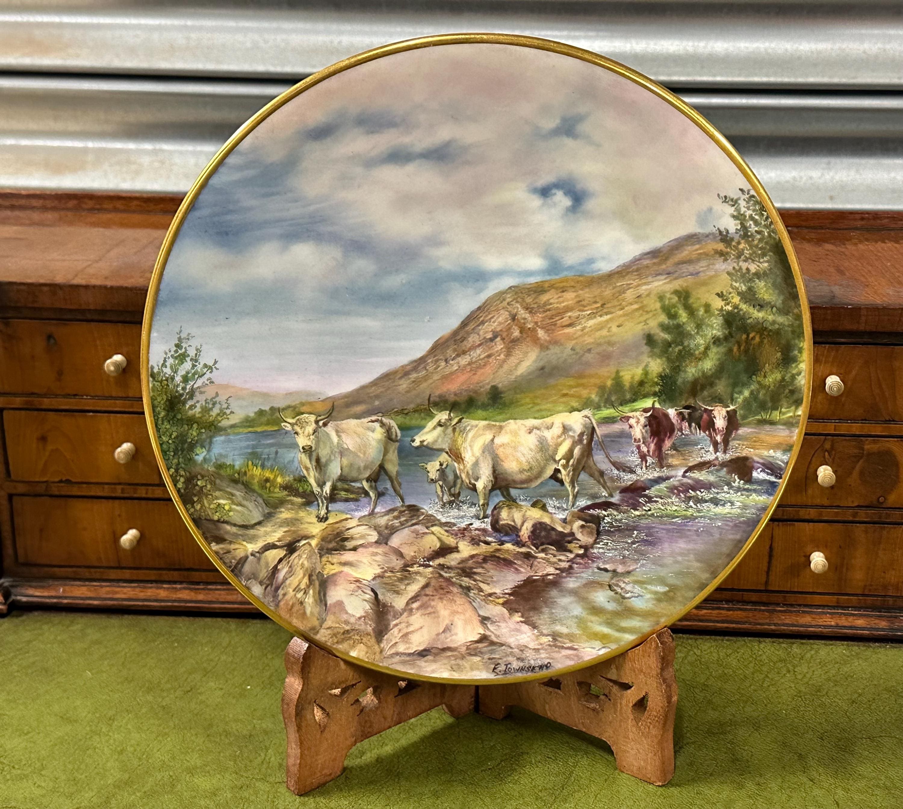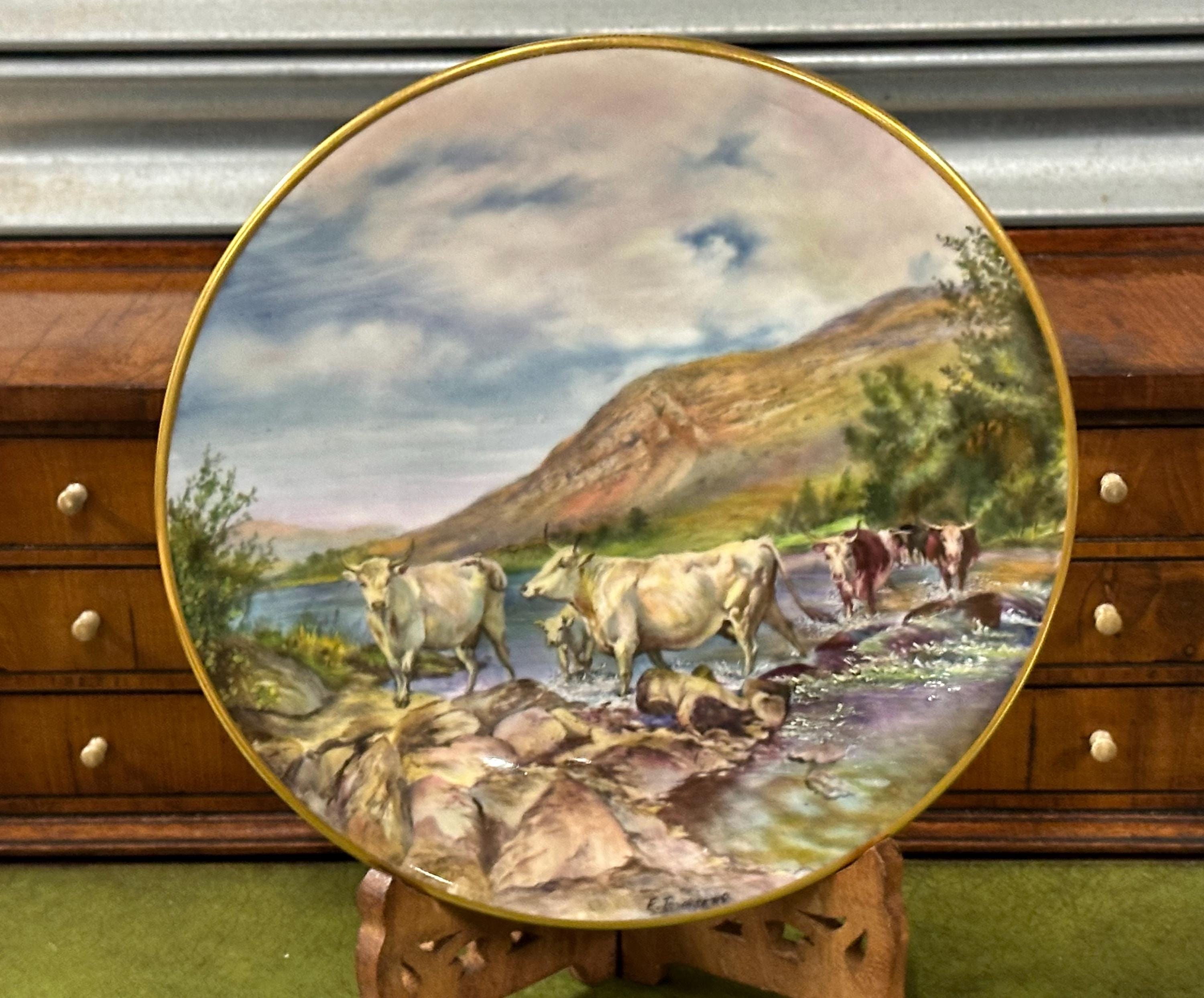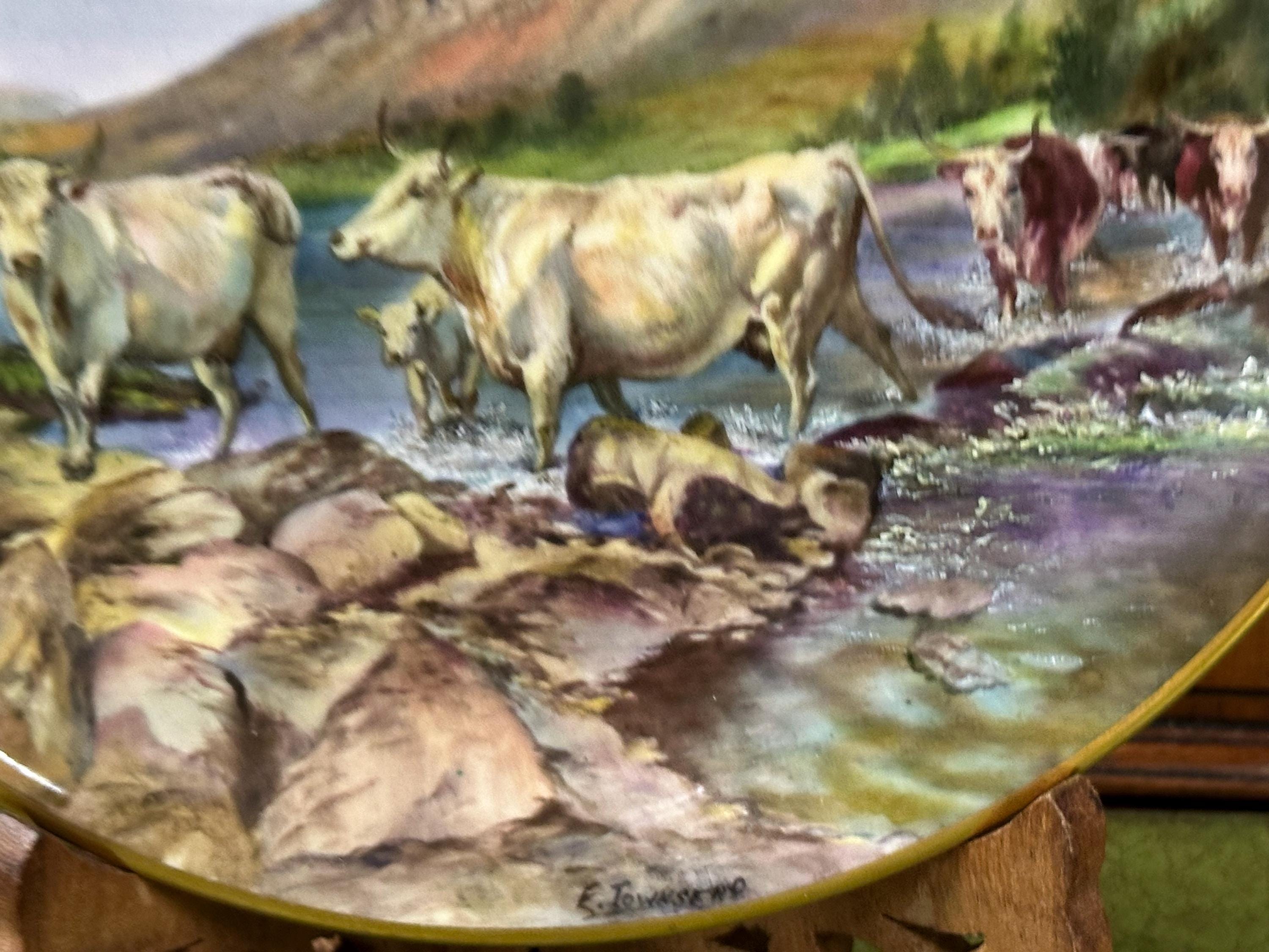 Stunning Royal Worcester Cabinet Plate – Signed Edward Townsend – Highland Cattle River Landscape c.1930s - Perfect Gift