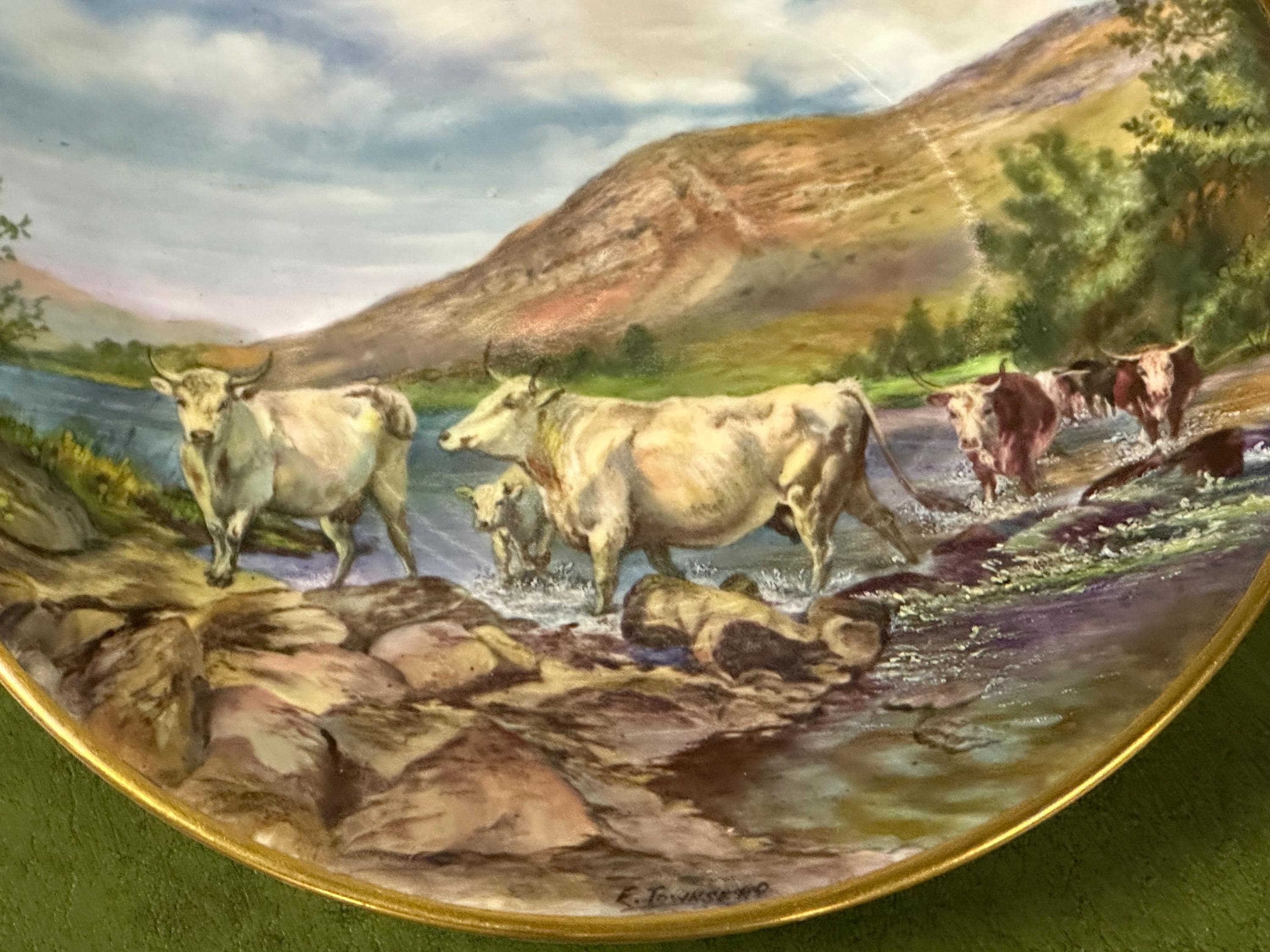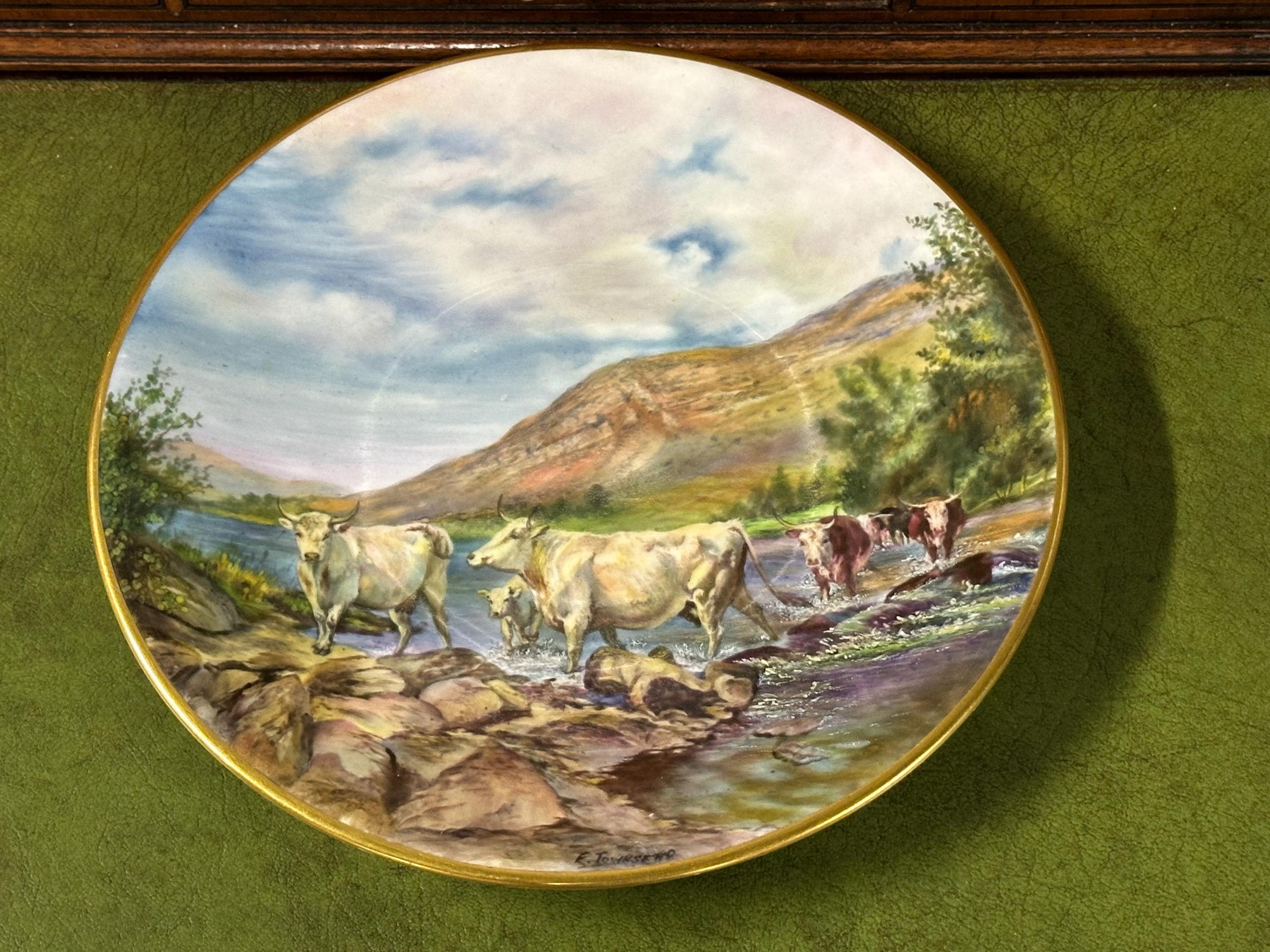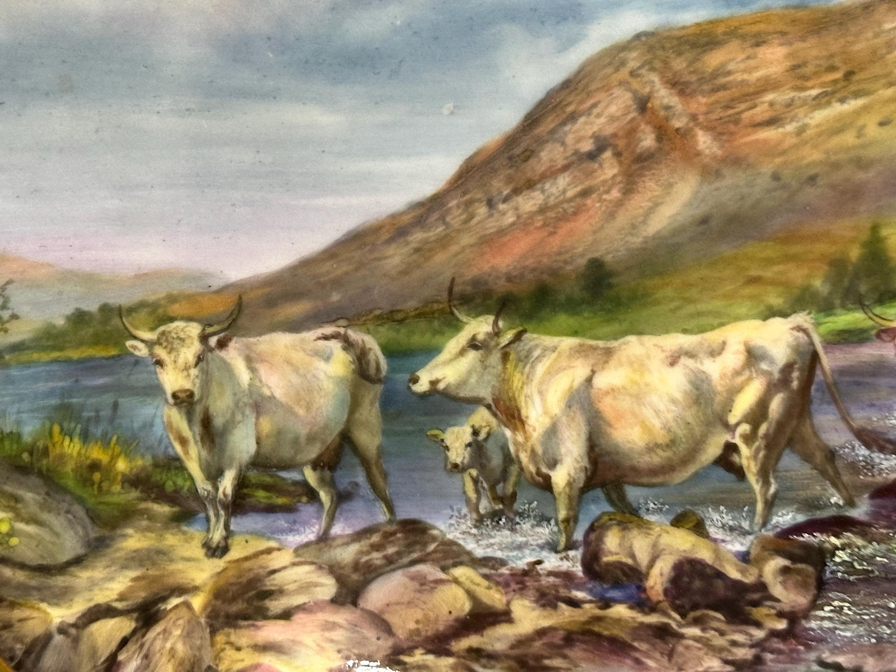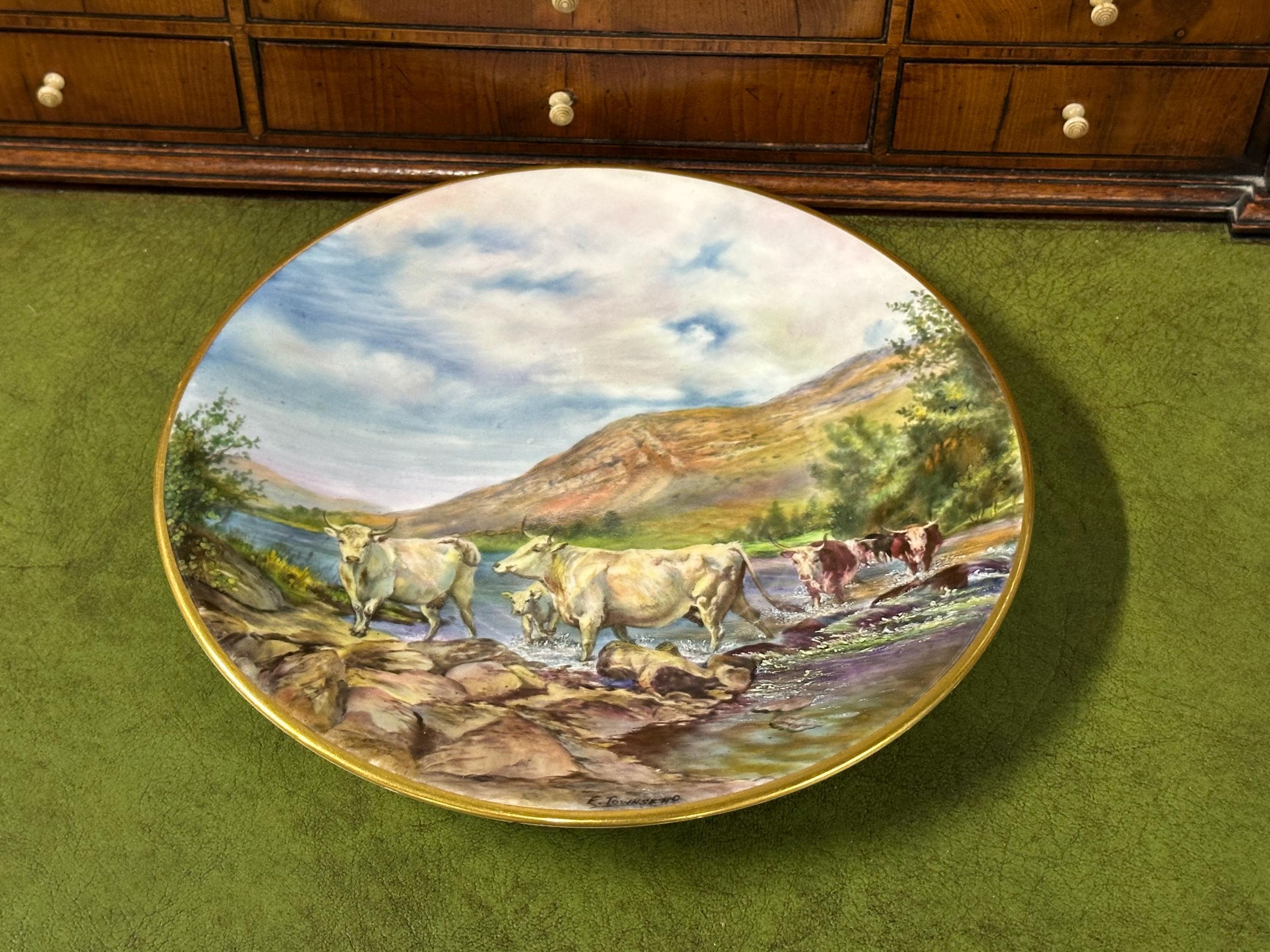 Stunning Royal Worcester Cabinet Plate – Signed Edward Townsend – Highland Cattle River Landscape c.1930s - Perfect Gift