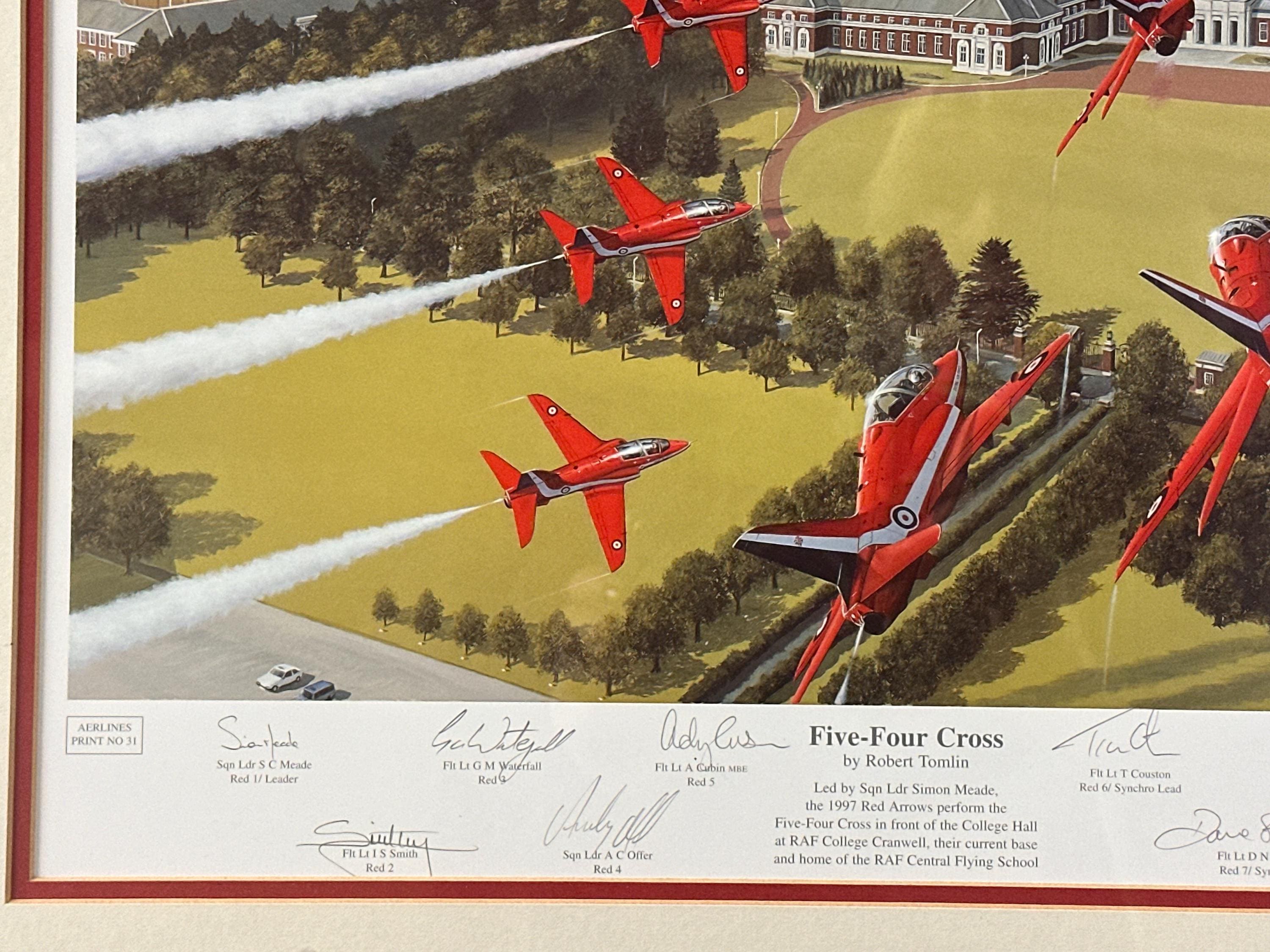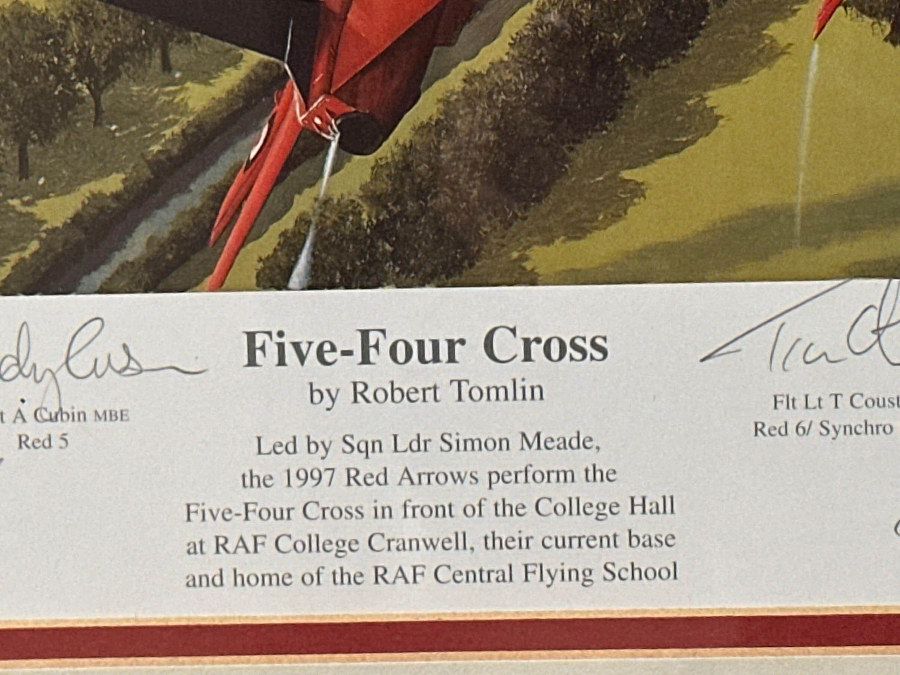 A highly collectible and visually striking aviation print titled “Five-Four Cross” by renowned aviation artist Robert Tomlin, published in 1997.