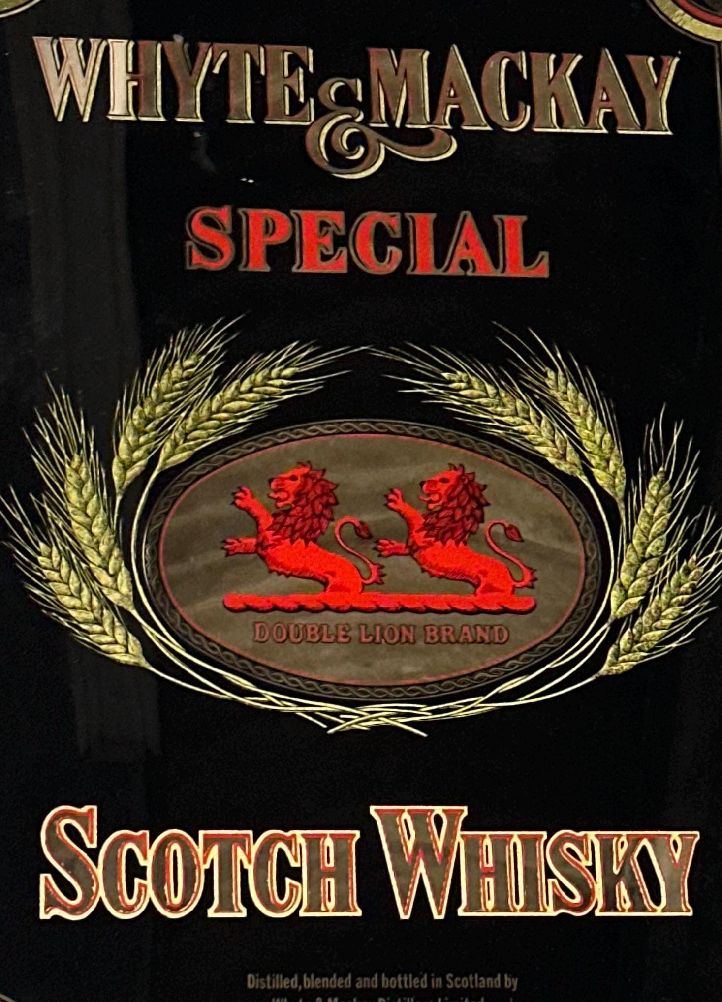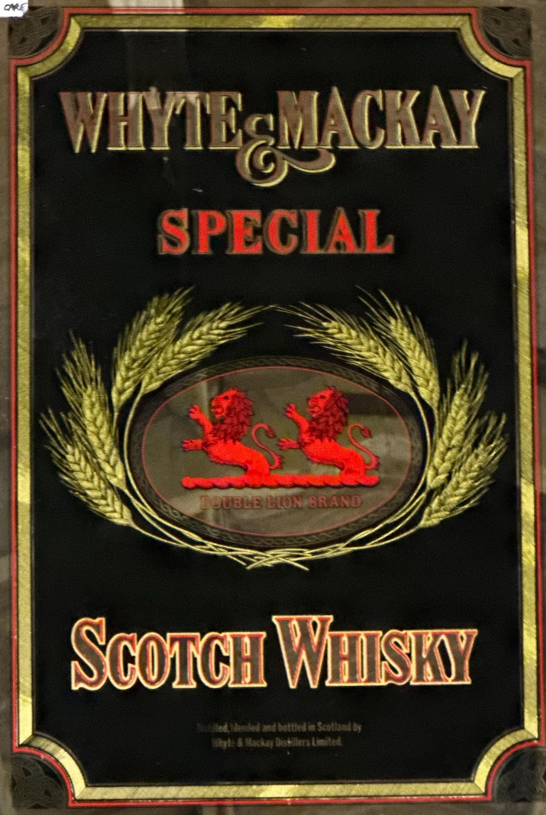 Vintage Whyte & Mackay “Special” Scotch Whisky Mirror Advertising Sign – Double Lion Brand