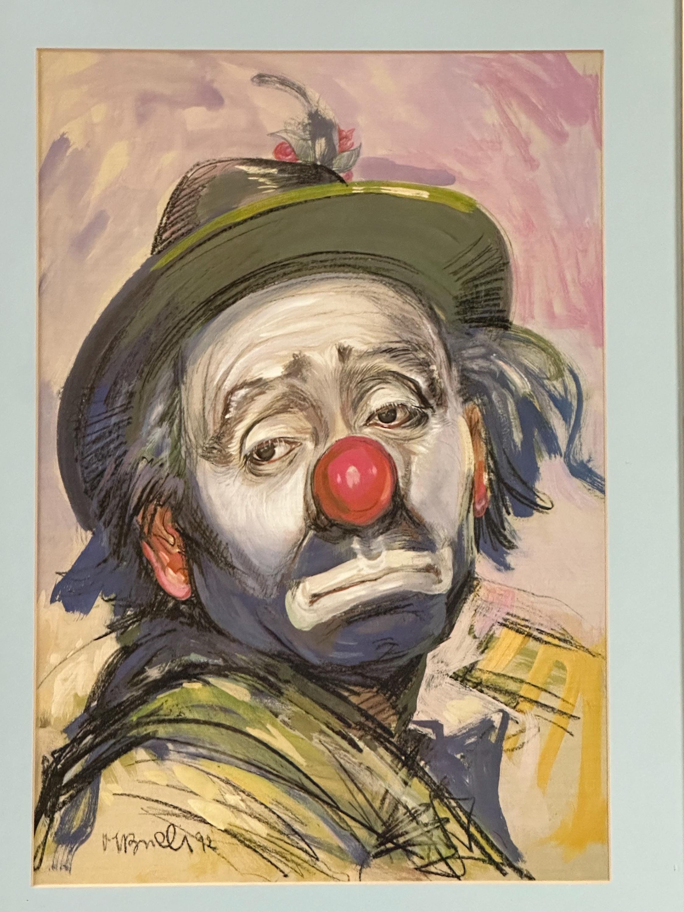 Maria Brilli ‘Clown’ Portrait – Expressive Modern Figurative Print – Signed – Framed