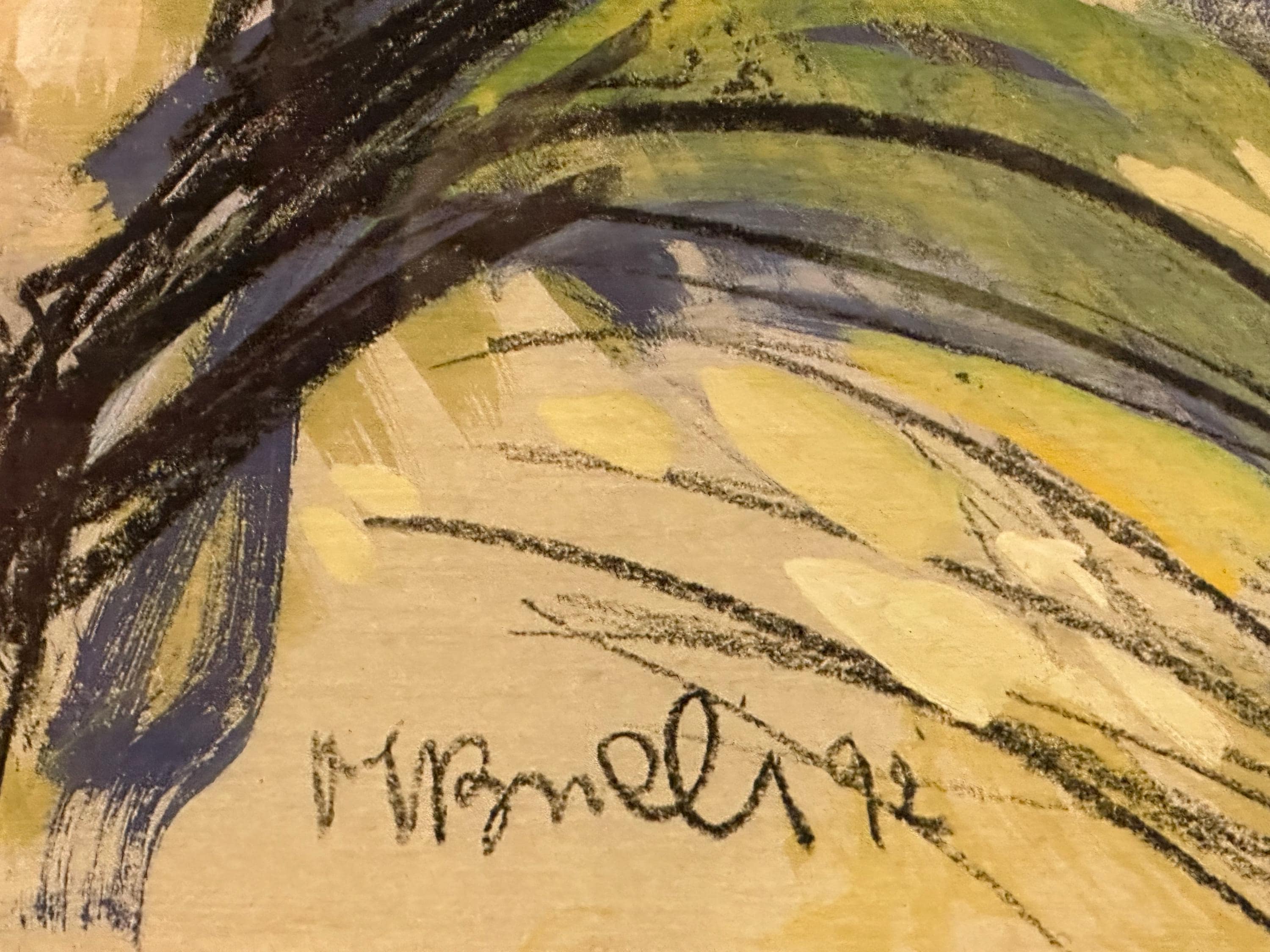 The artist skillfully conveys mood and personality, blending humour with a subtle sense of sadness—very much in the tradition of modern figurative and theatrical portraiture. The energetic line work and painterly style suggest mid-to-late 20th century influences, with a nod to expressionist techniques.