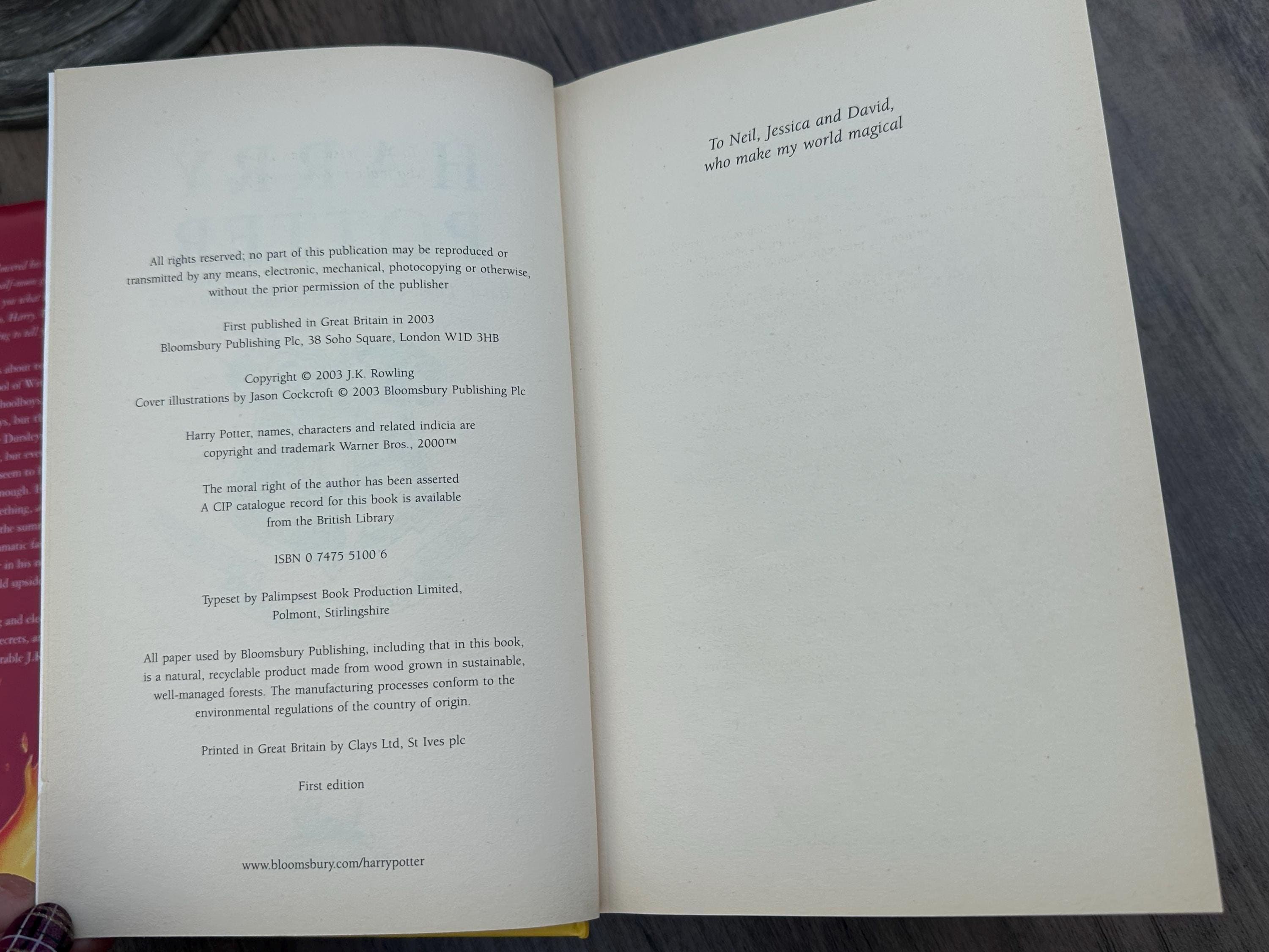 Harry Potter and The Order Of The Phoenix by J.K. Rowling. First Edition with rare Ink Error.