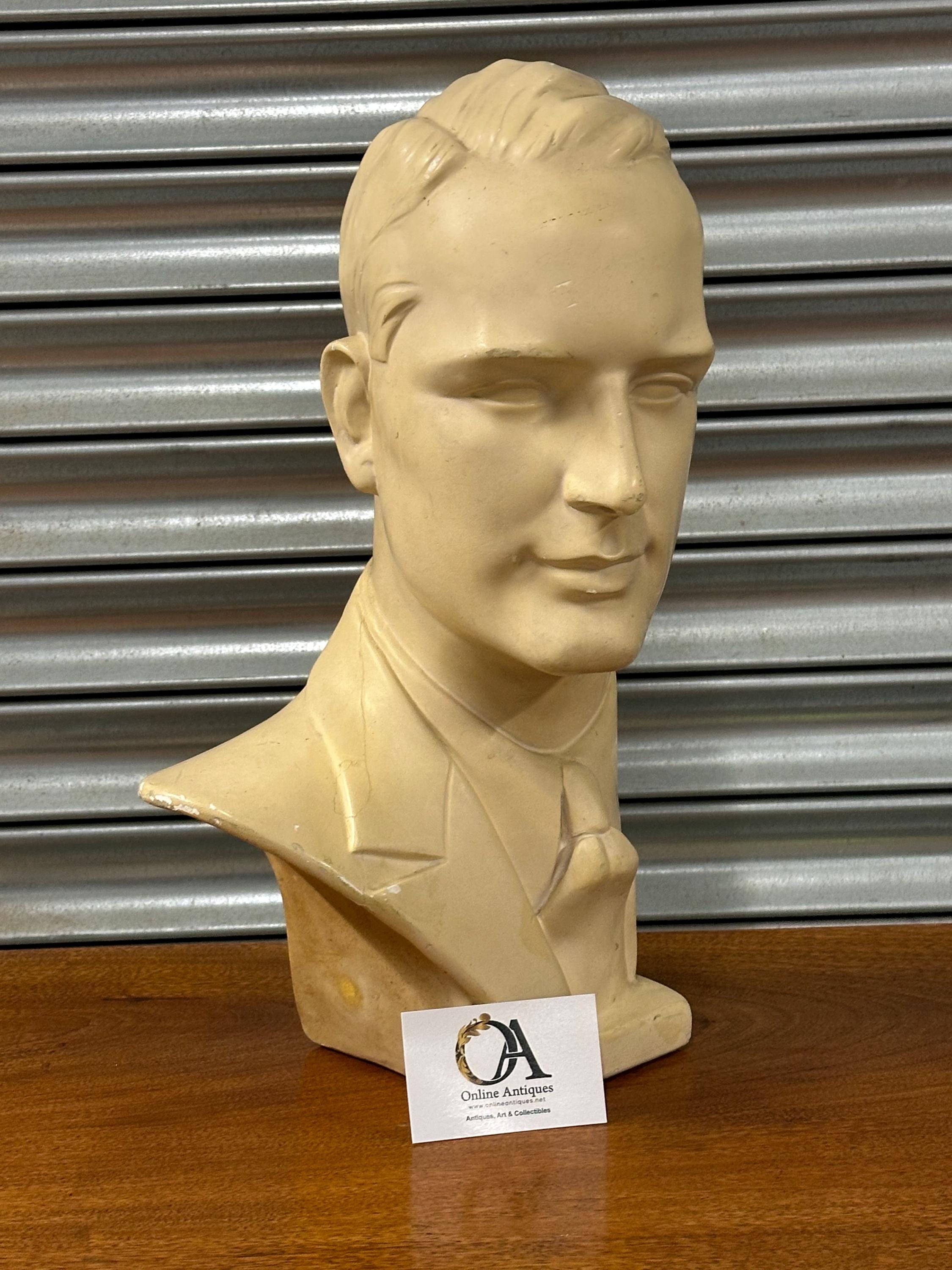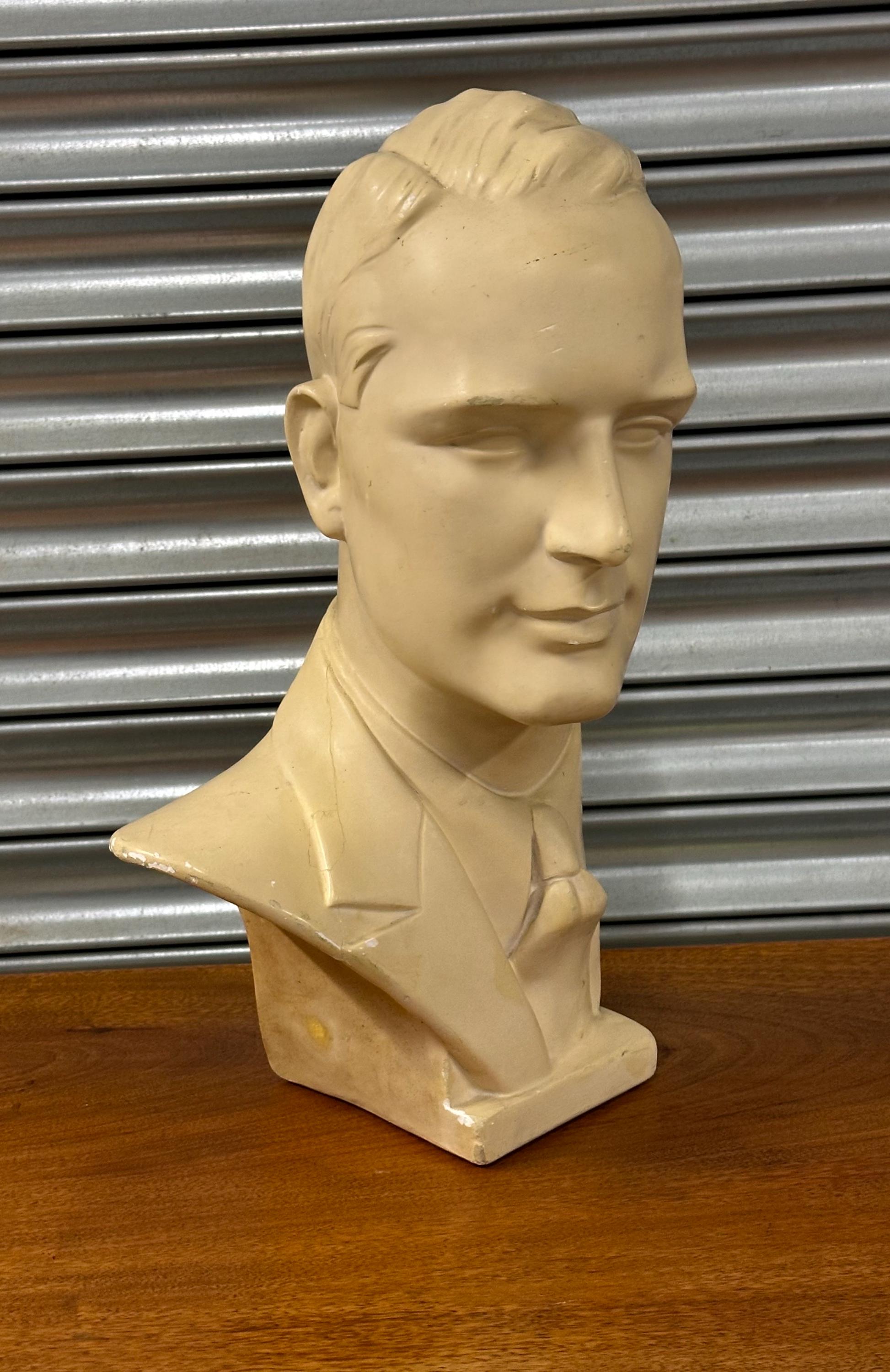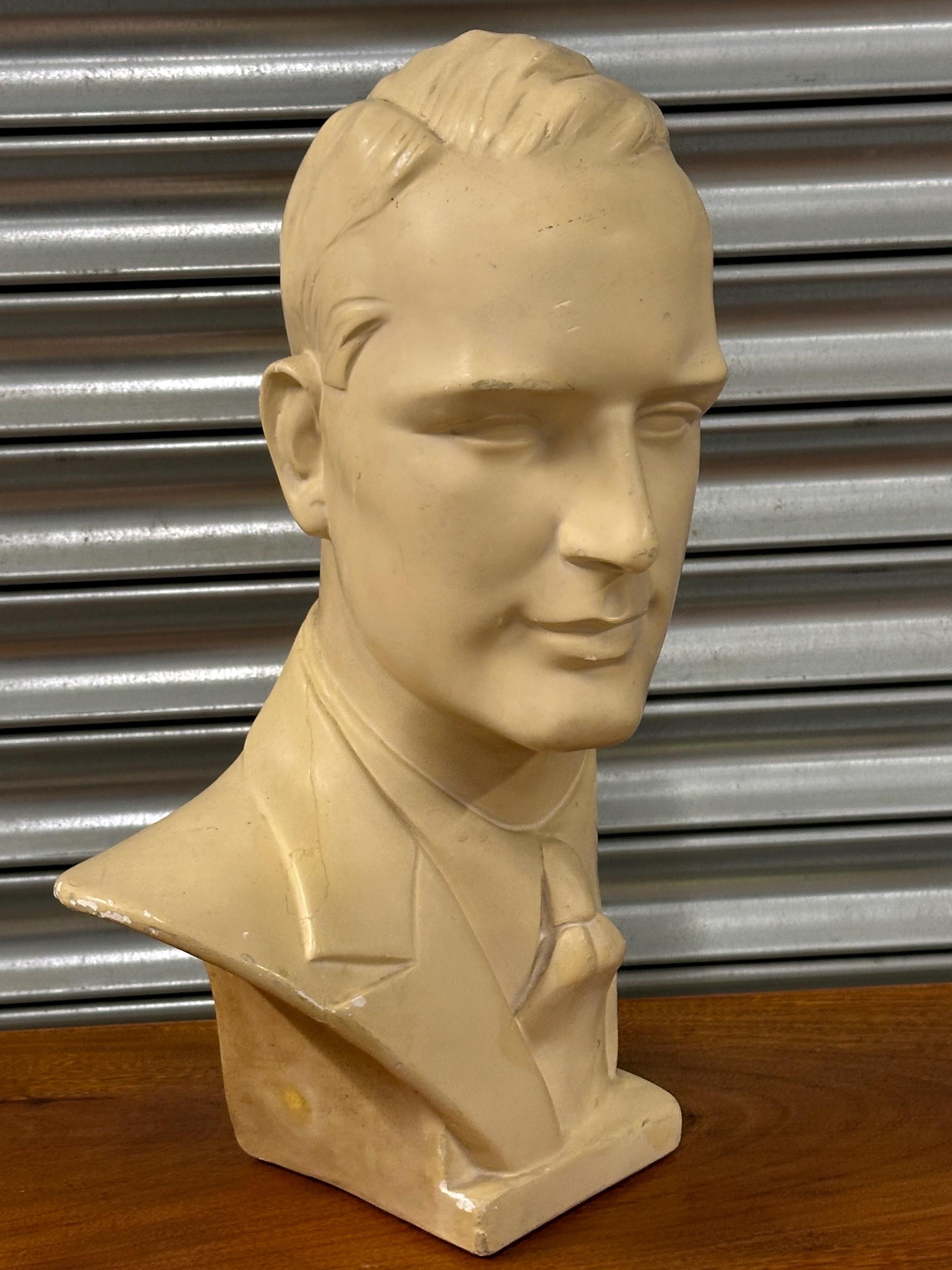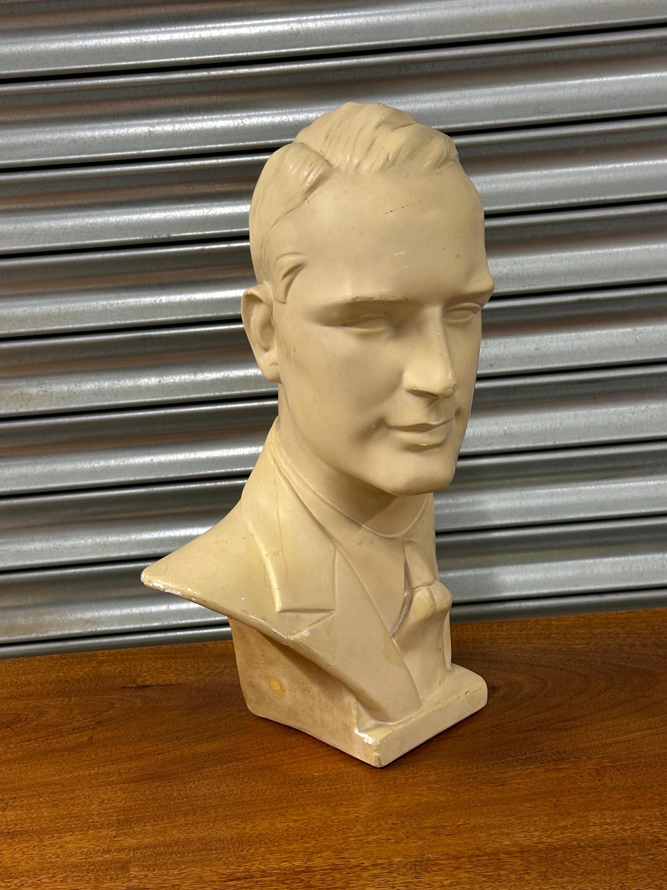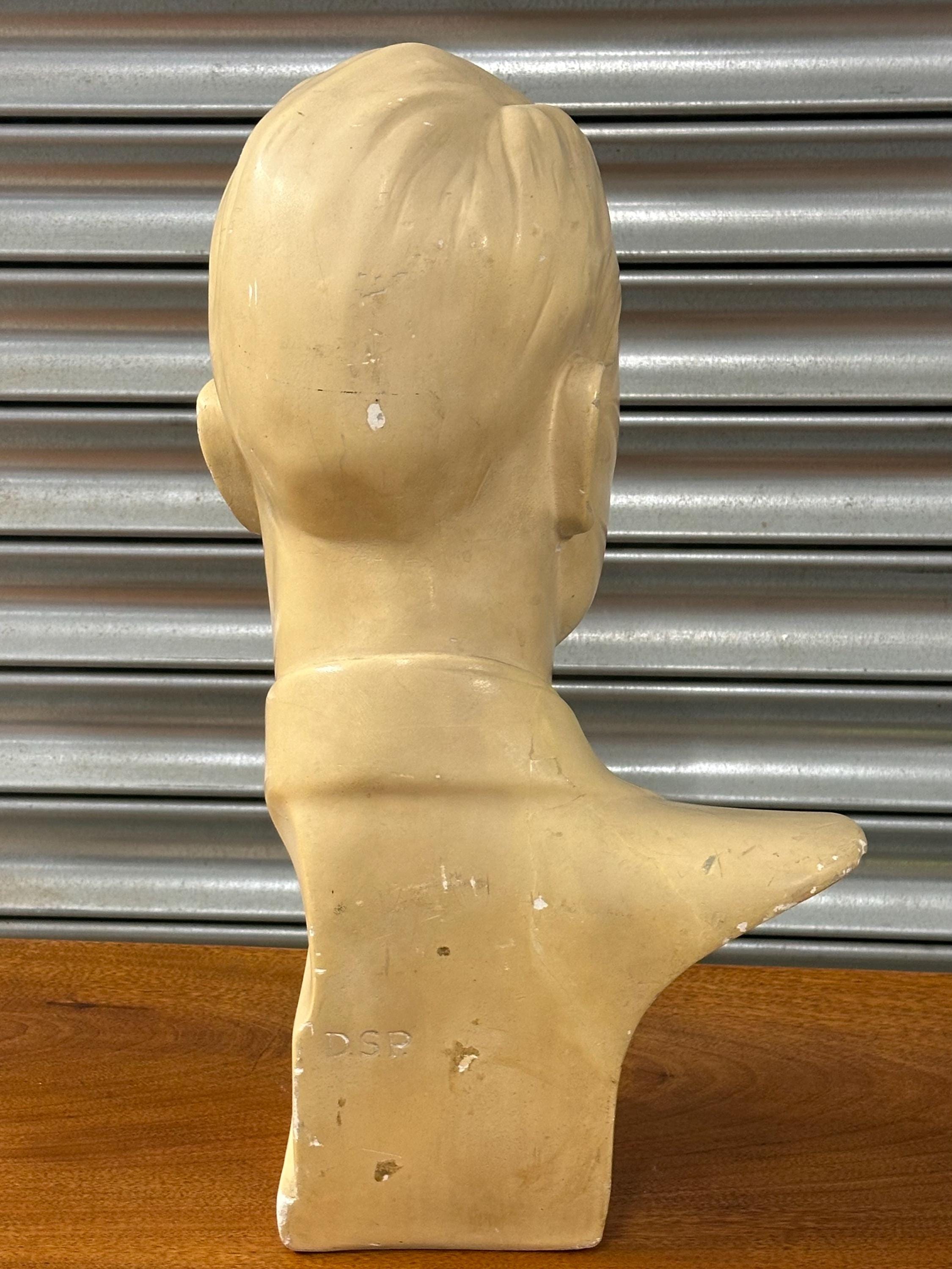 Vintage 1960s Male Mannequin Head Bust Plaster Display Retro Shop Prop
