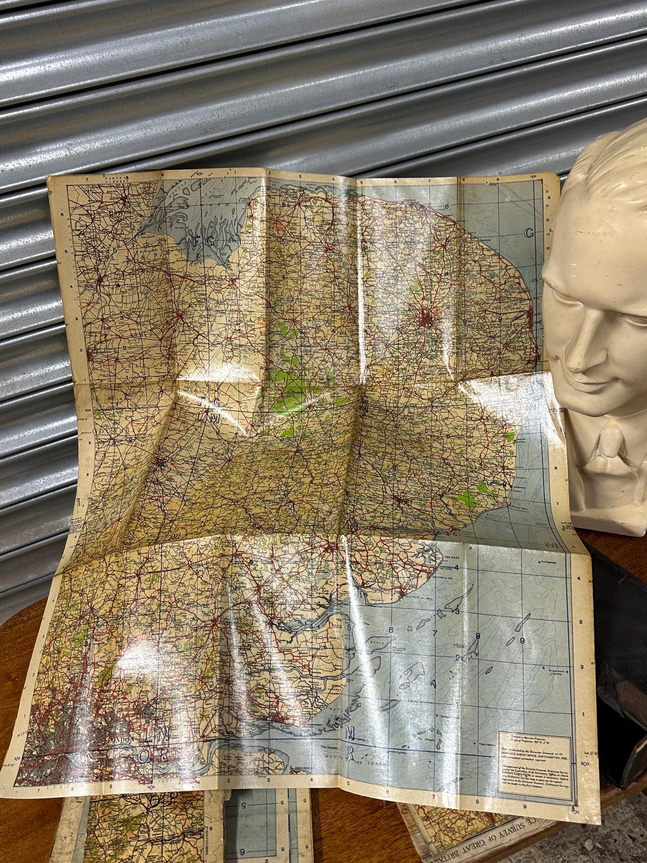 Vintage Ordnance Survey Linen-Backed Folding Maps
