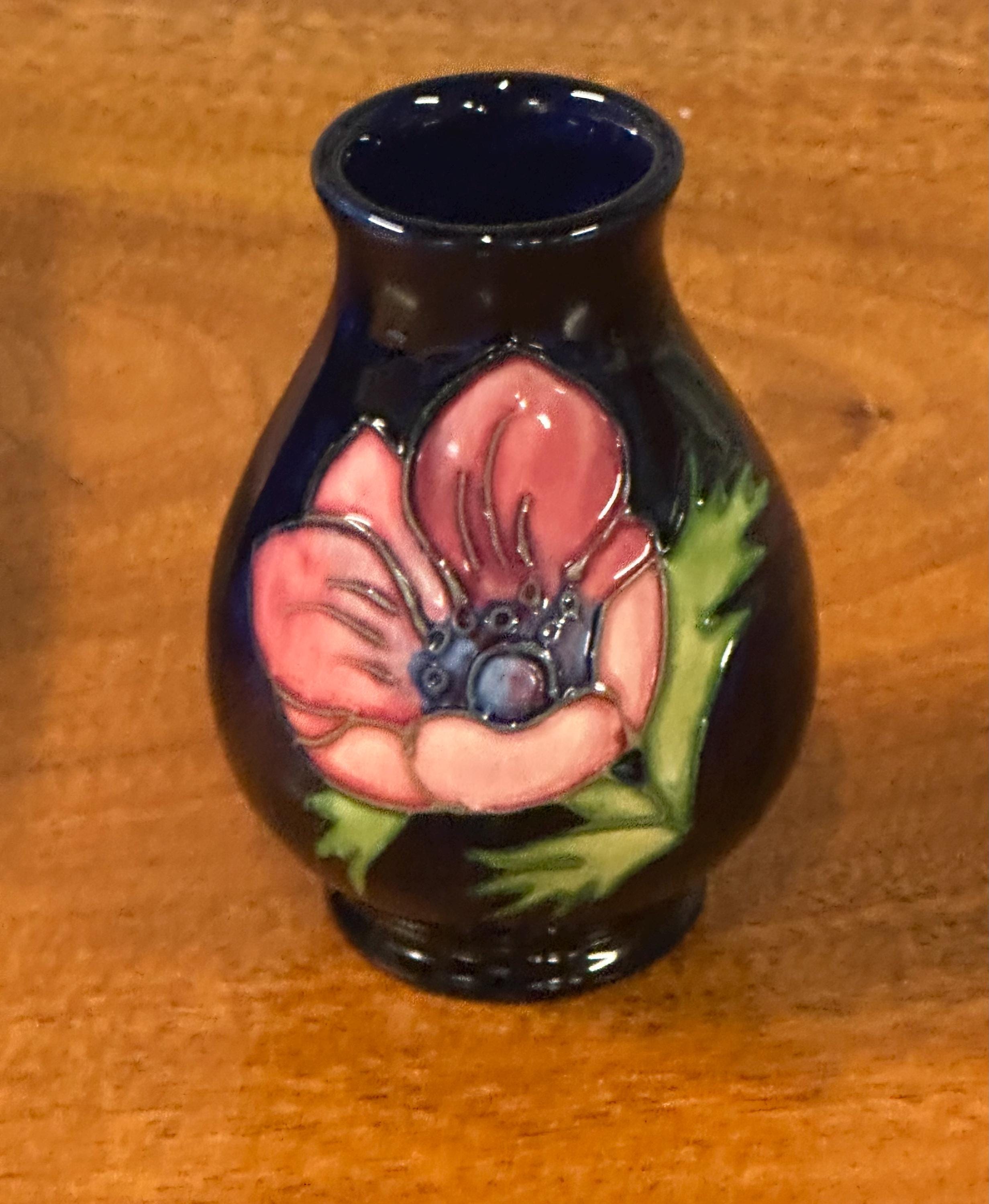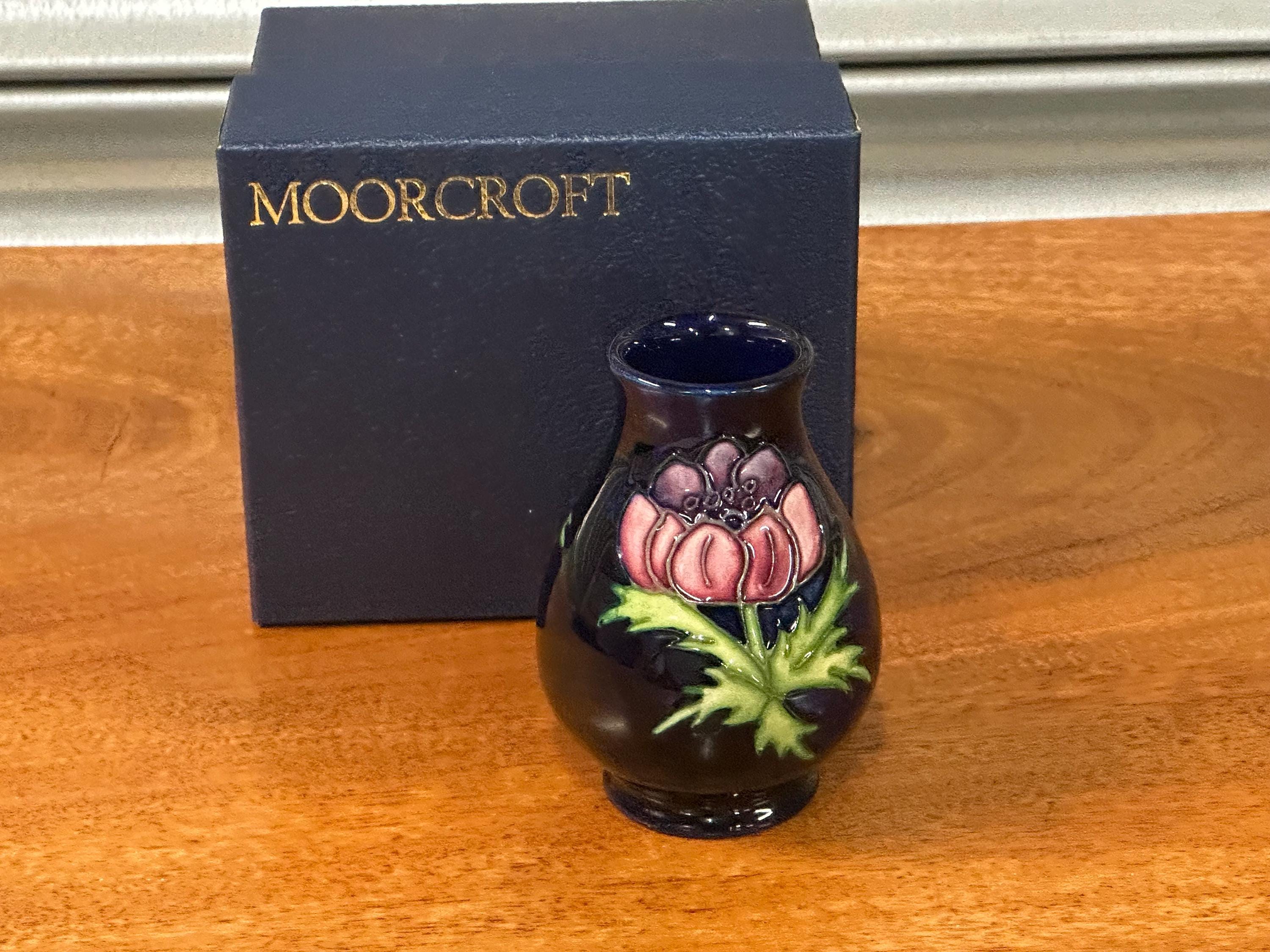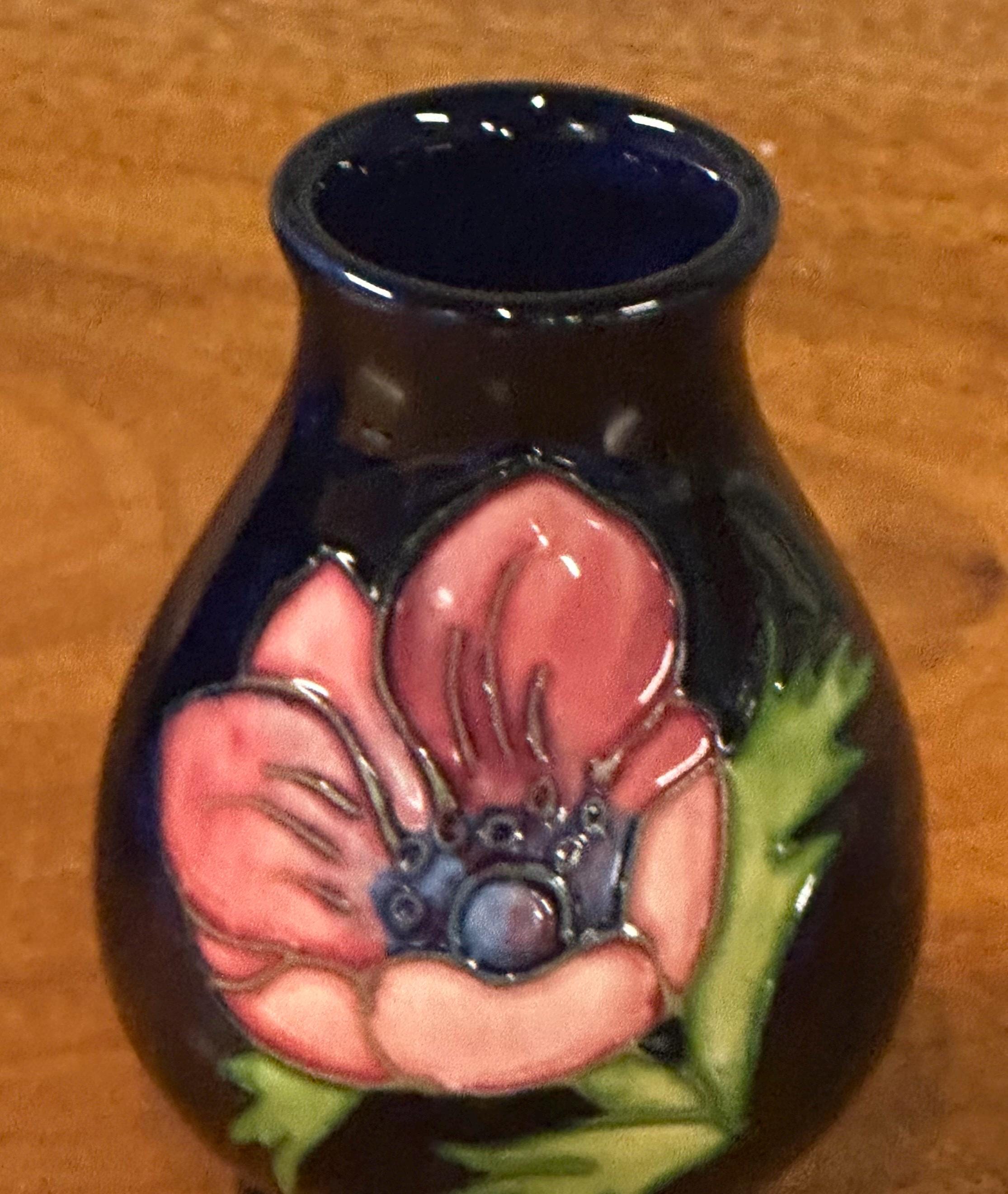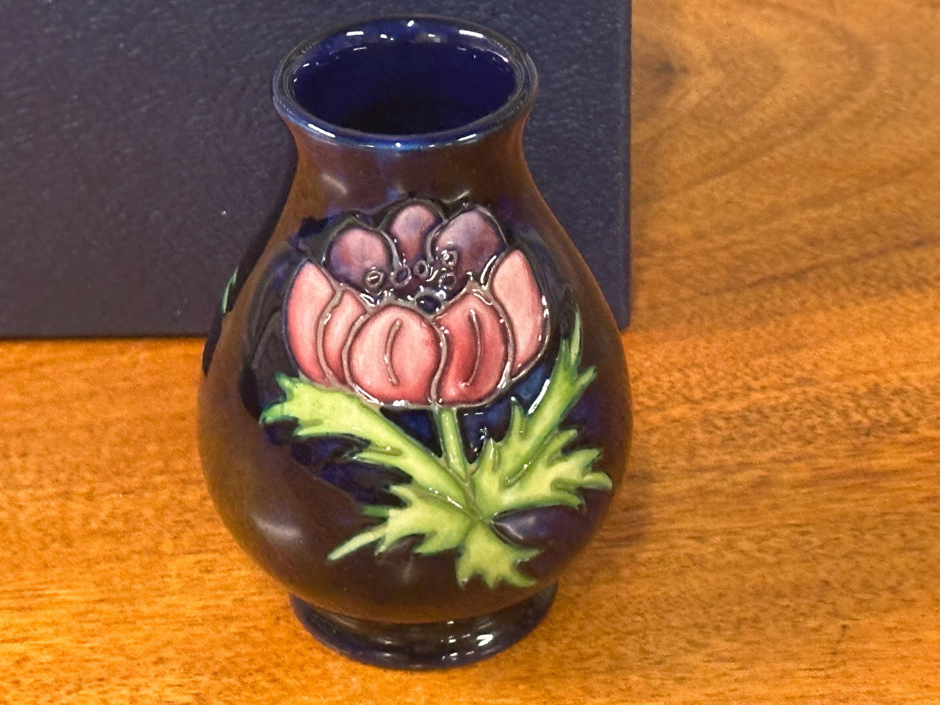 Beautiful Moorcroft Pottery small vase in the ever-popular Anemone pattern, designed by Philip Richardson and dated 1994.