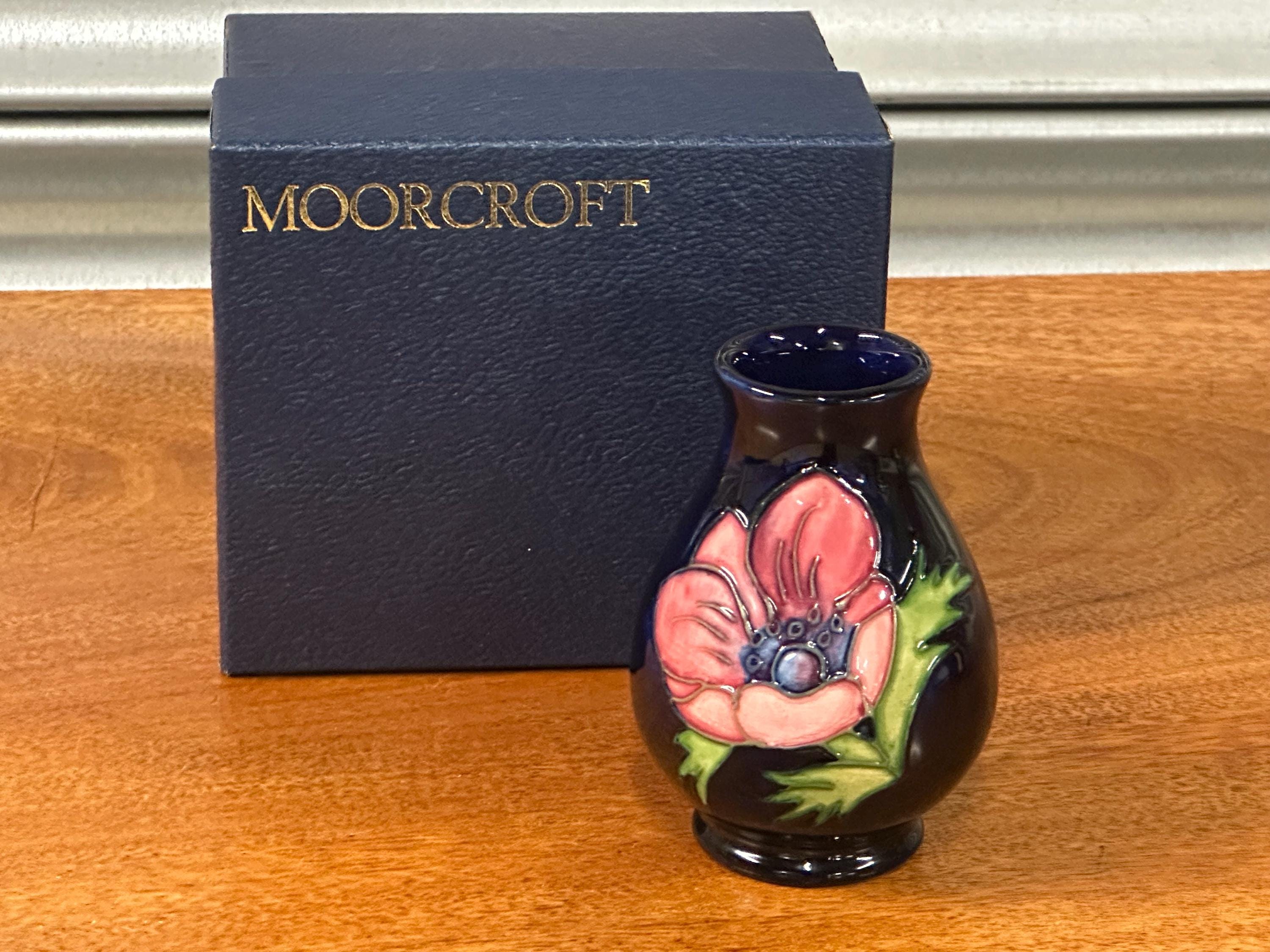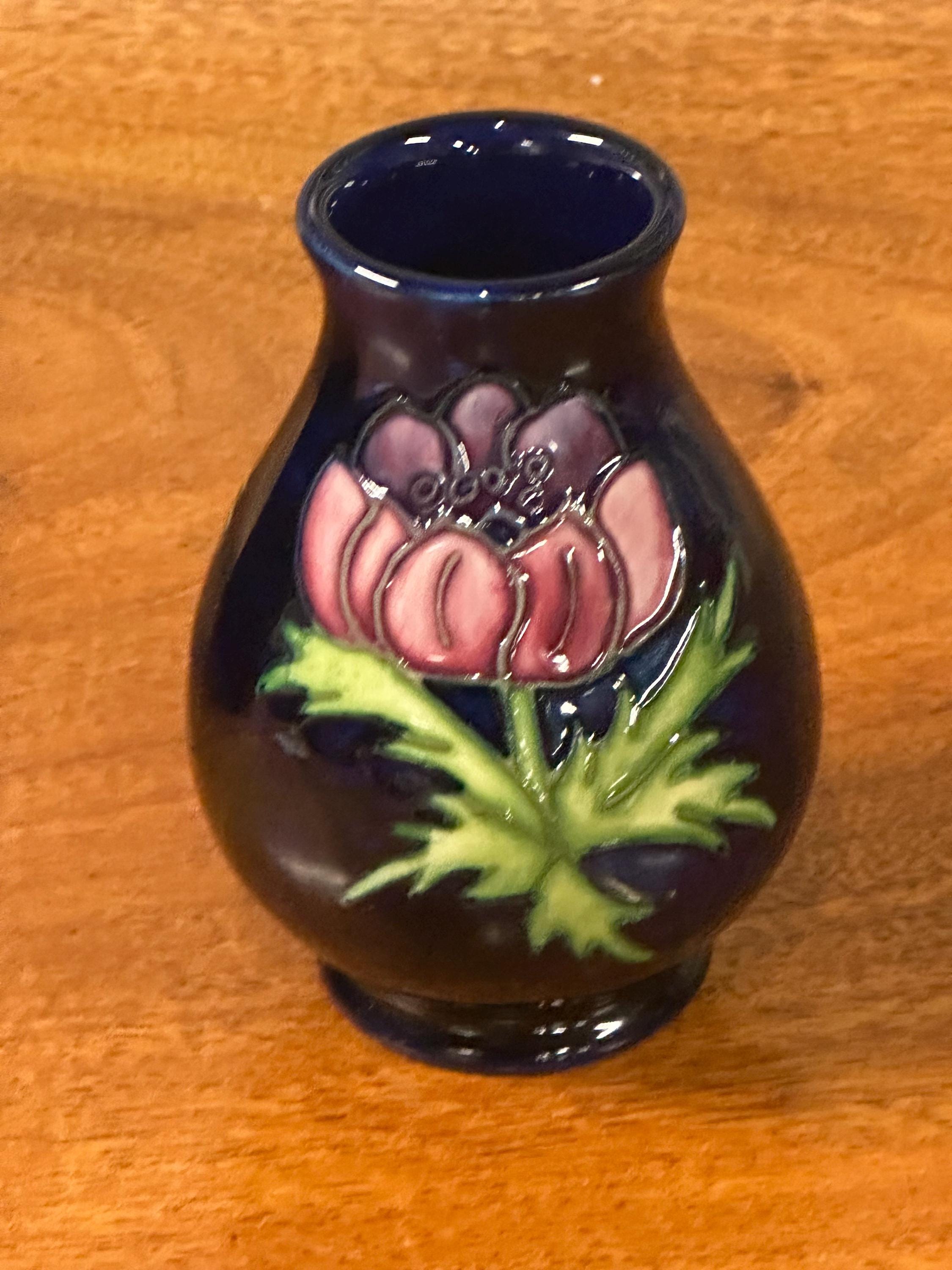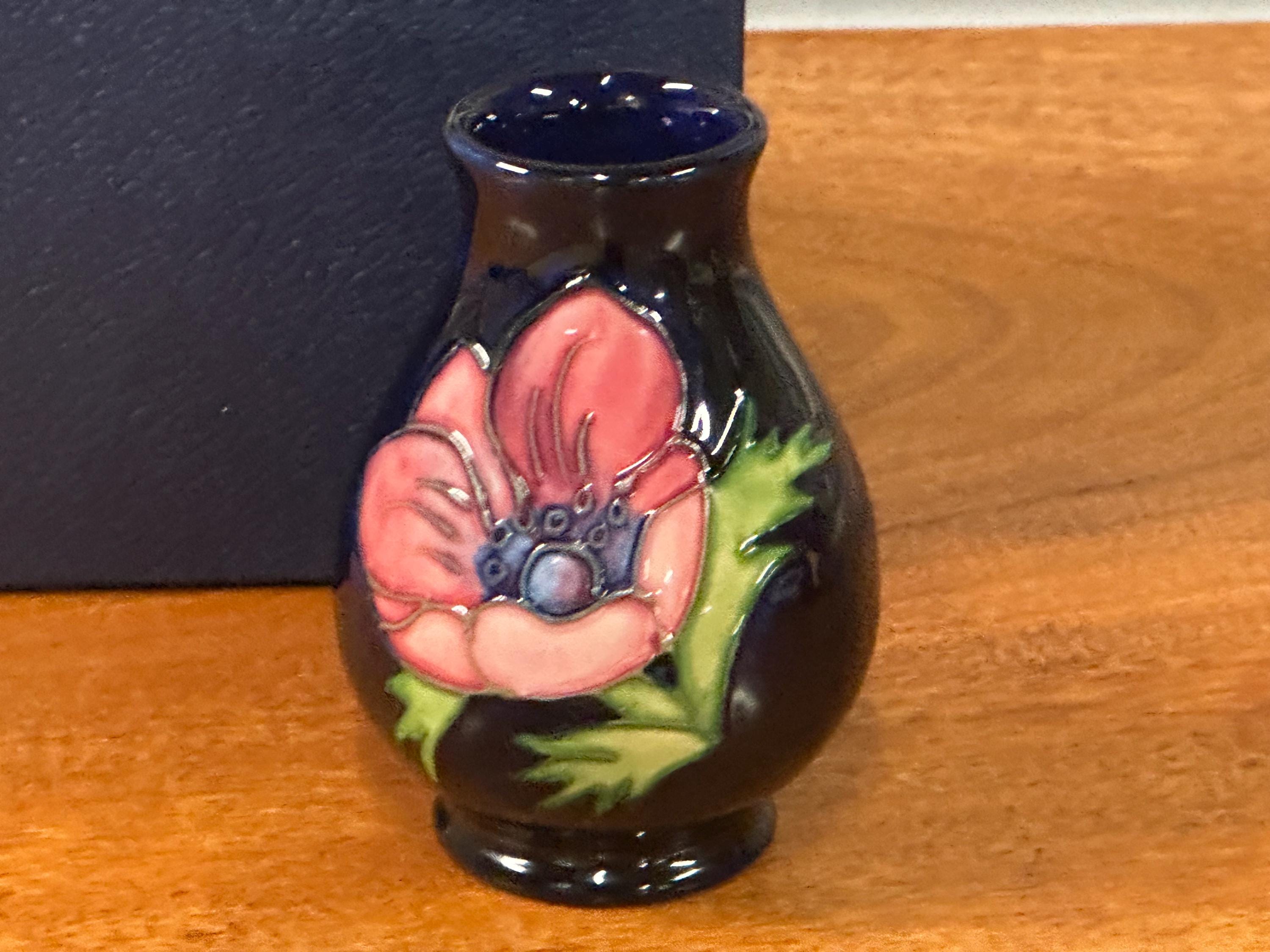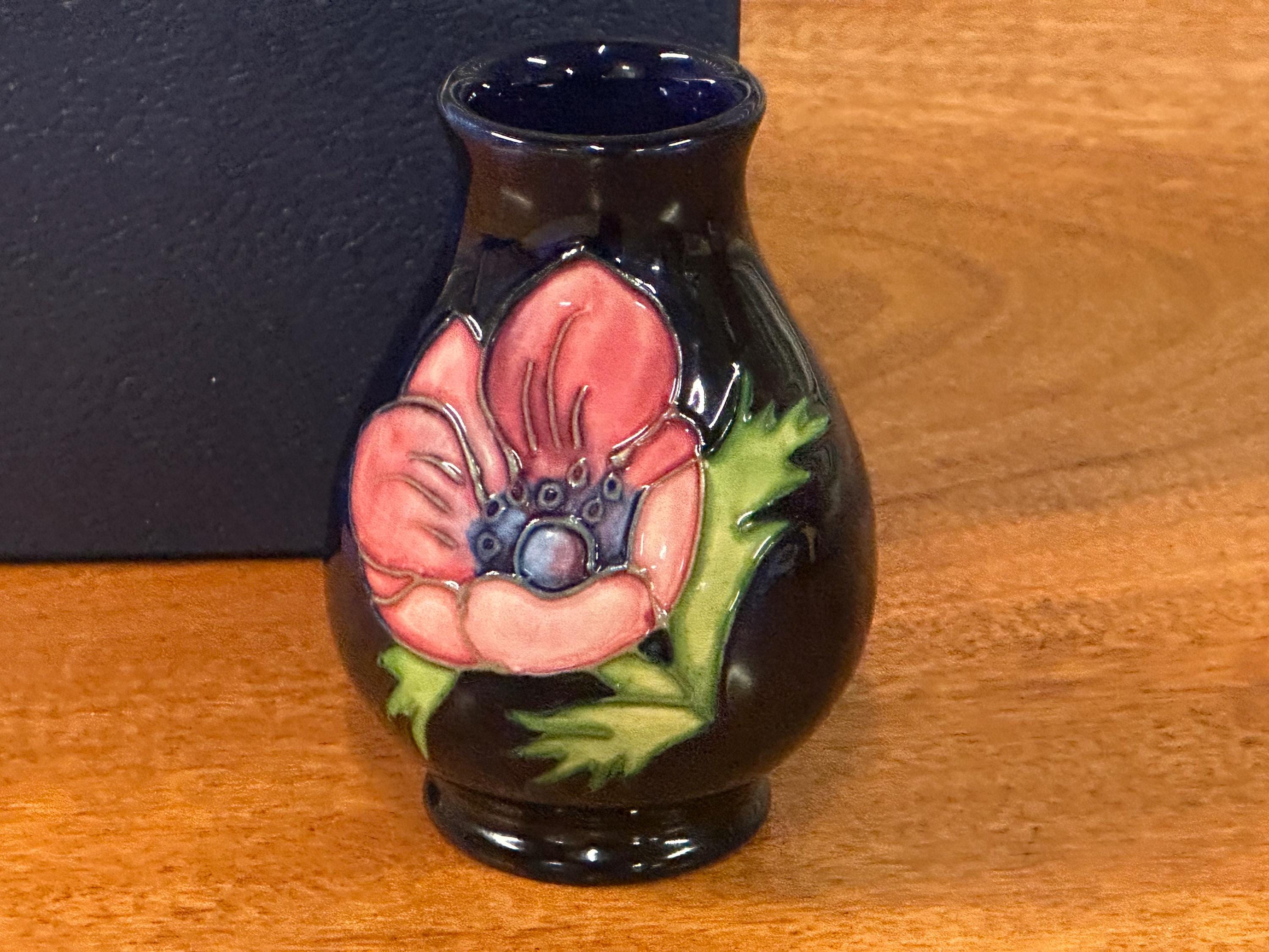 Beautiful Moorcroft Pottery small vase in the ever-popular Anemone pattern, designed by Philip Richardson and dated 1994.