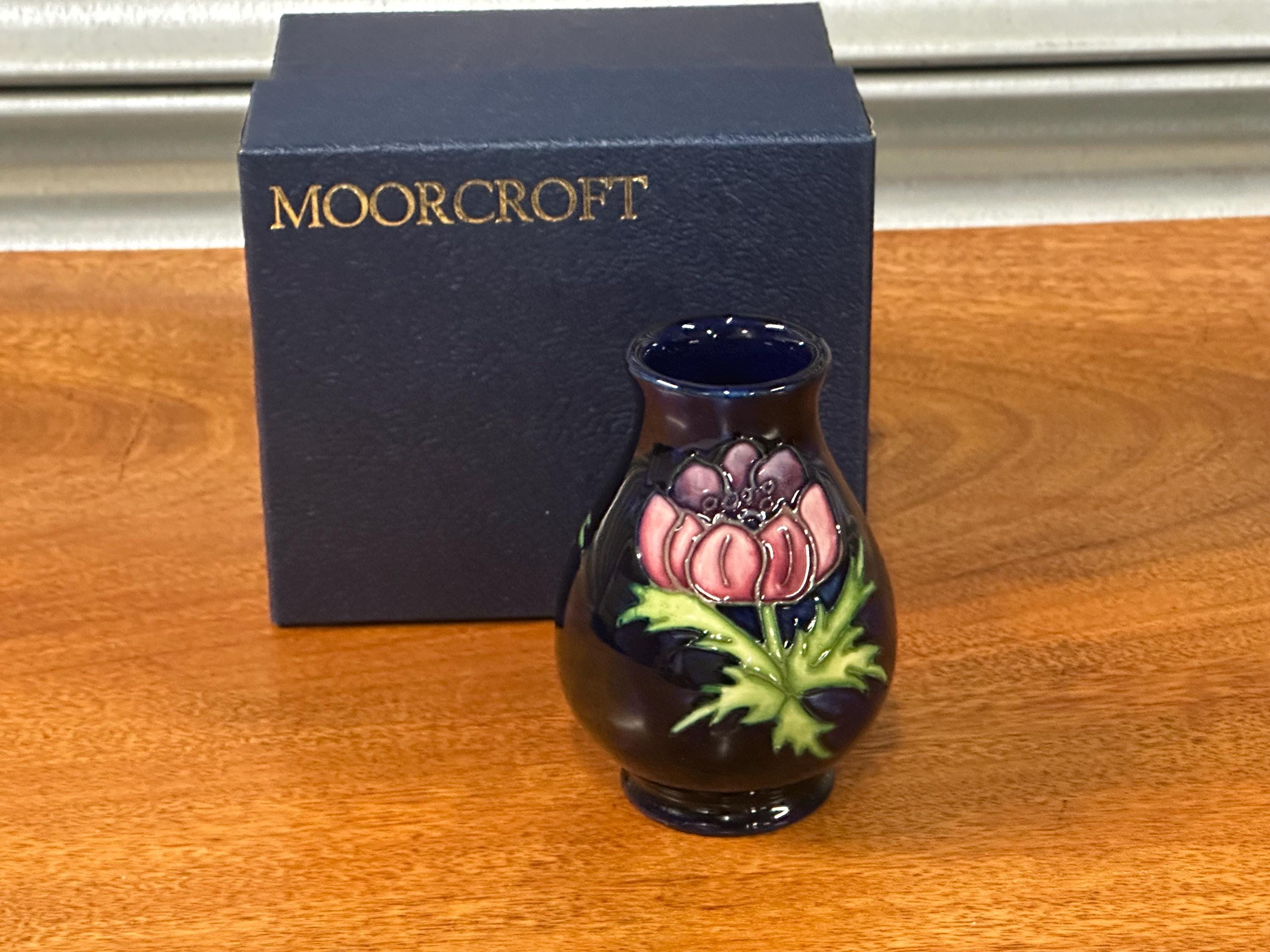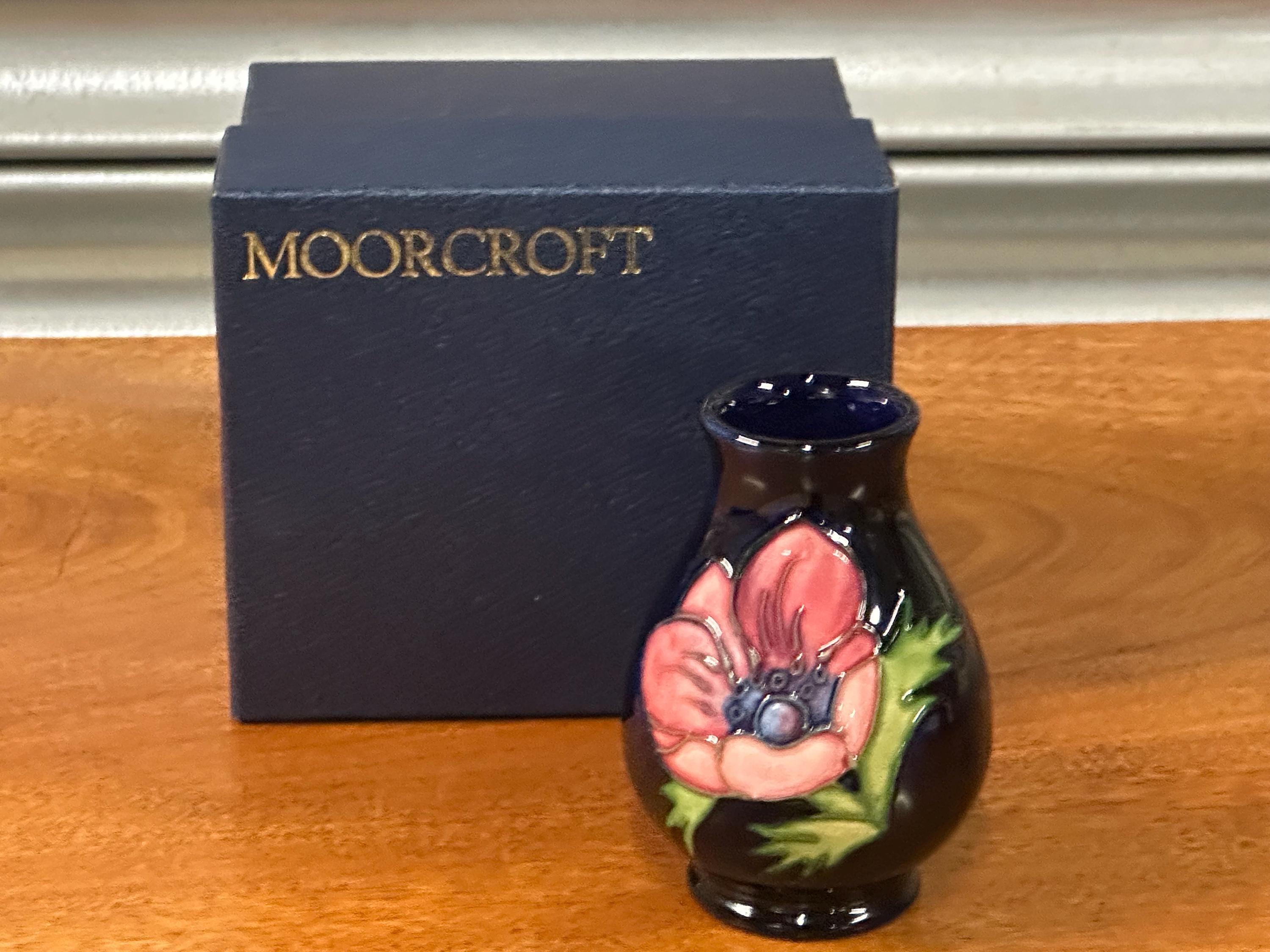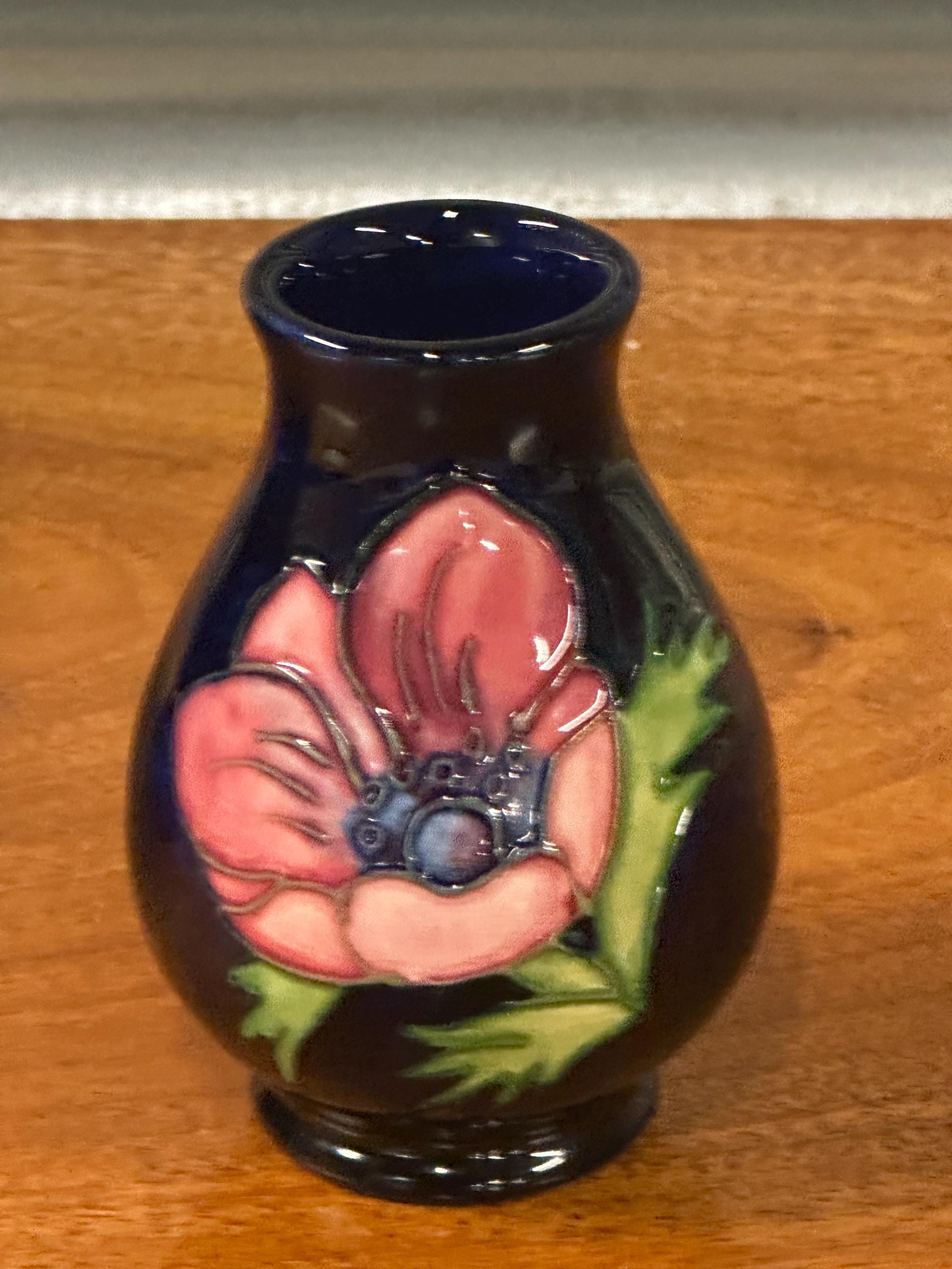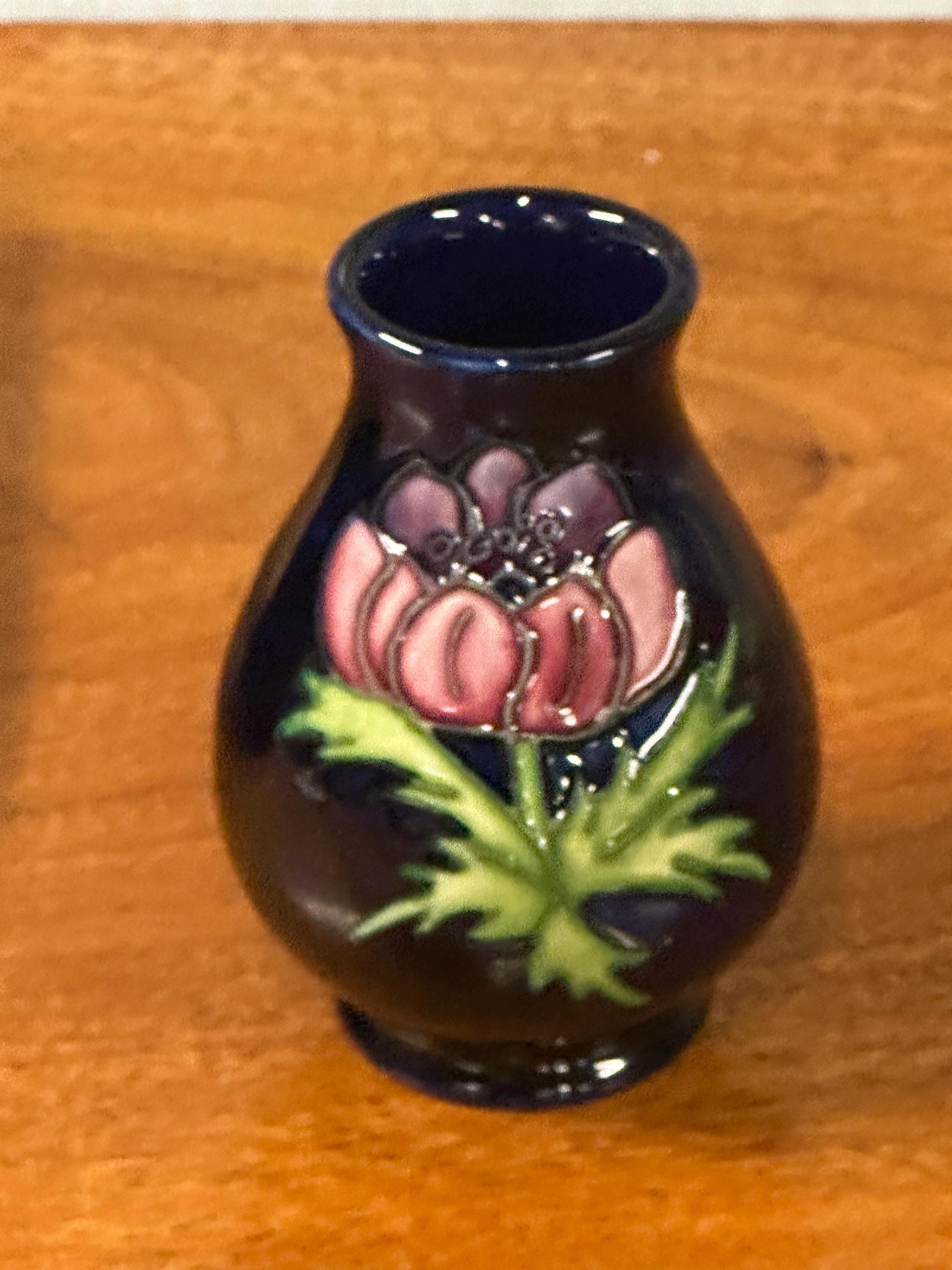 Beautiful Moorcroft Pottery small vase in the ever-popular Anemone pattern, designed by Philip Richardson and dated 1994.