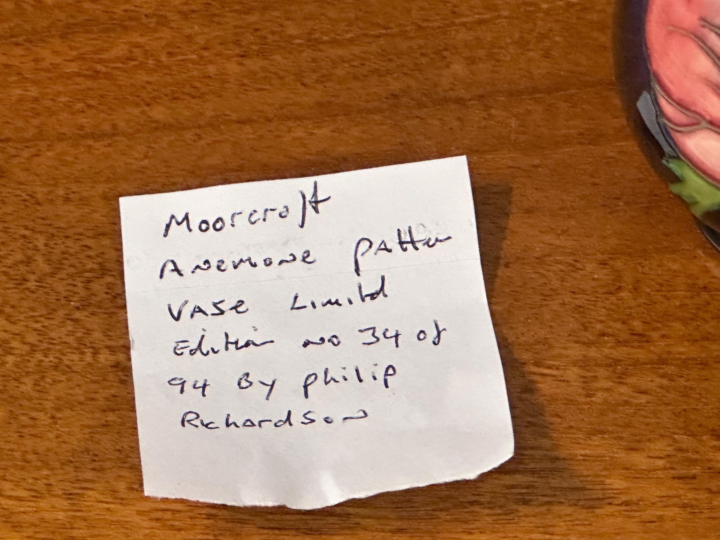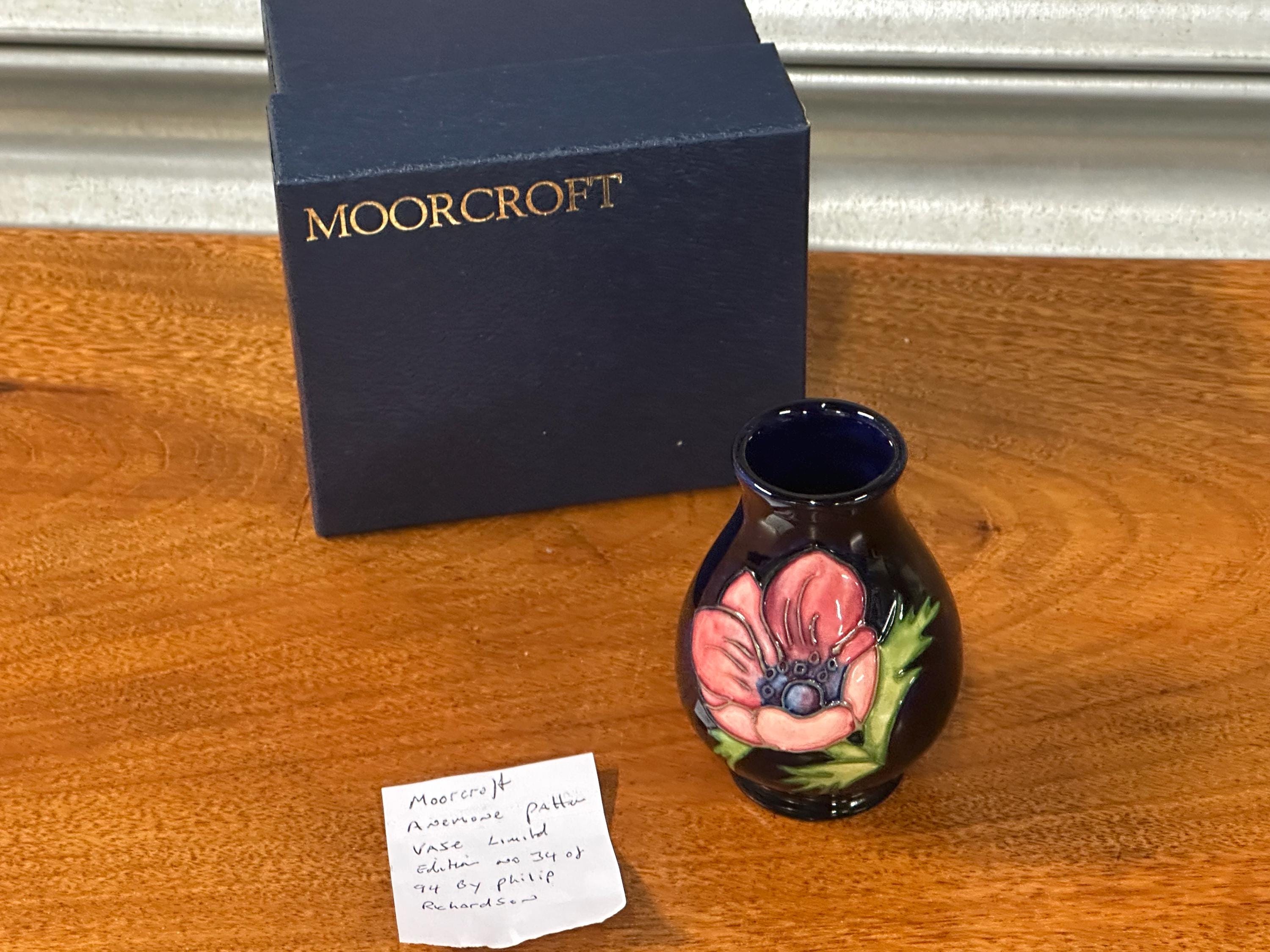 Moorcroft “Anemone” Pattern Vase – Limited Edition 34/94 – Philip Richardson with Presentation Box