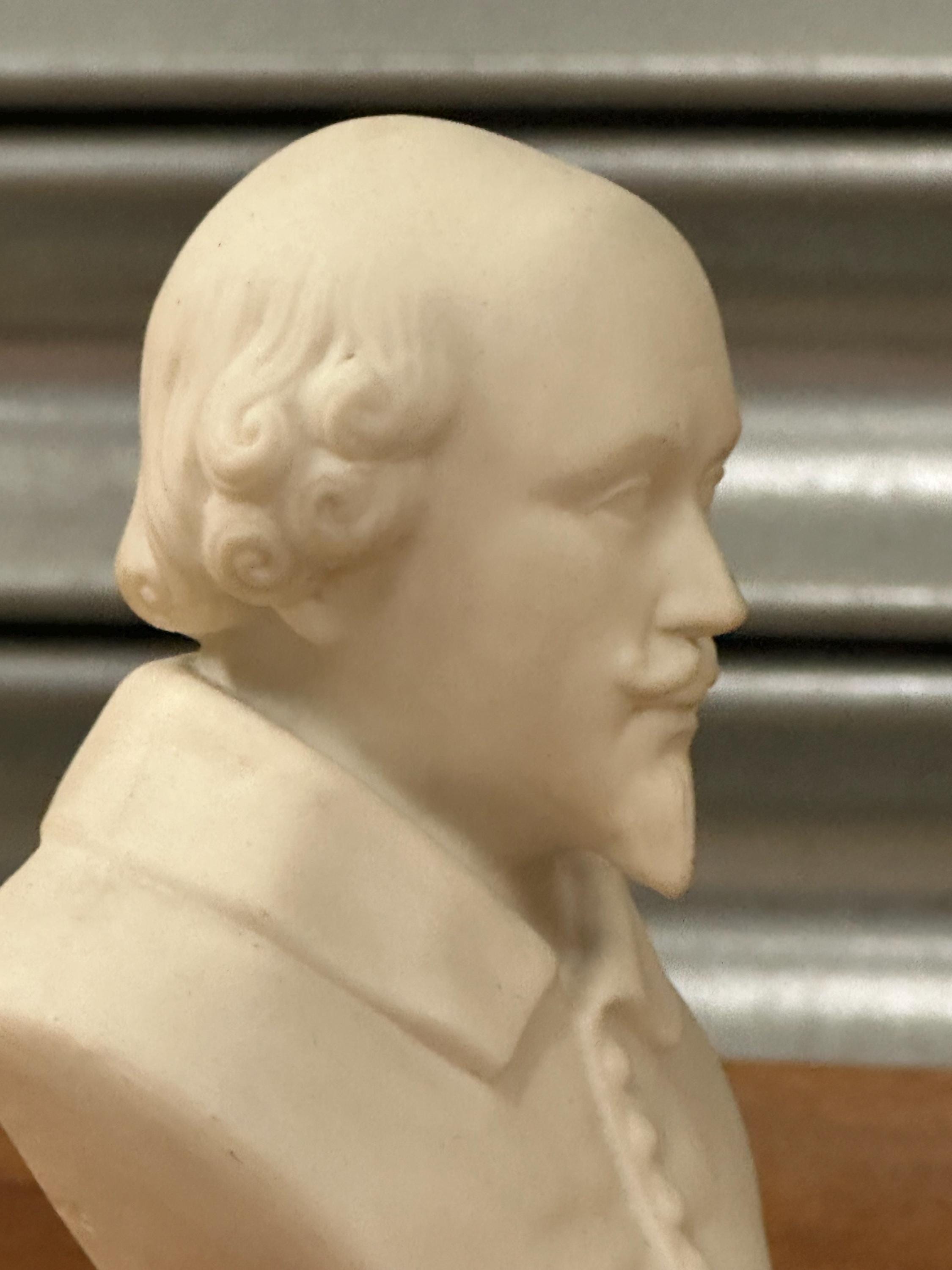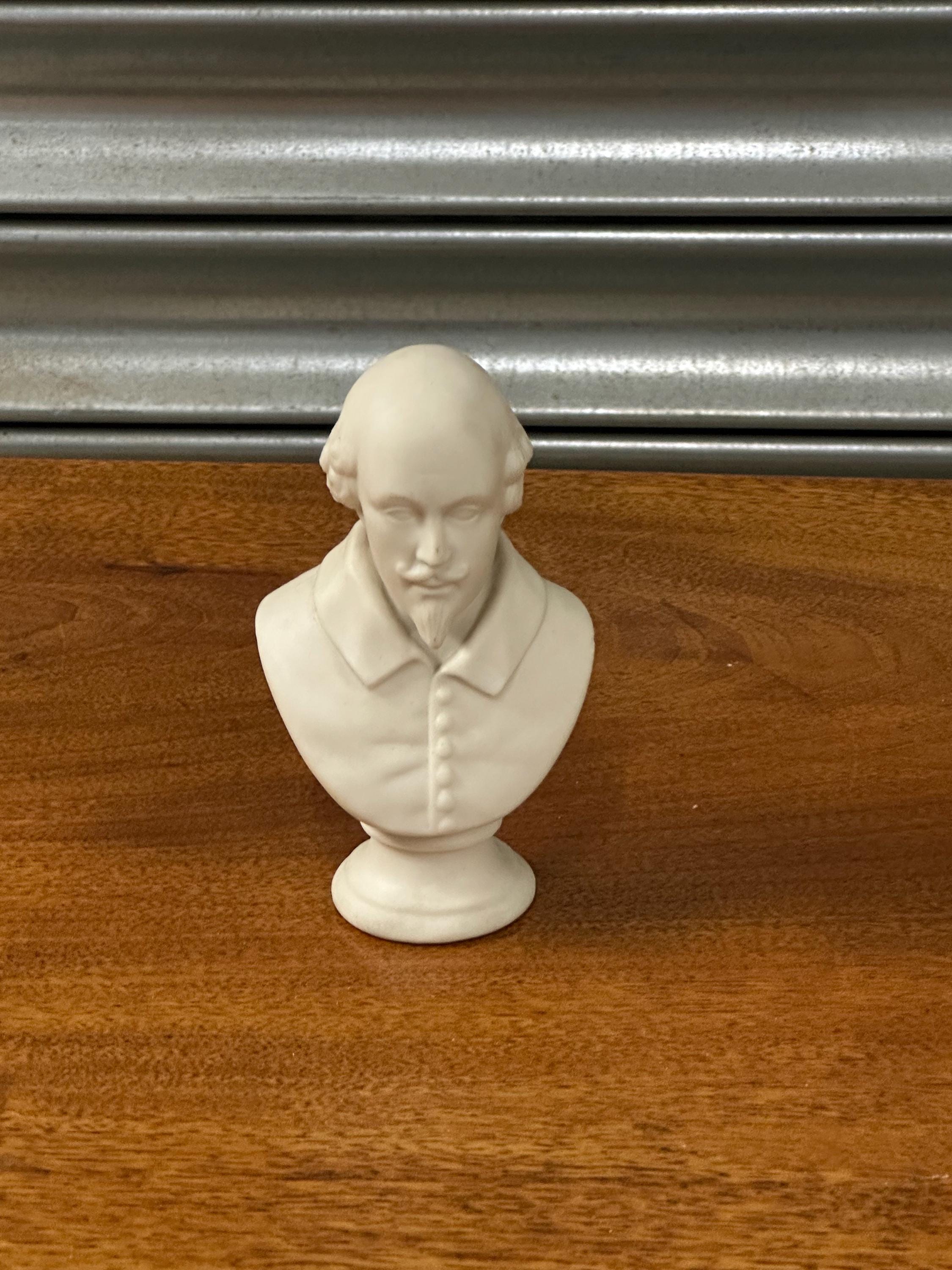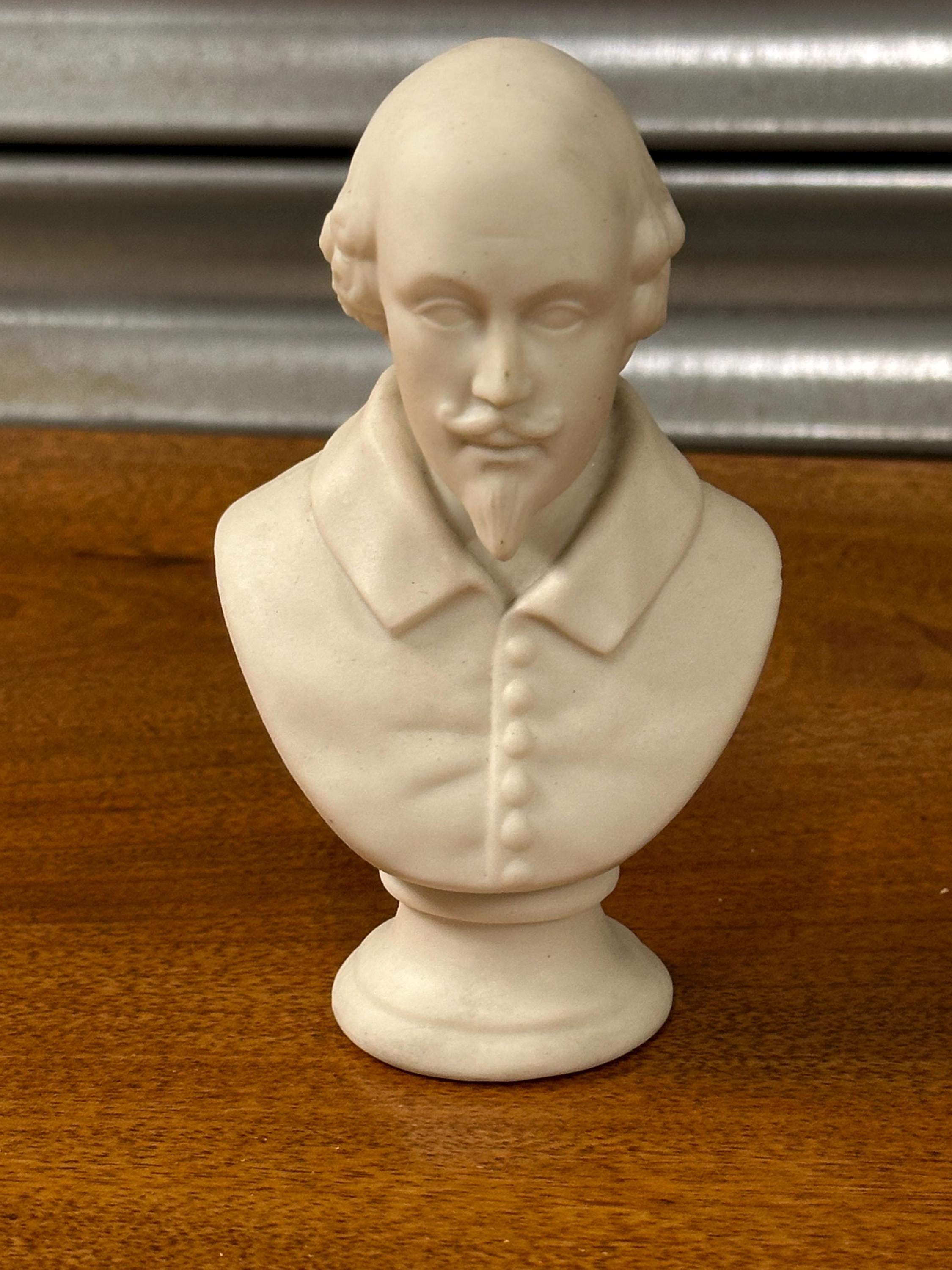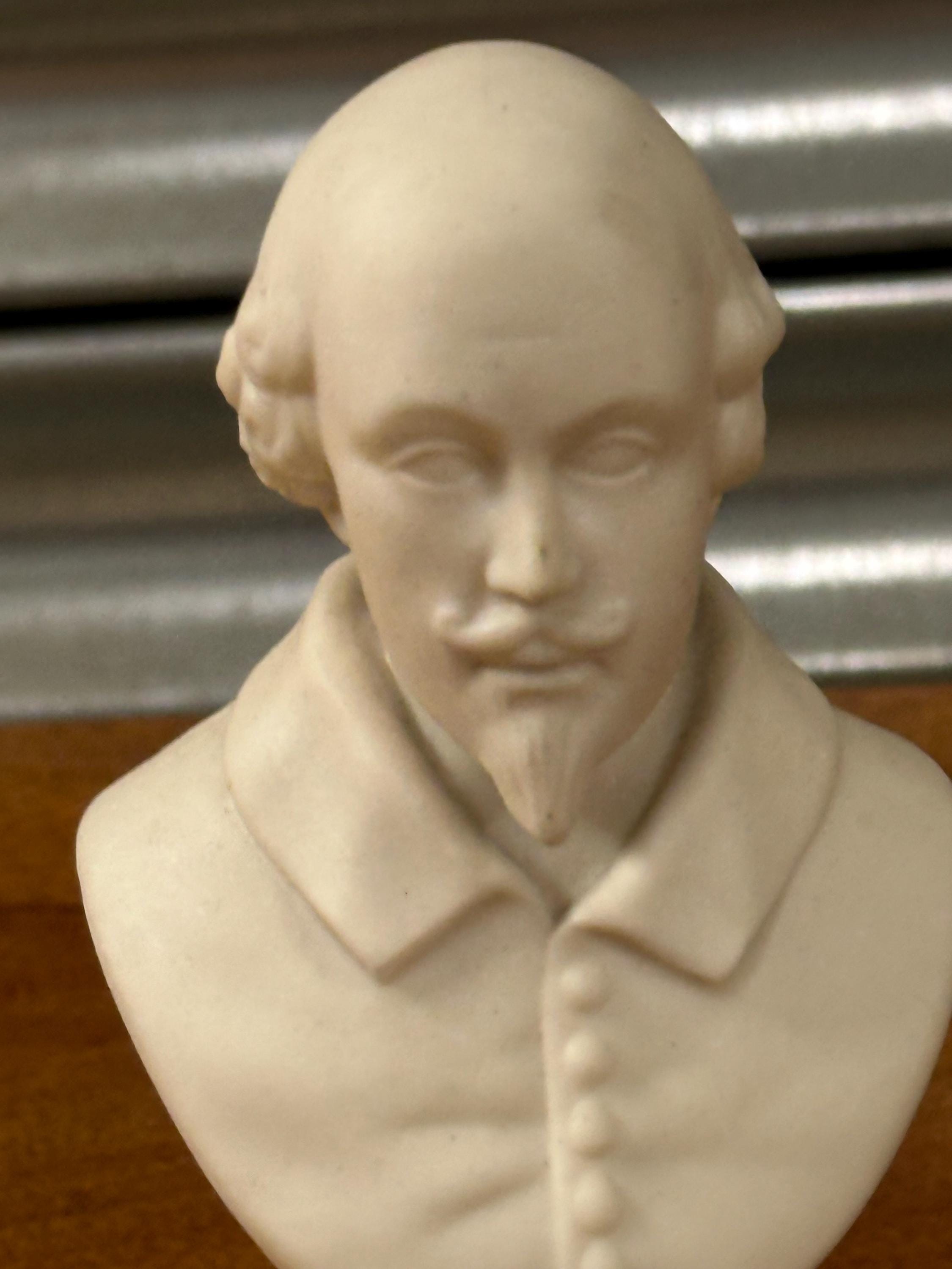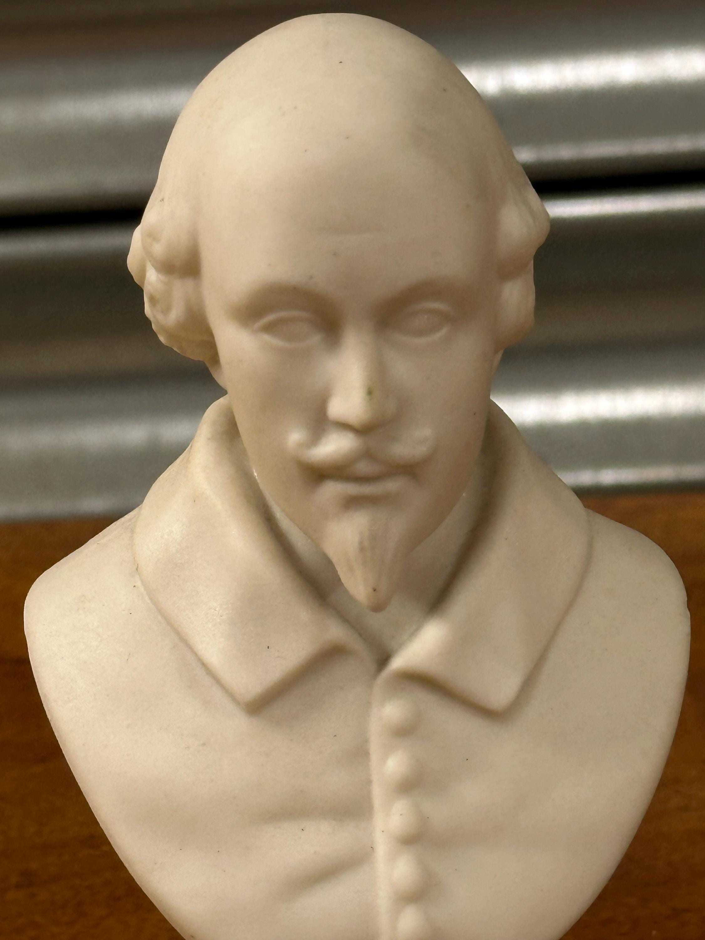 Miniature Bust of William Shakespeare – White Ceramic/Alabaster Effect Figure – Classical Desk Ornament