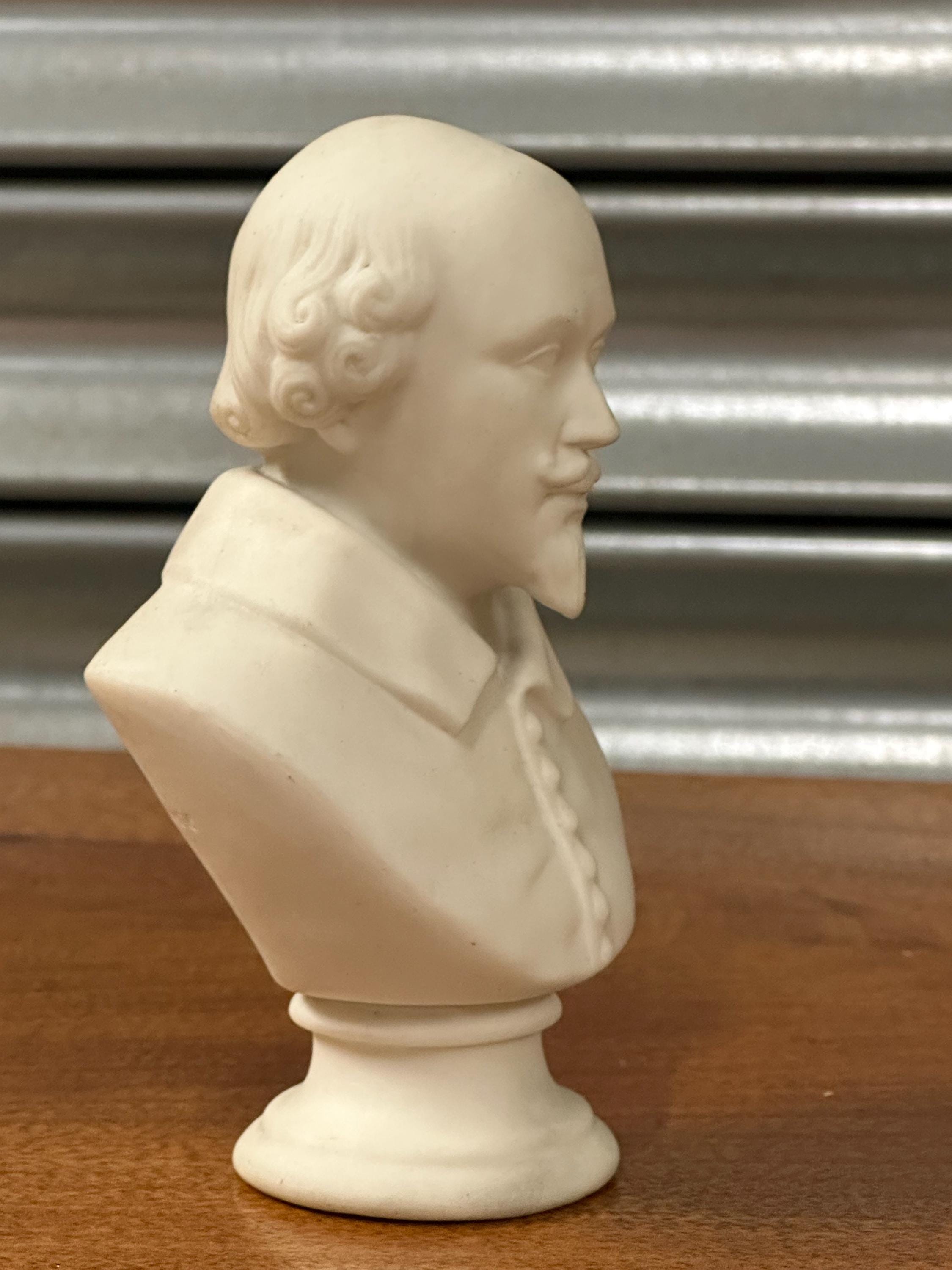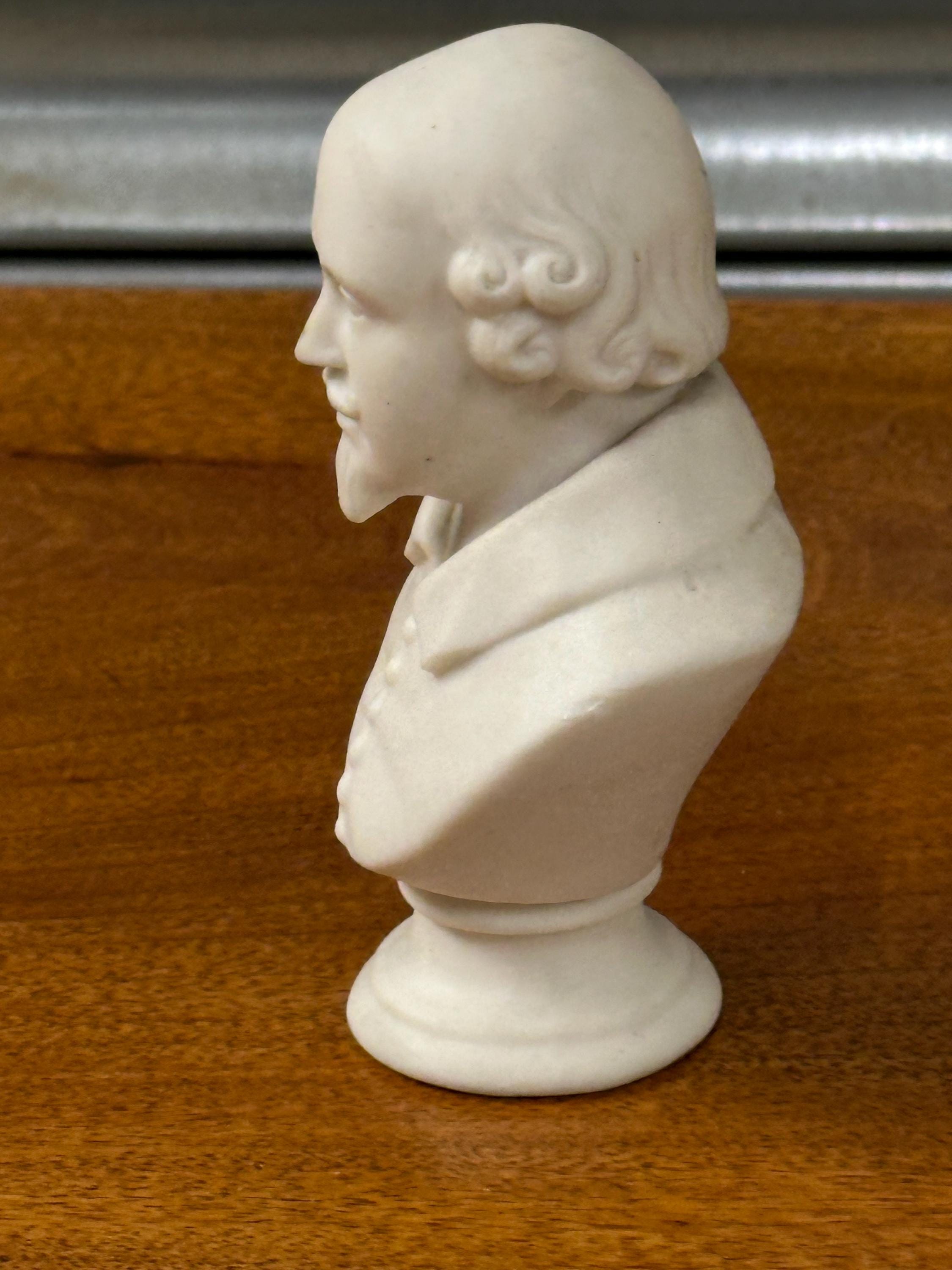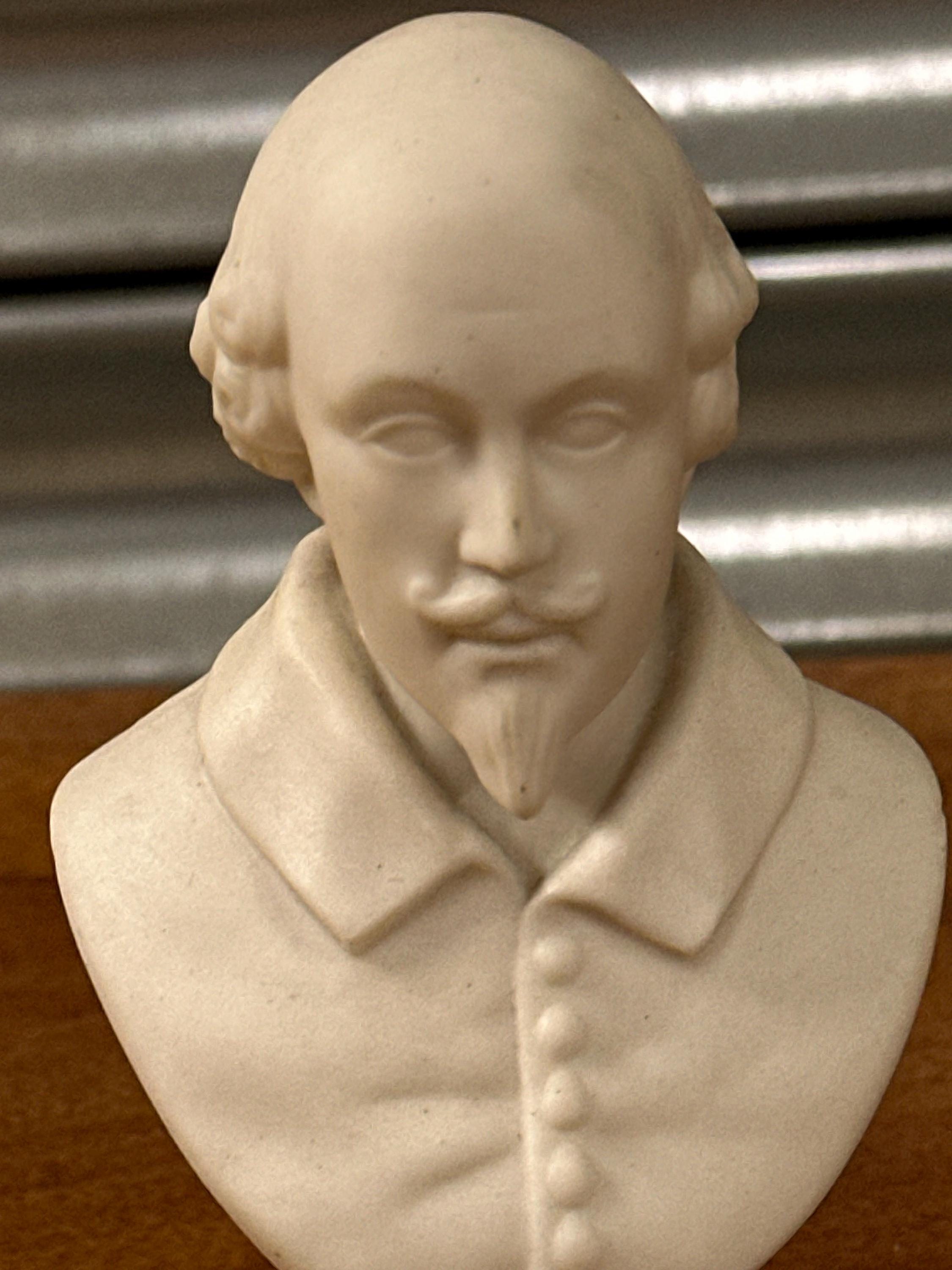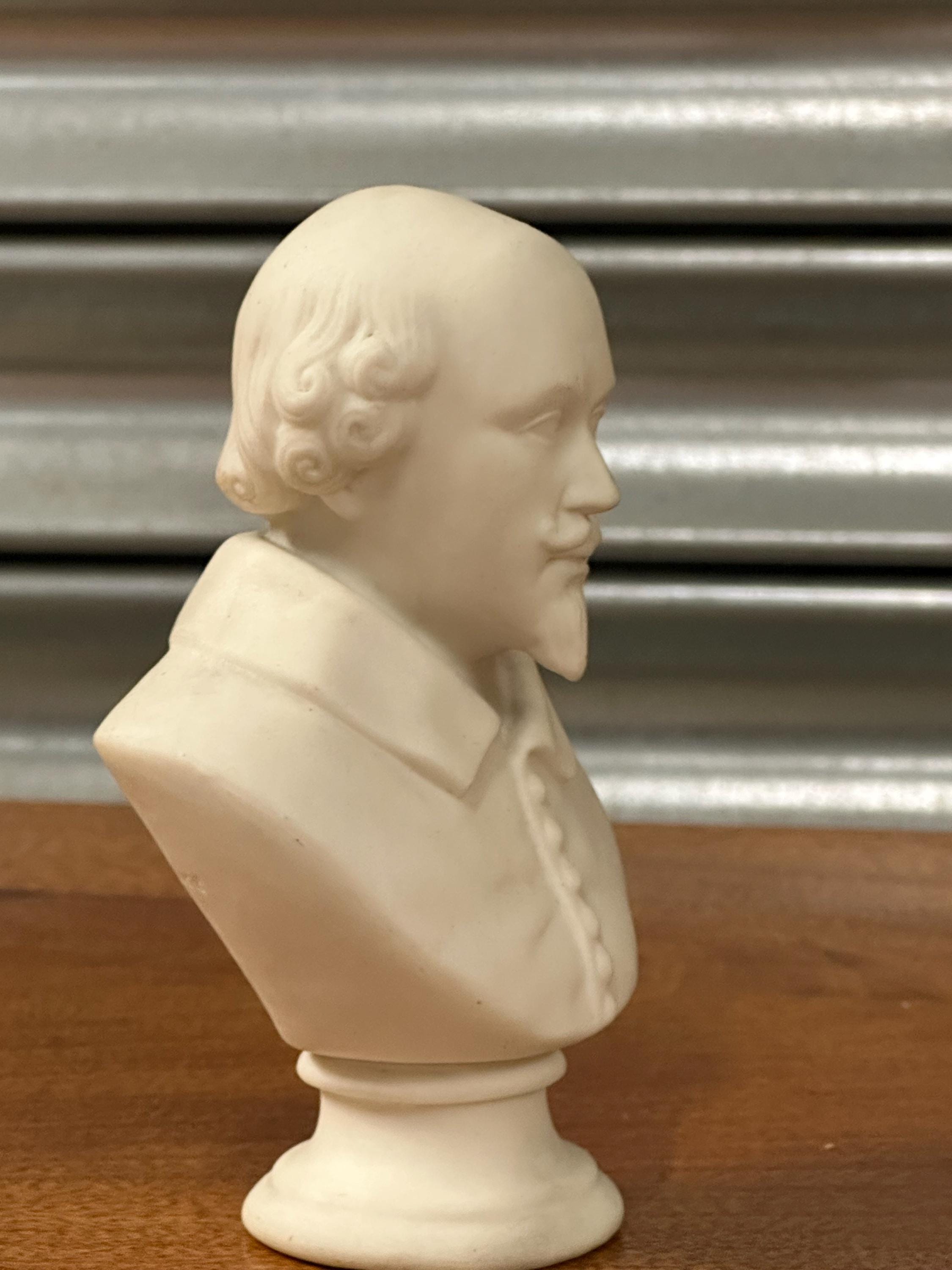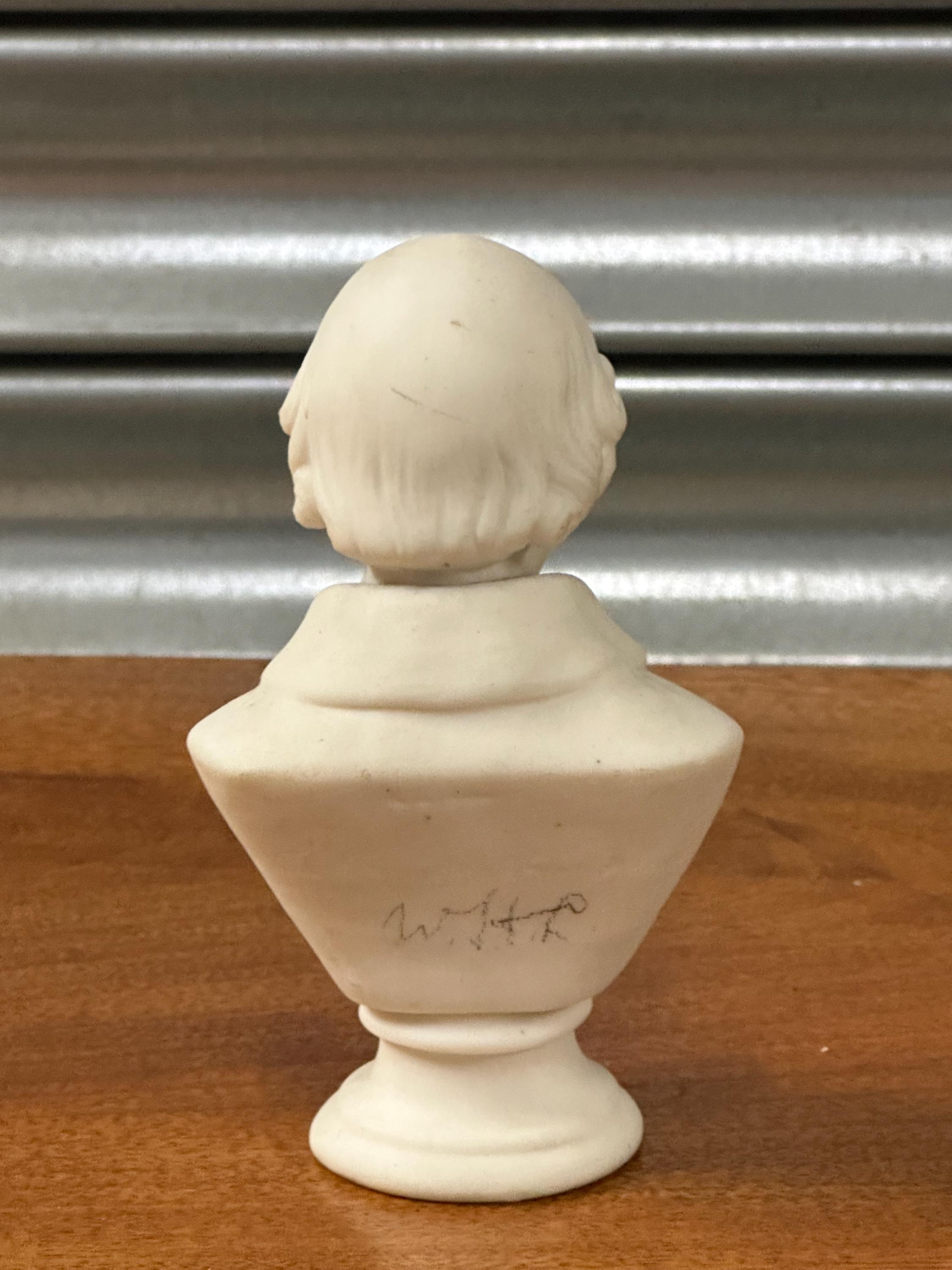 Miniature Bust of William Shakespeare – White Ceramic/Alabaster Effect Figure – Classical Desk Ornament