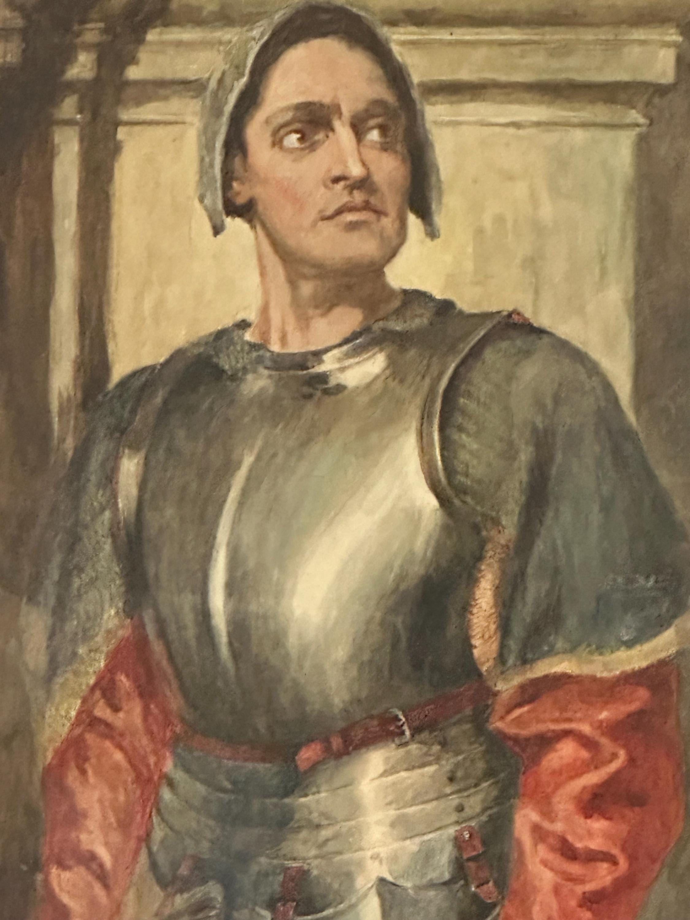 Frederic Leighton’s interpretation of a condottiere reflects the Victorian fascination with classical history and the Italian Renaissance. Rather than portraying a specific individual, the figure represents the idealised Renaissance warrior—disciplined, authoritative, and noble in bearing. The armour, stance, and contemplative expression all emphasise strength, leadership, and honour.
