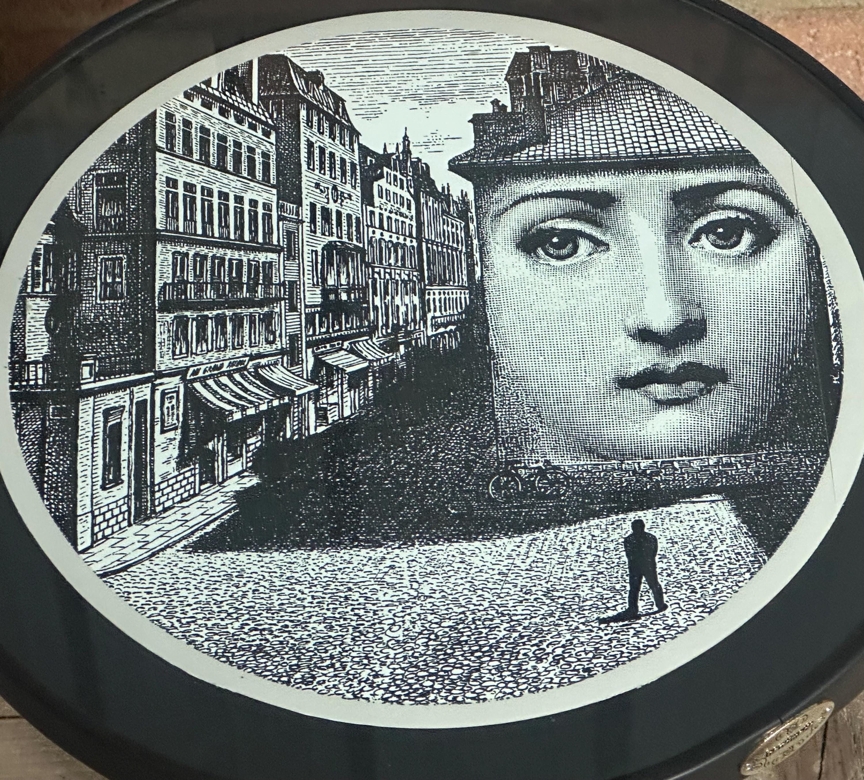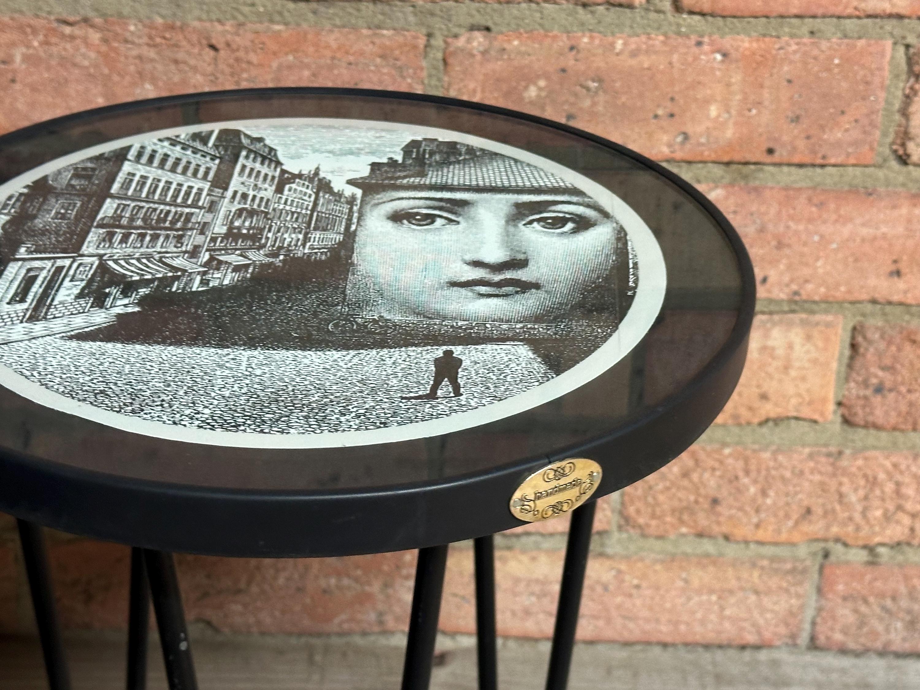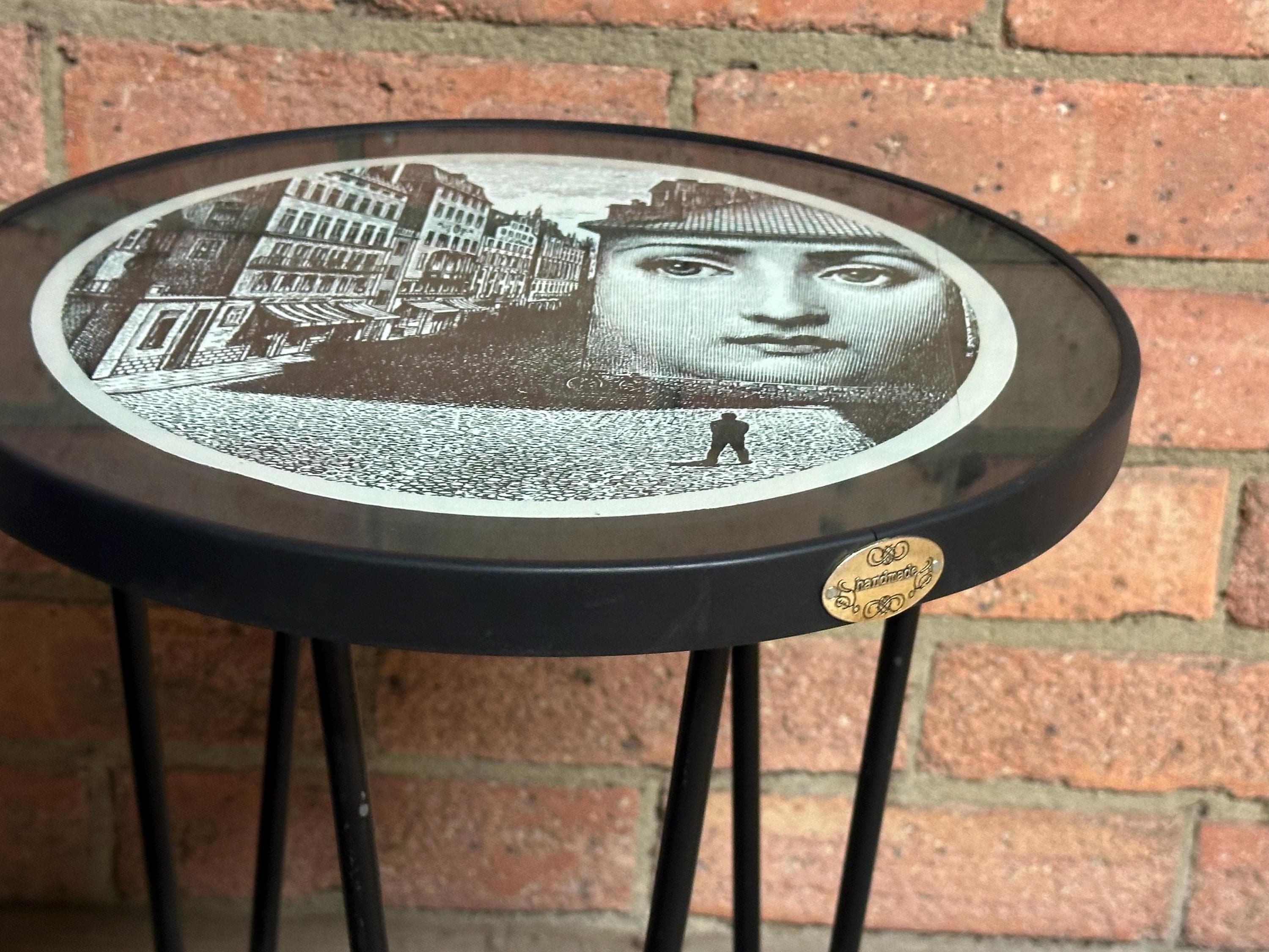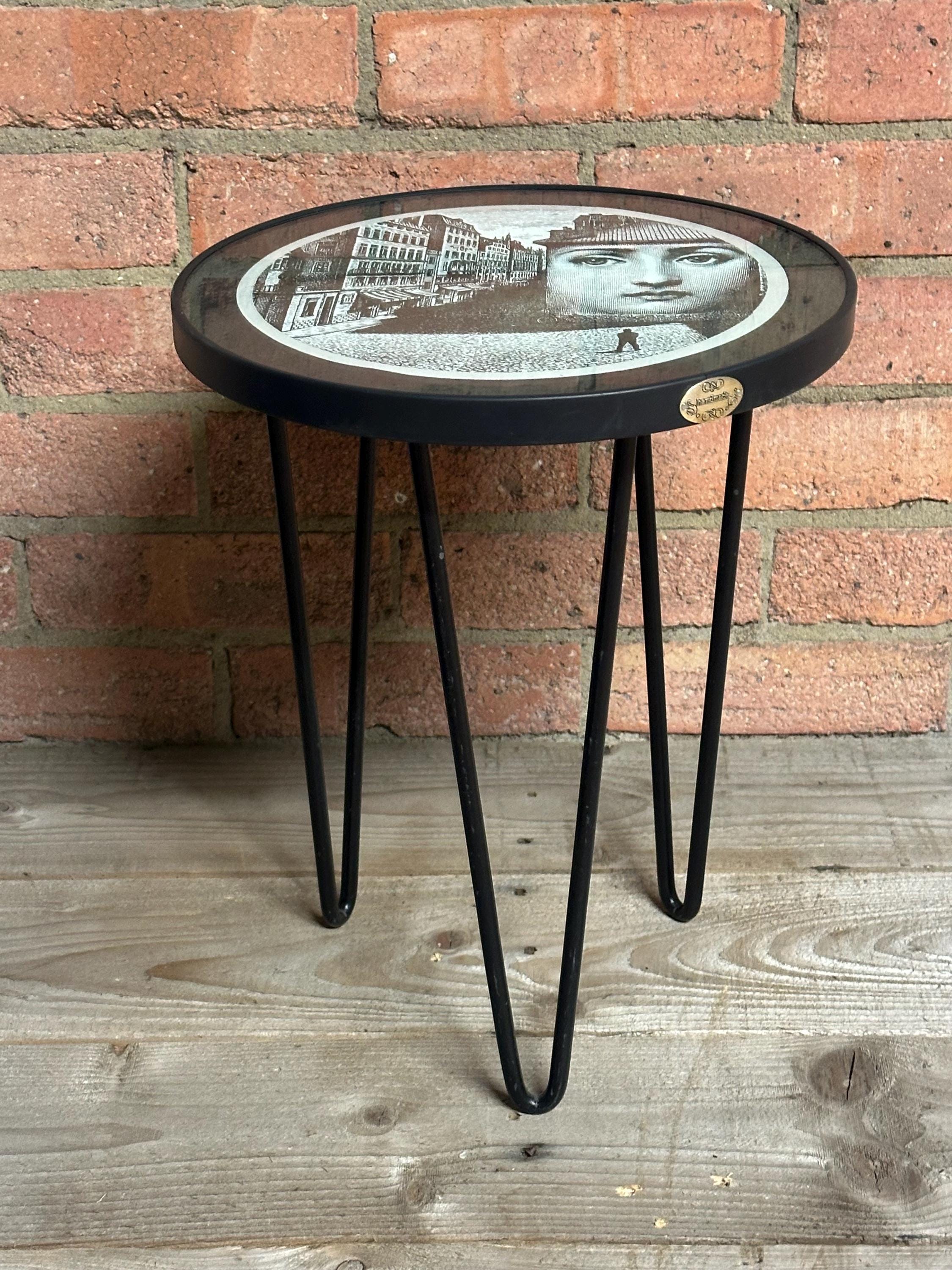 This eye-catching occasional table perfectly captures the surreal and whimsical style of Italian designer Piero Fornasetti, whose work is renowned for transforming everyday objects into pieces of art .