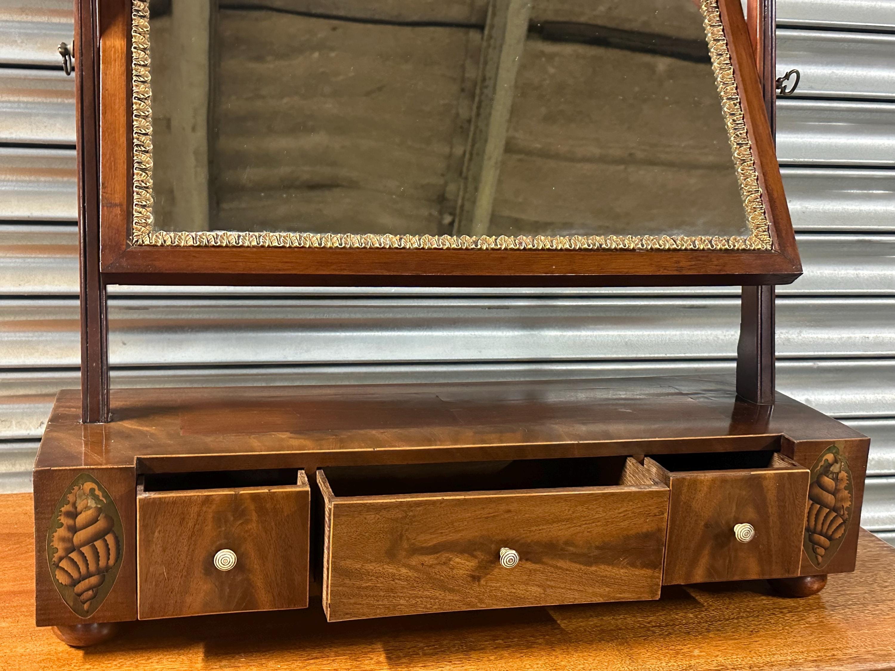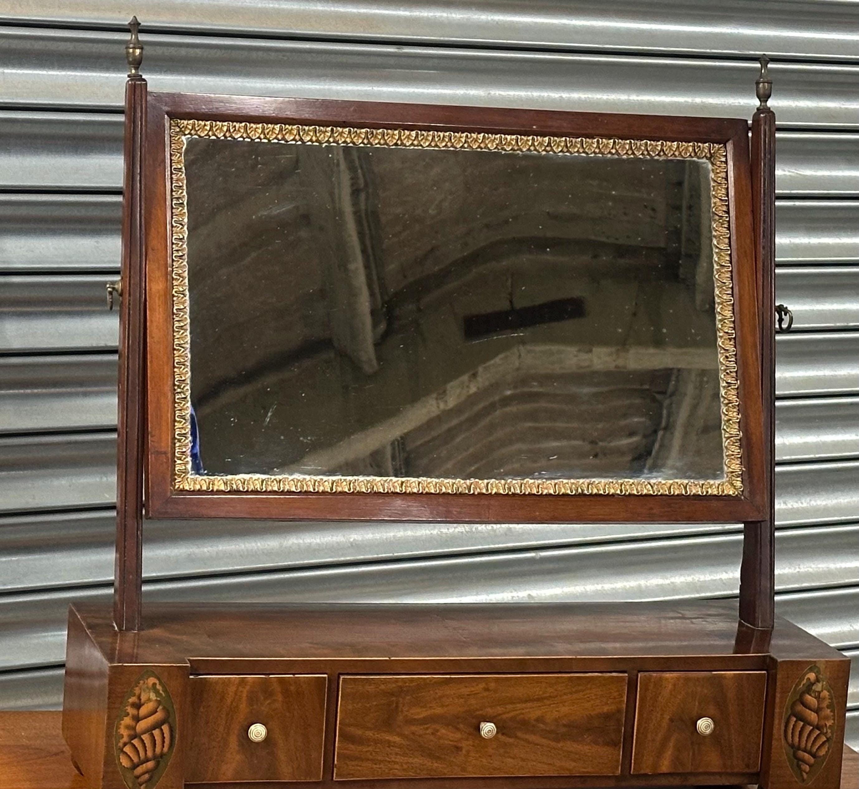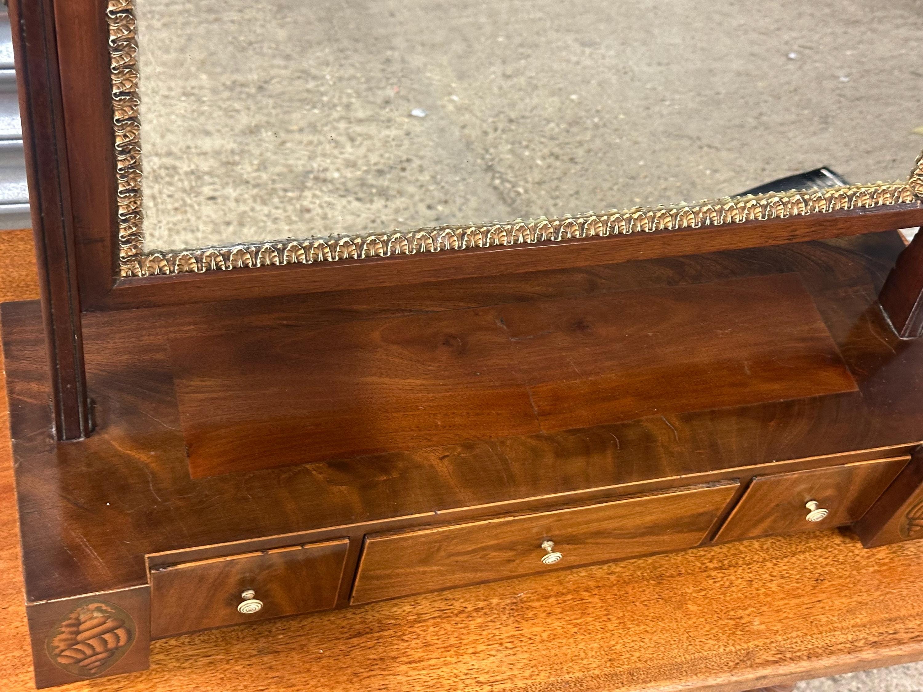 Antique 19thC Mahogany Dressing Table Mirror / Toilet Mirror with Inlay /Drawers
