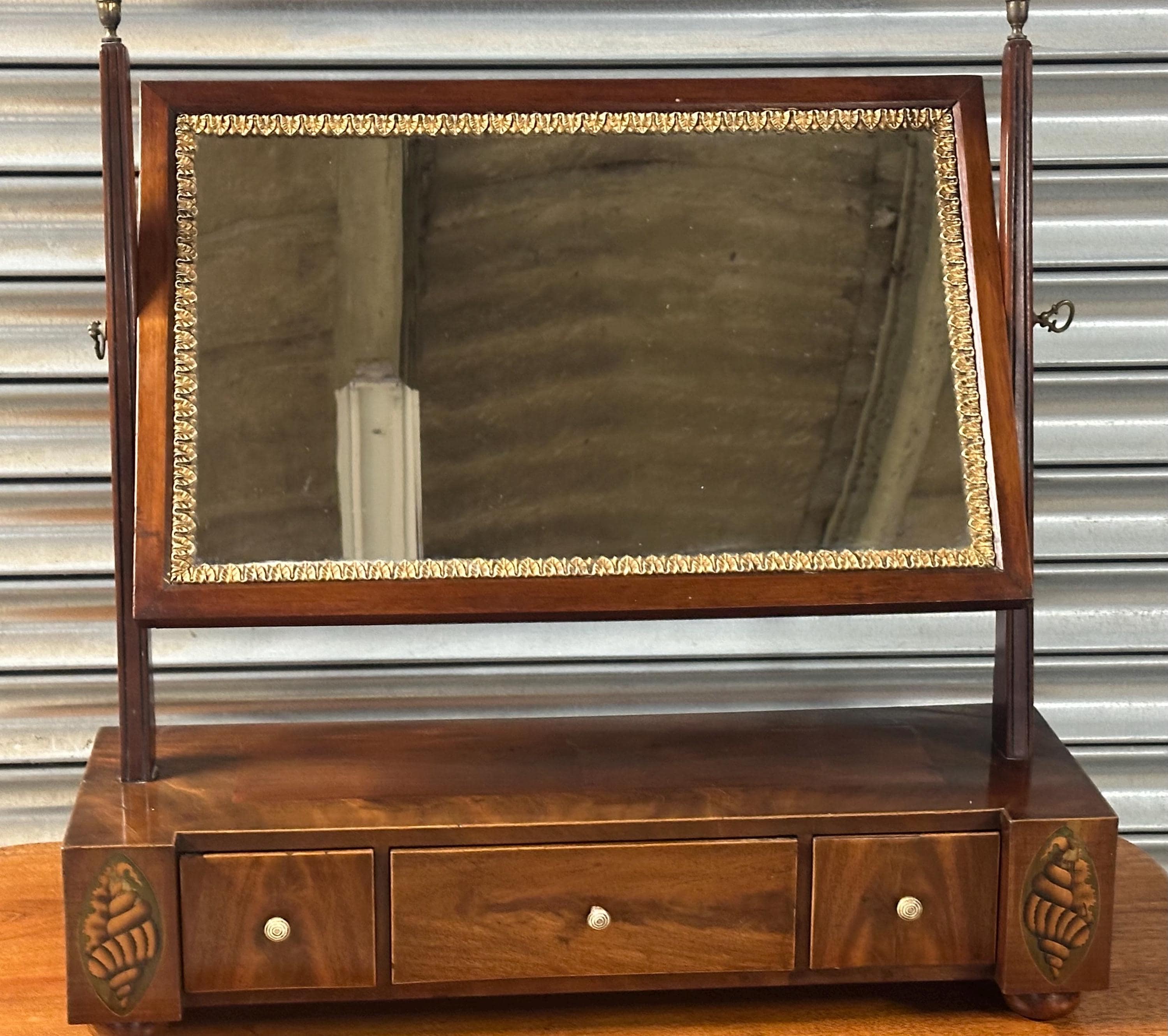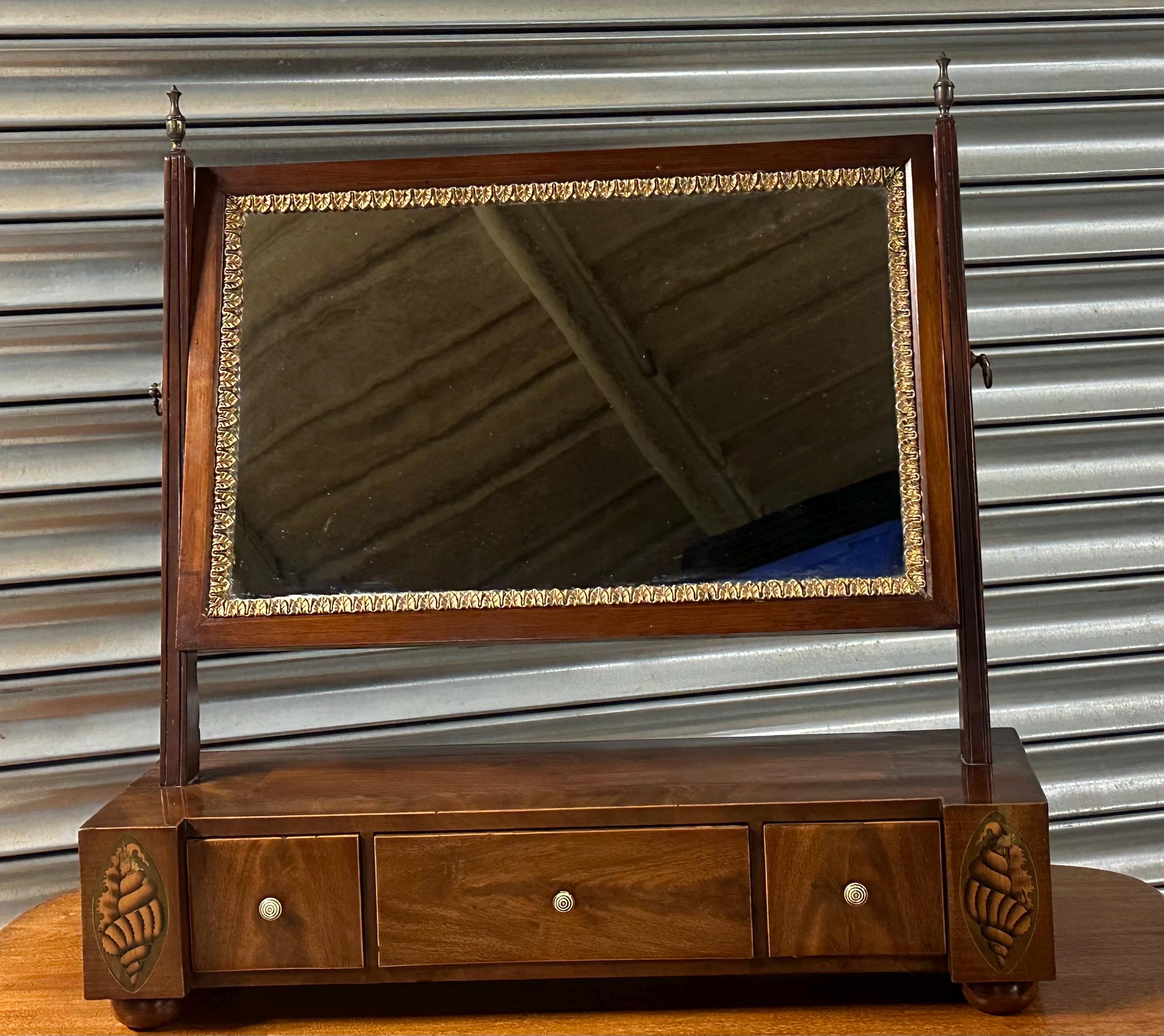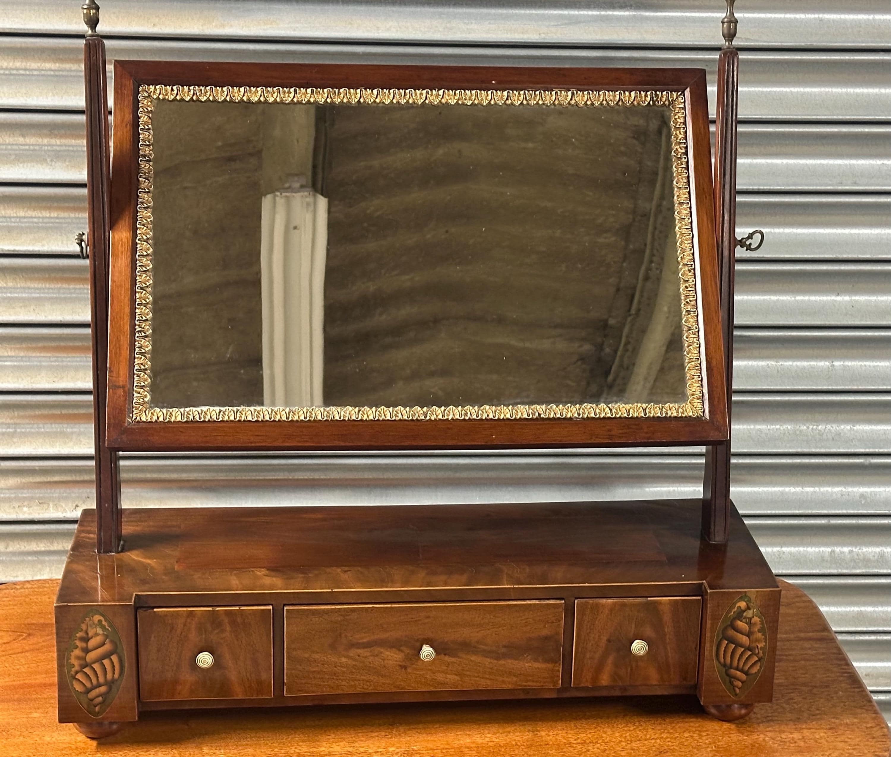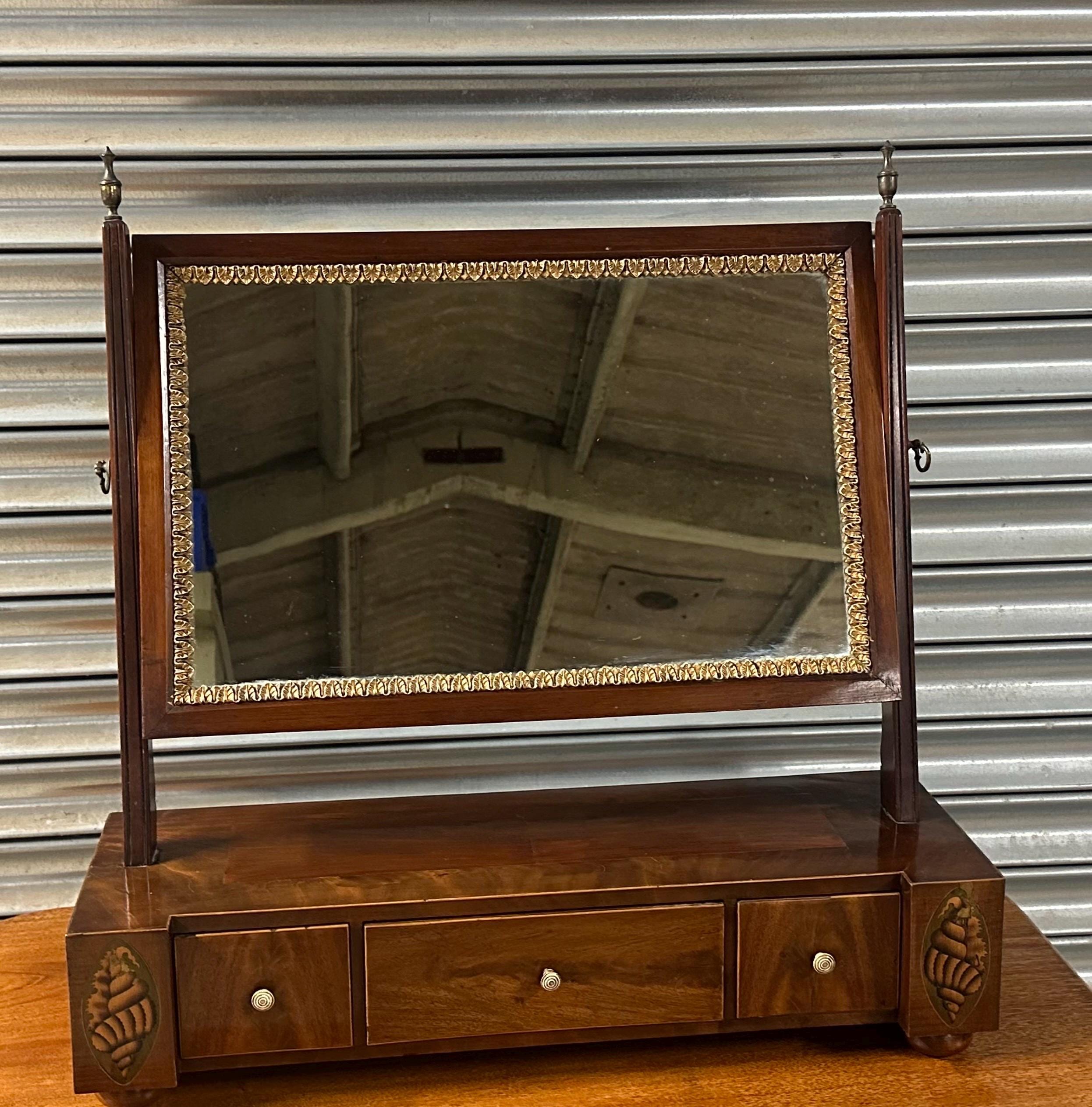 Antique 19thC Mahogany Dressing Table Mirror / Toilet Mirror with Inlay /Drawers