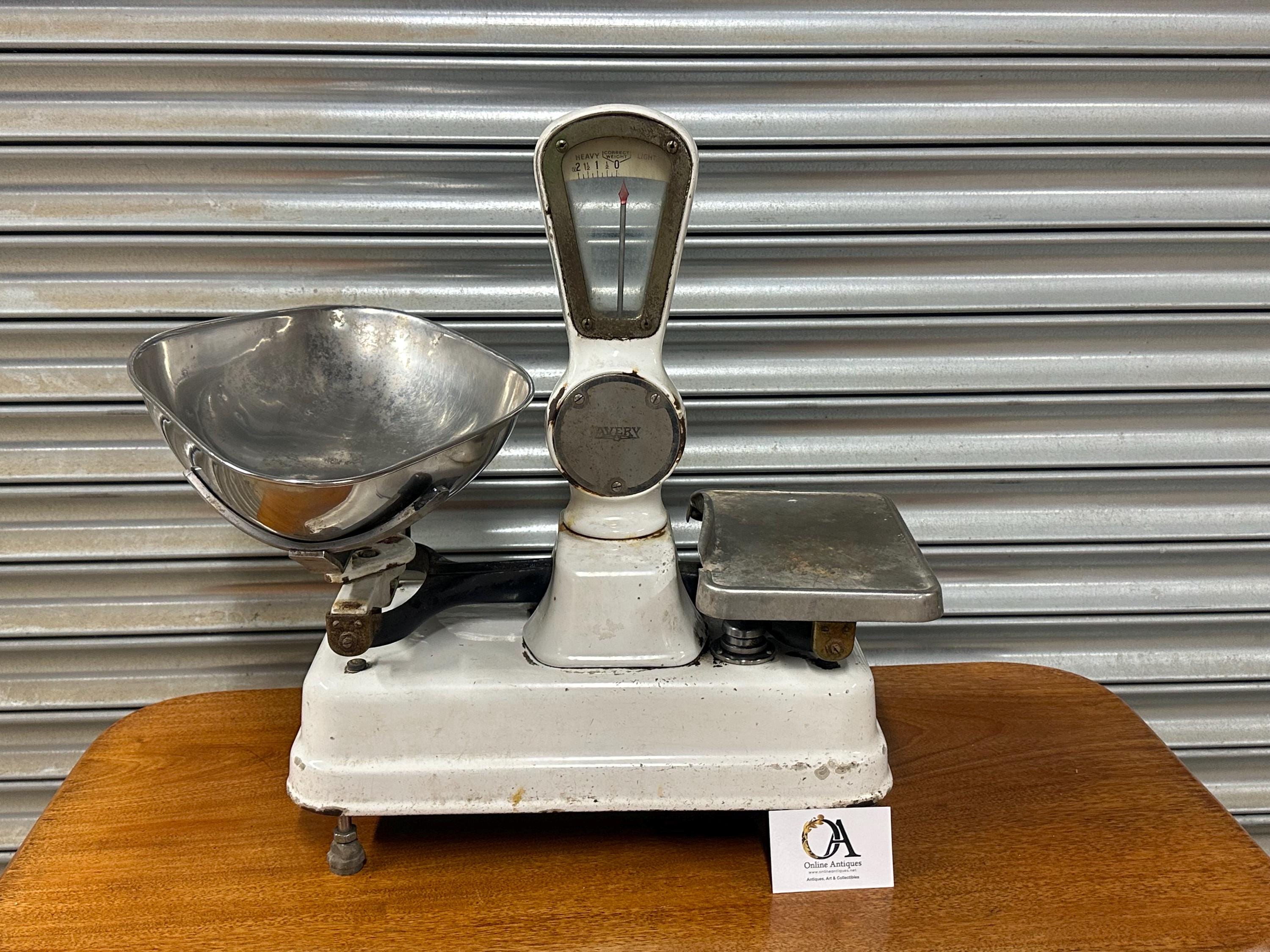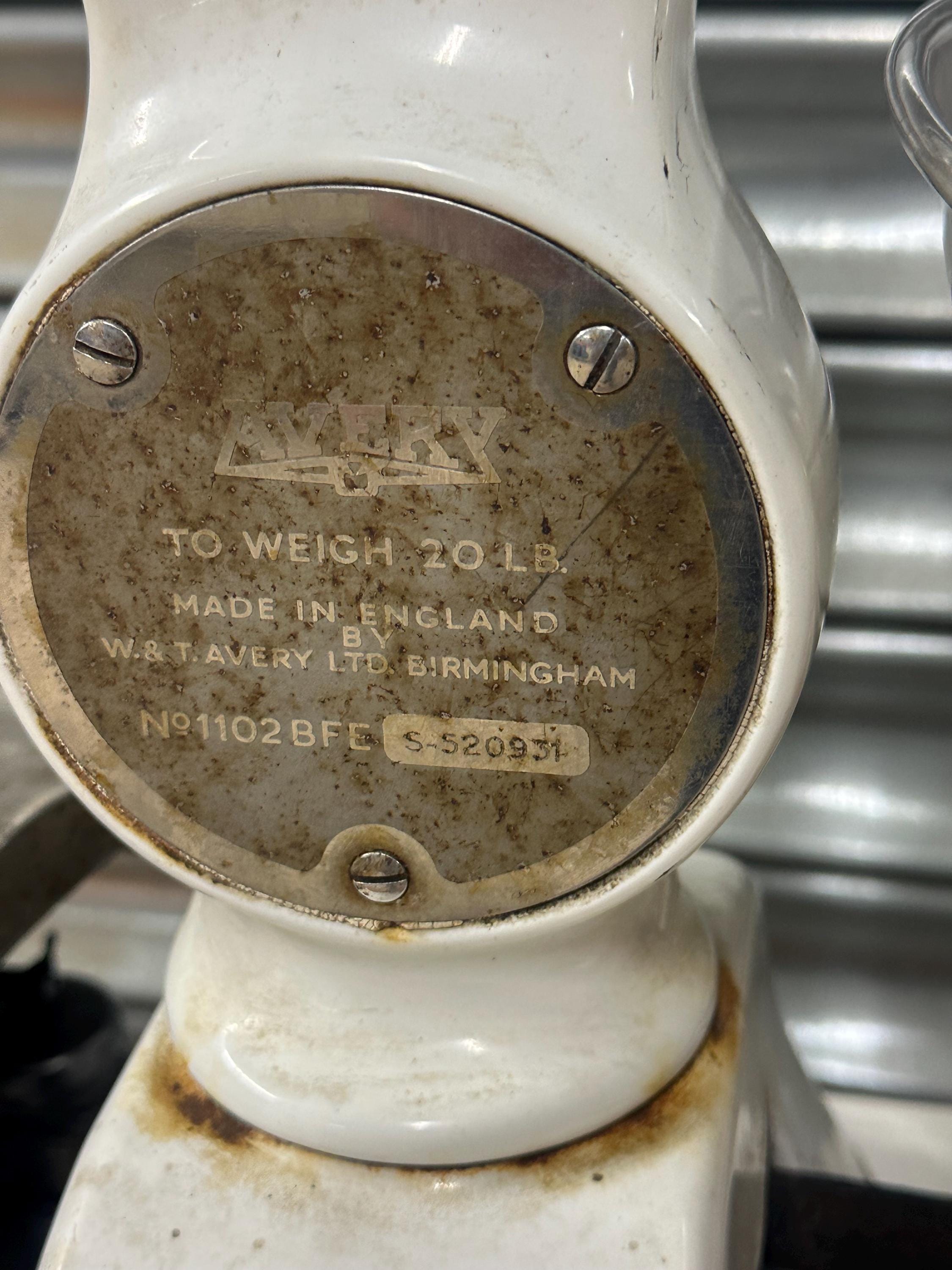 Vintage Avery No. 1102 White Enamel Grocer Shop Weighing Scales upto 20lbs