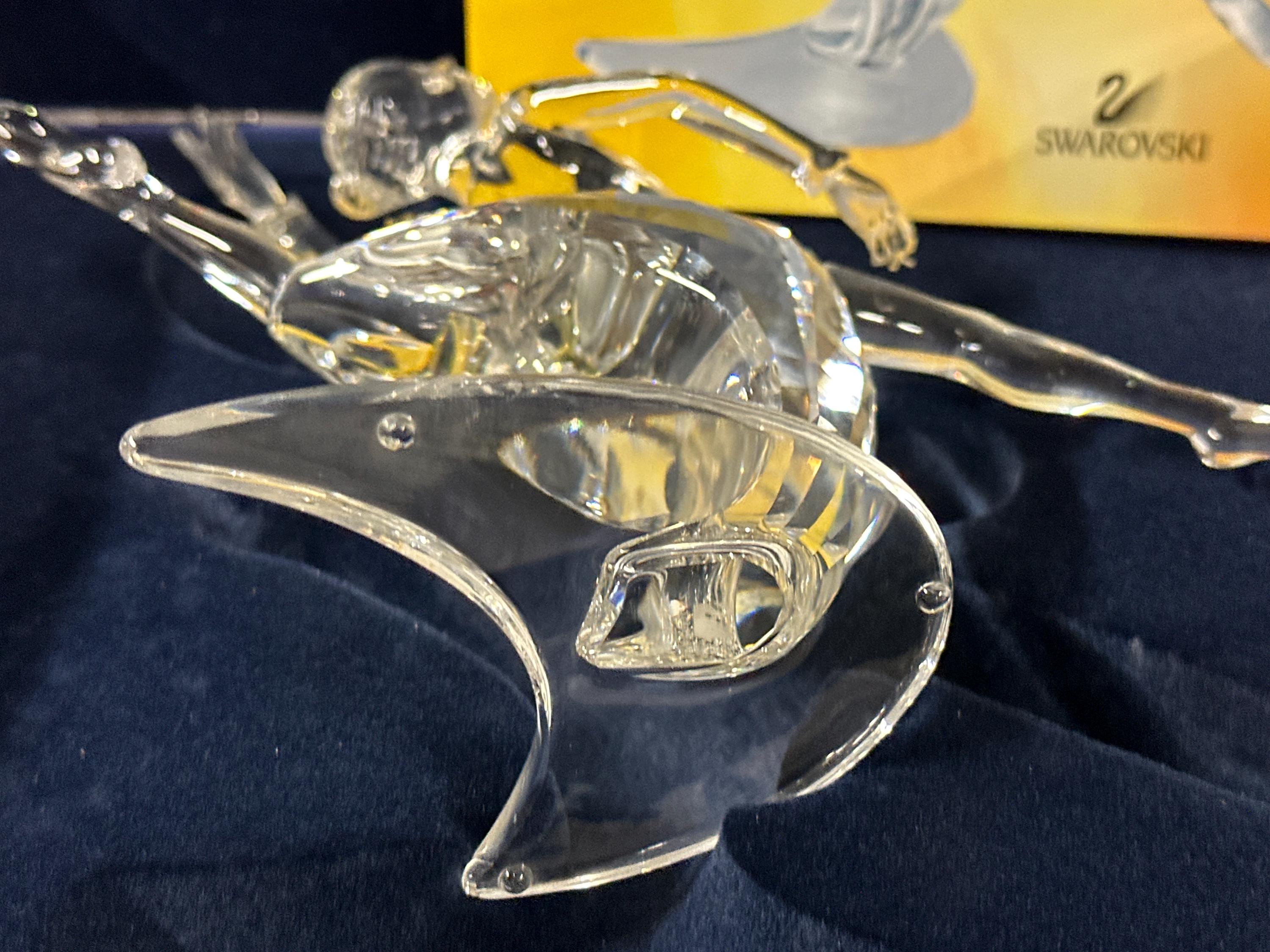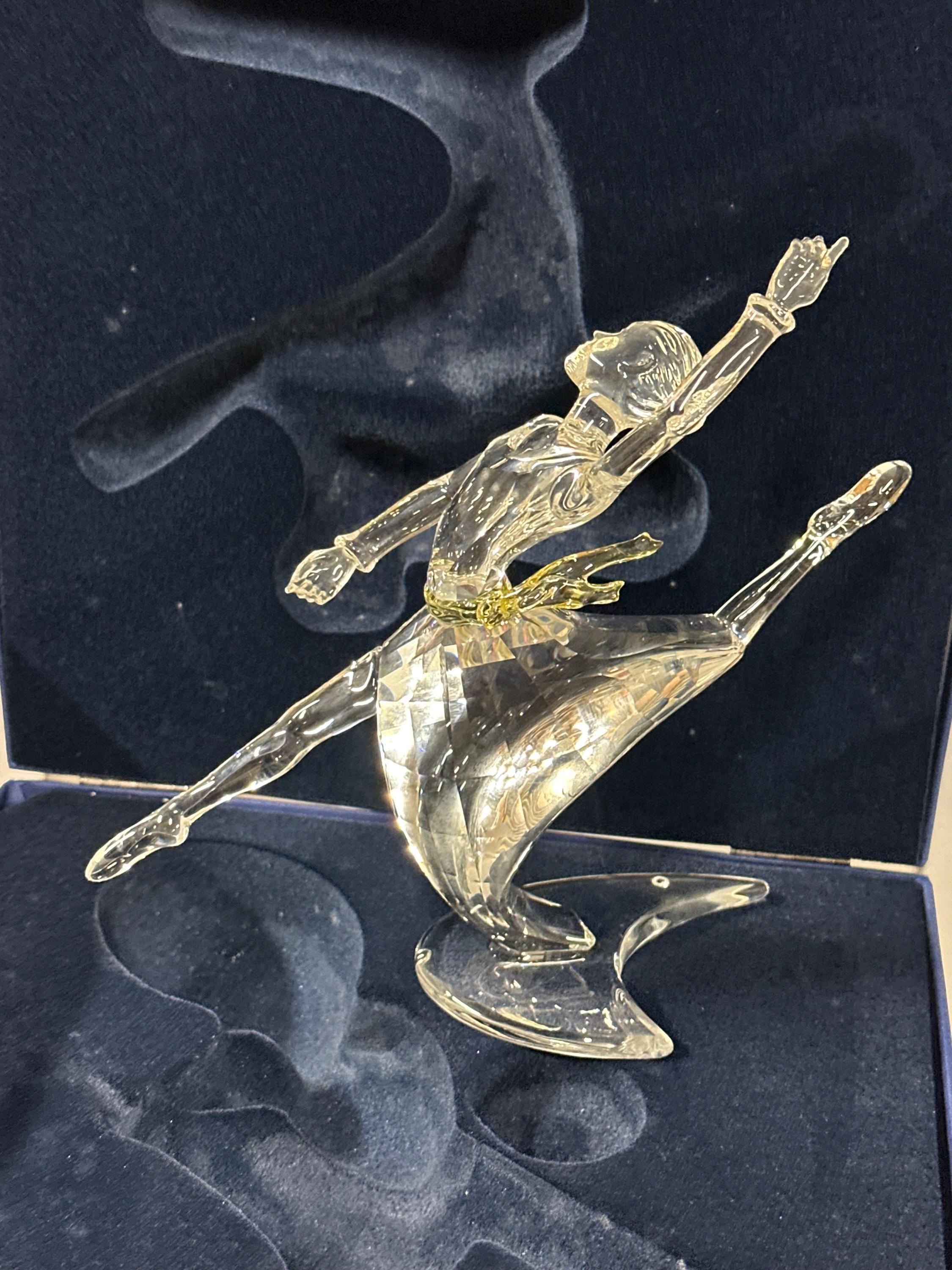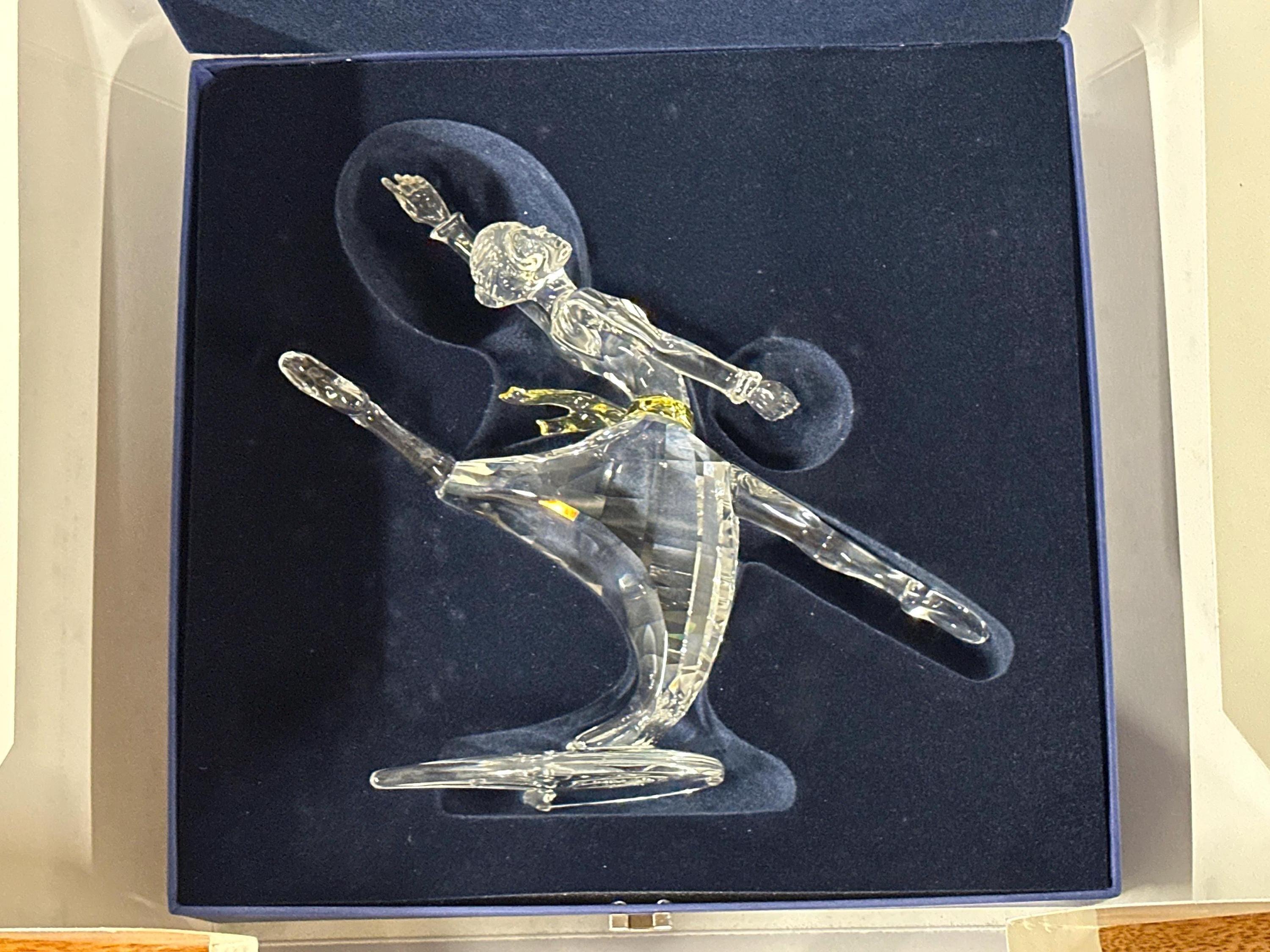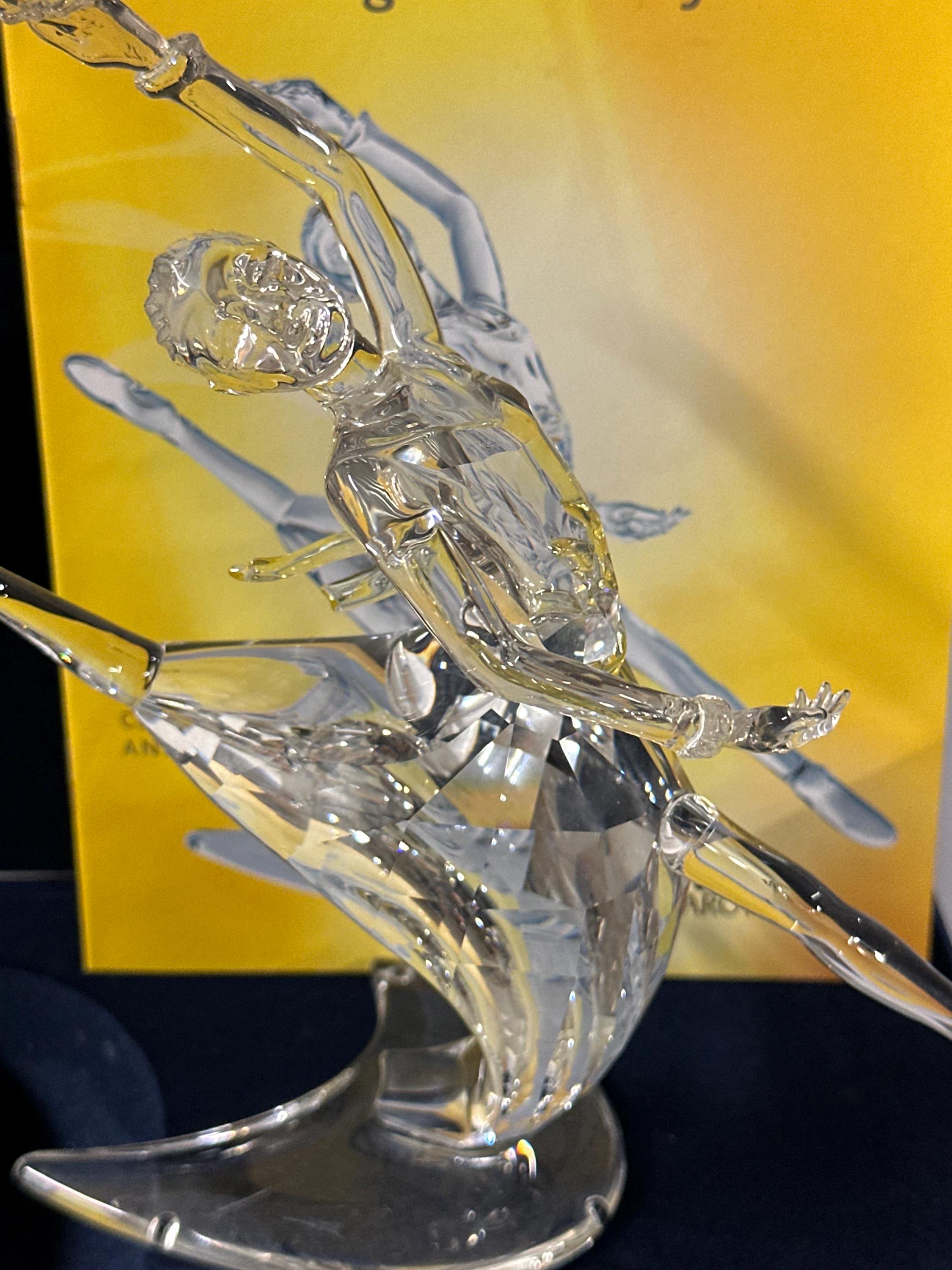 This beautifully crafted piece captures a graceful dancer mid-performance, expertly cut in clear Swarovski crystal with exceptional brilliance and light reflection. The flowing lines and dynamic pose make this one of the most admired designs from the series.