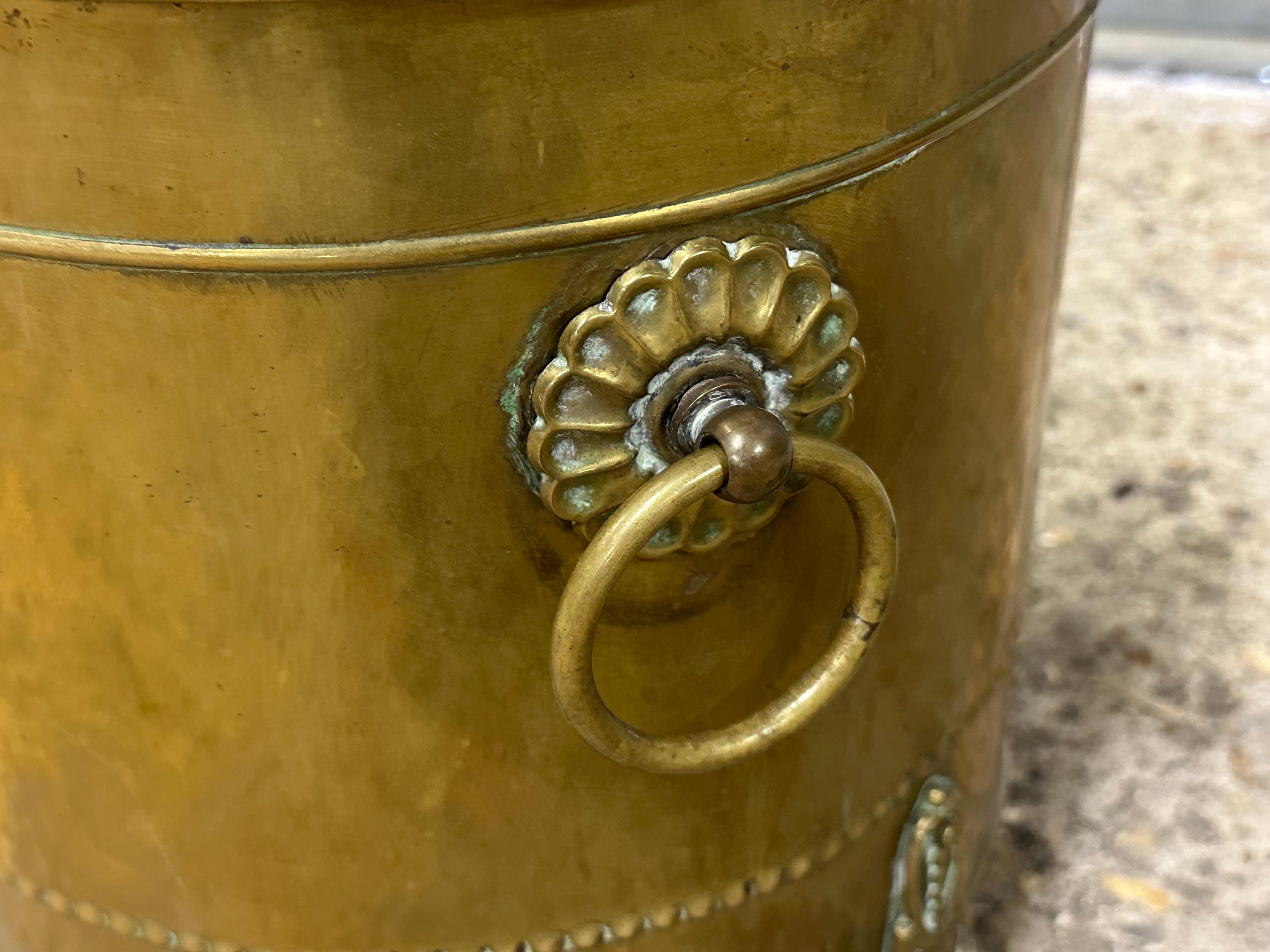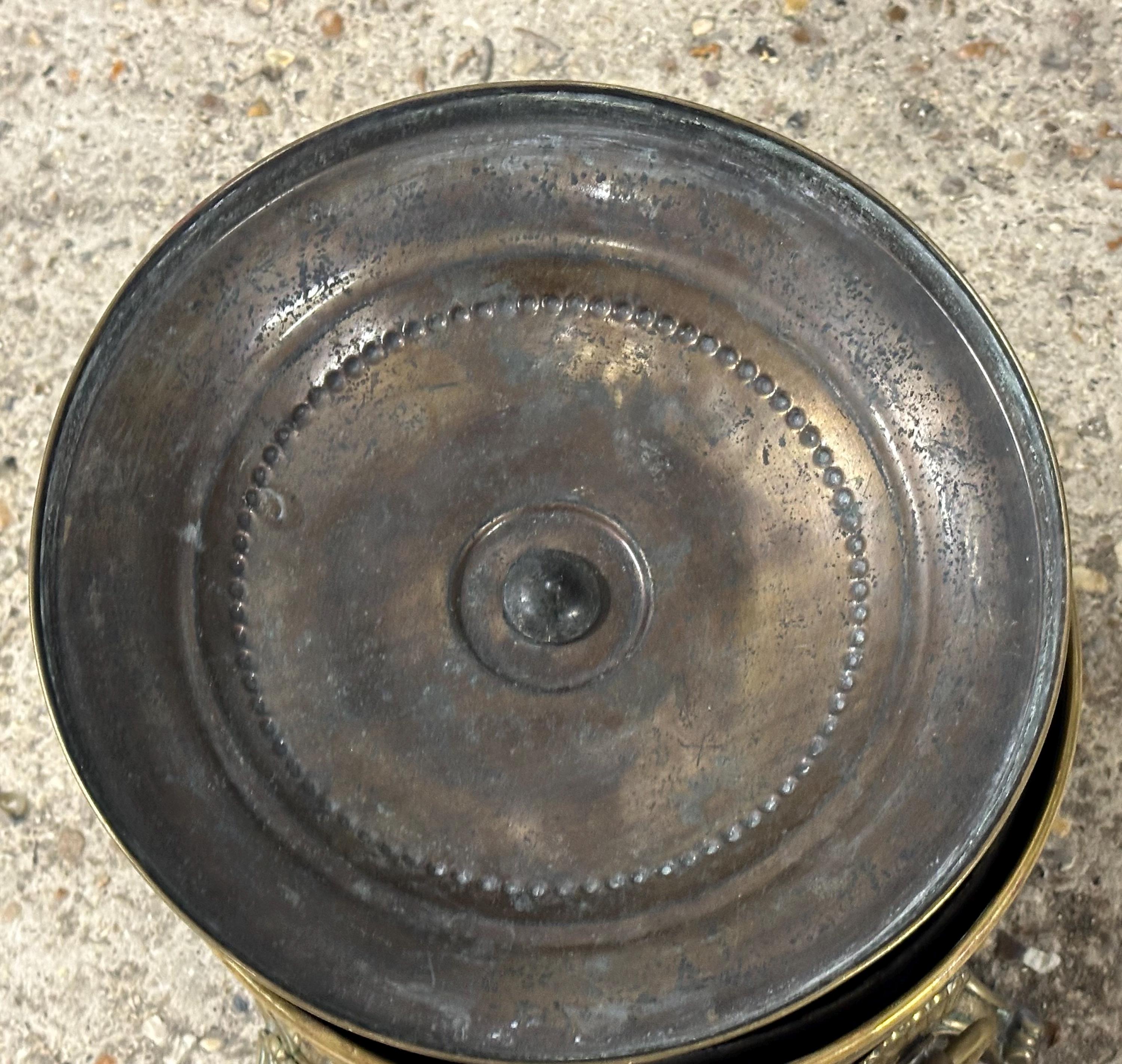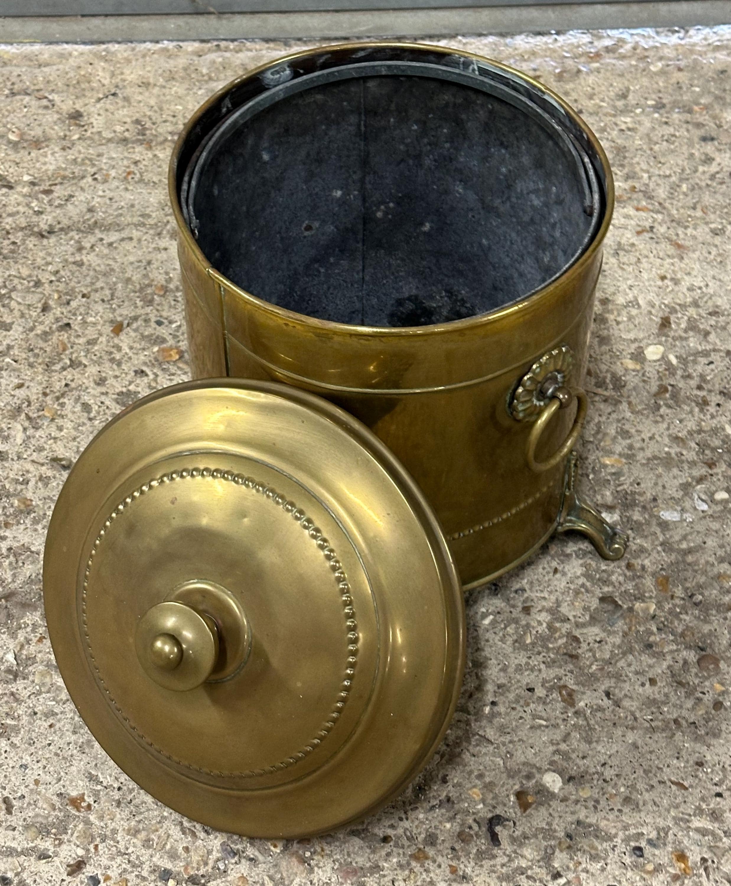 The removable inner liner would have originally been used to hold coal, keeping the outer brass clean – a highly desirable and practical feature.