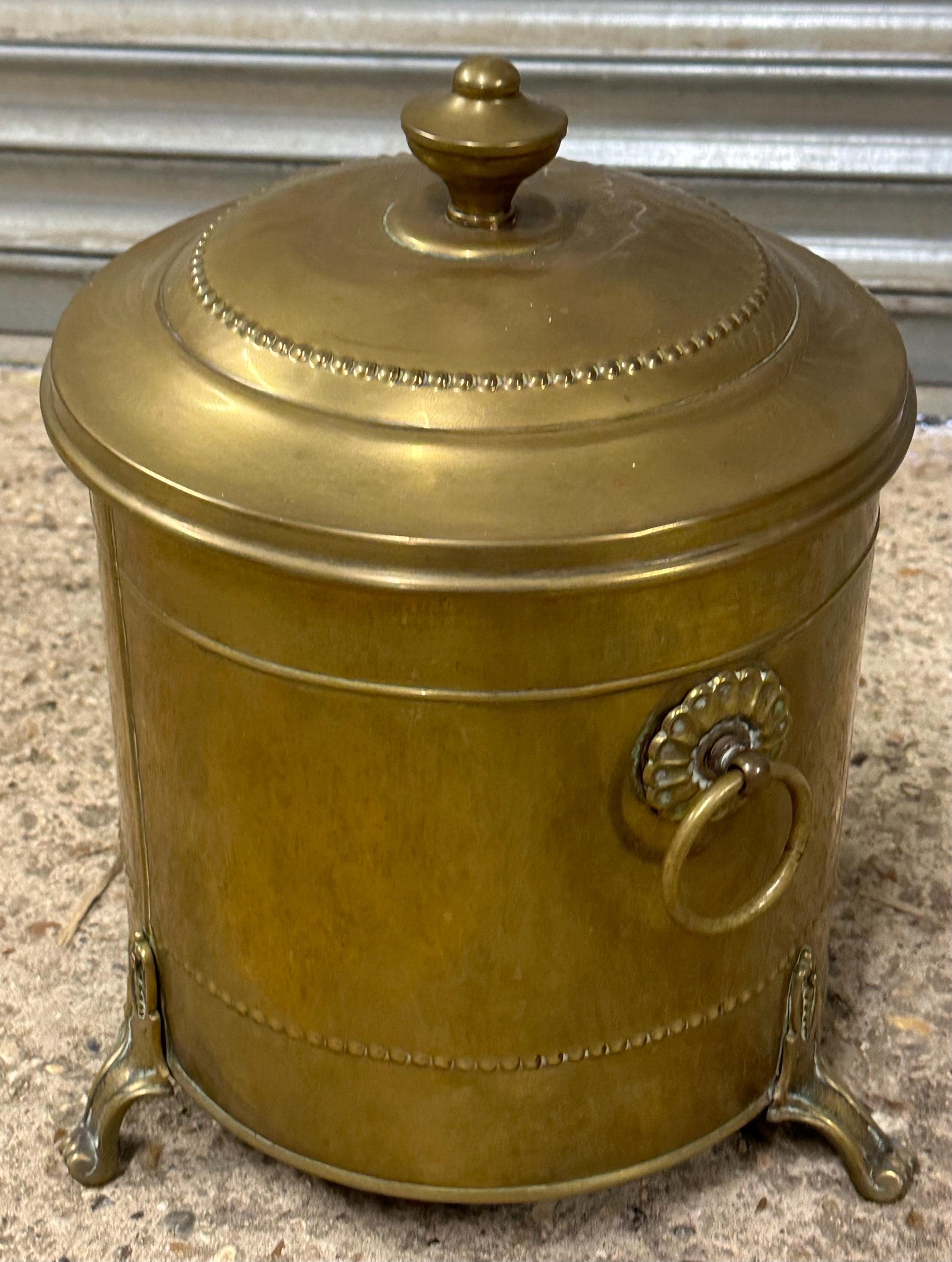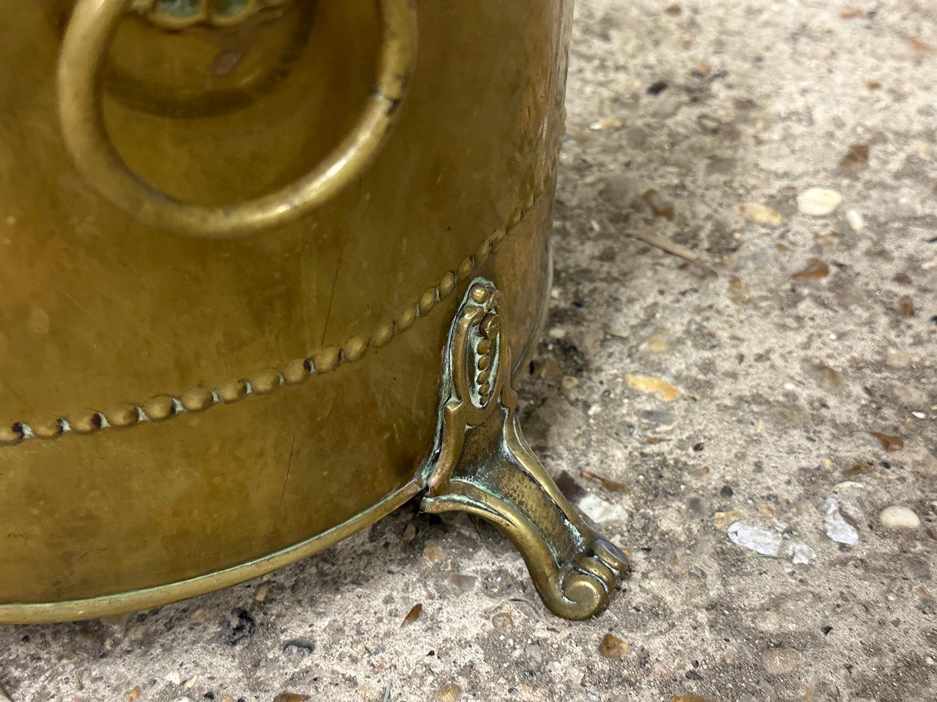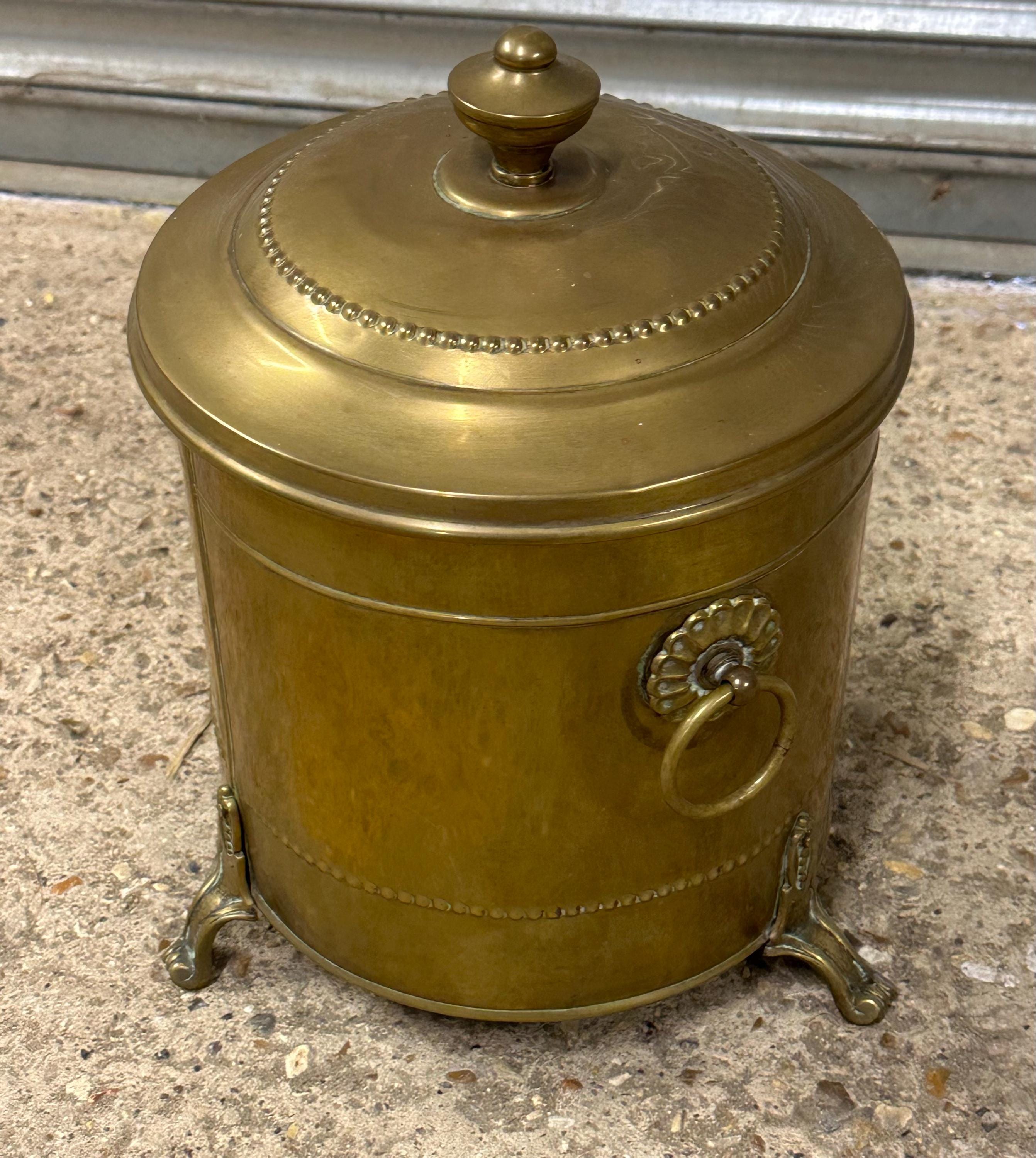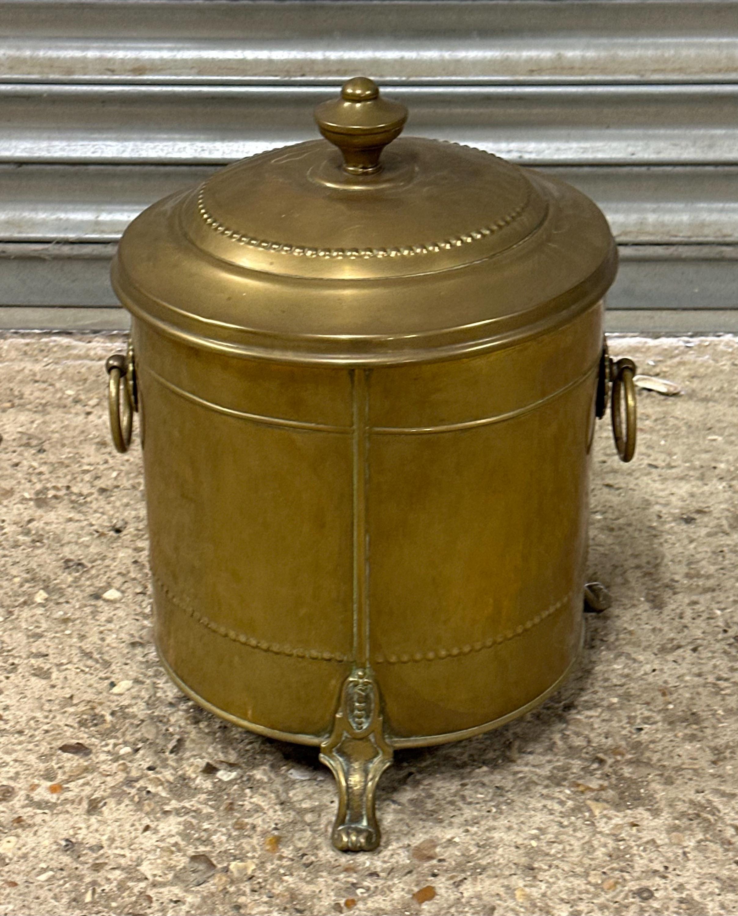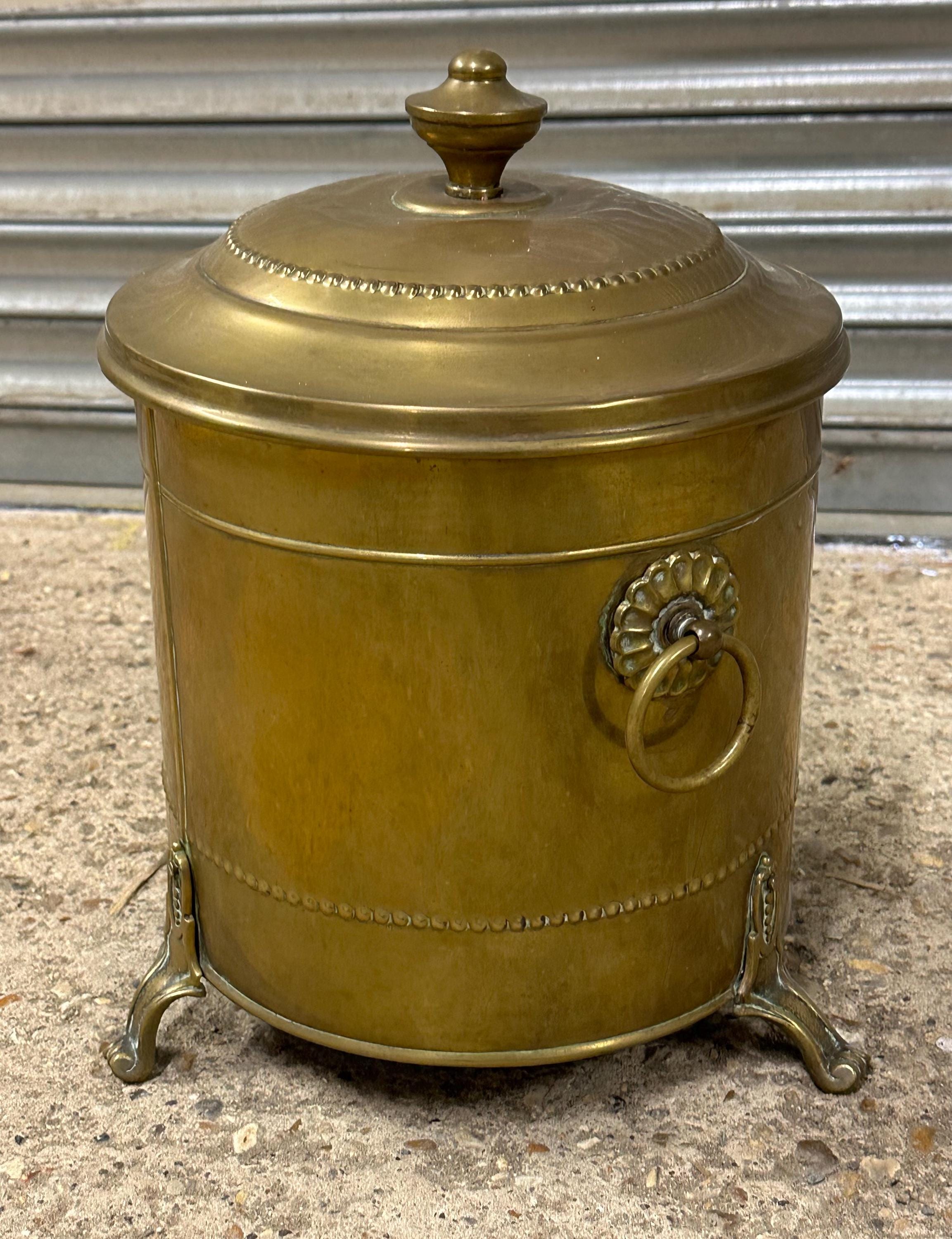 Antique Brass Coal Scuttle / Log Bin with Liner & Lid – Victorian, On Lion Paw Feet