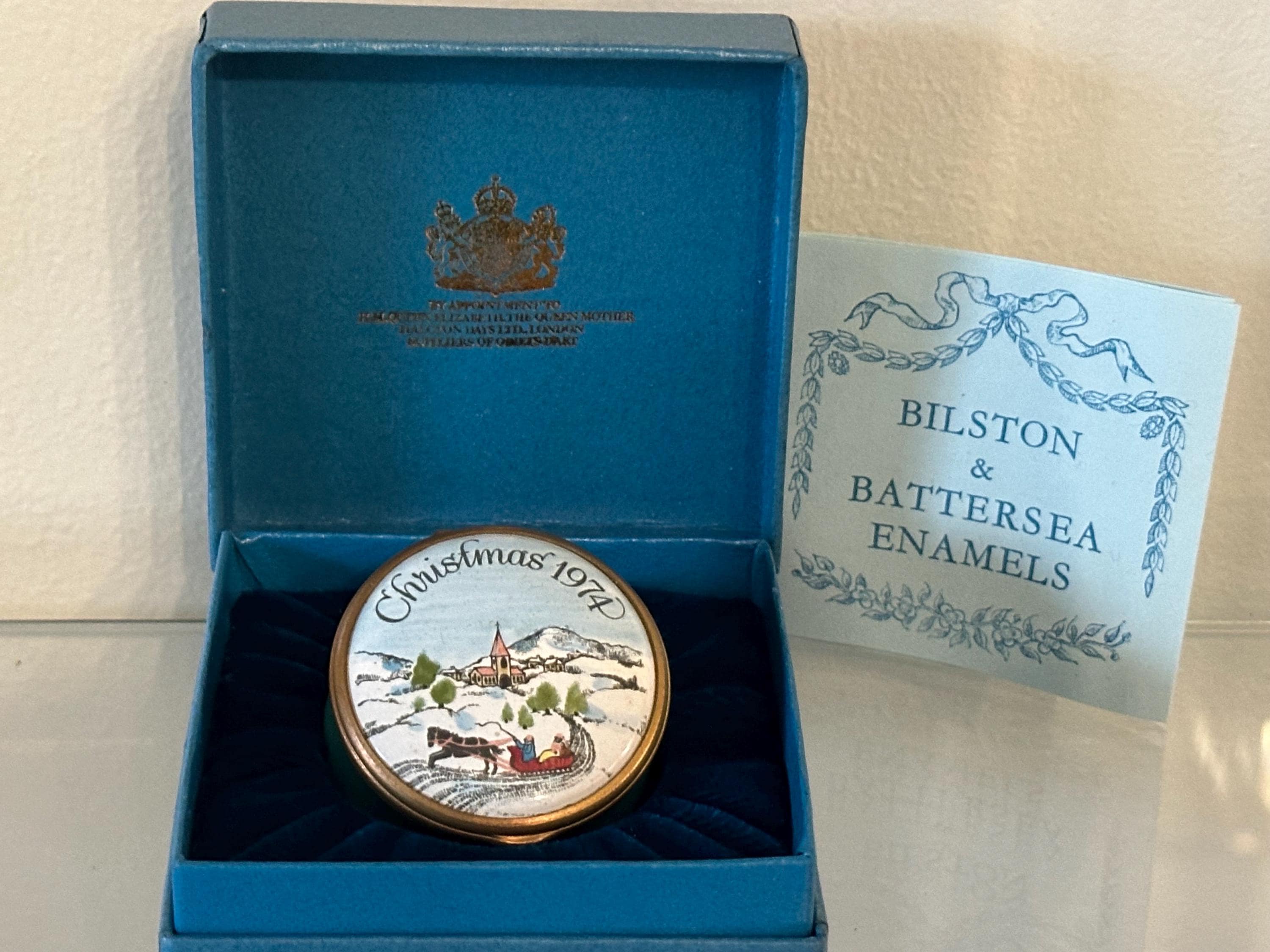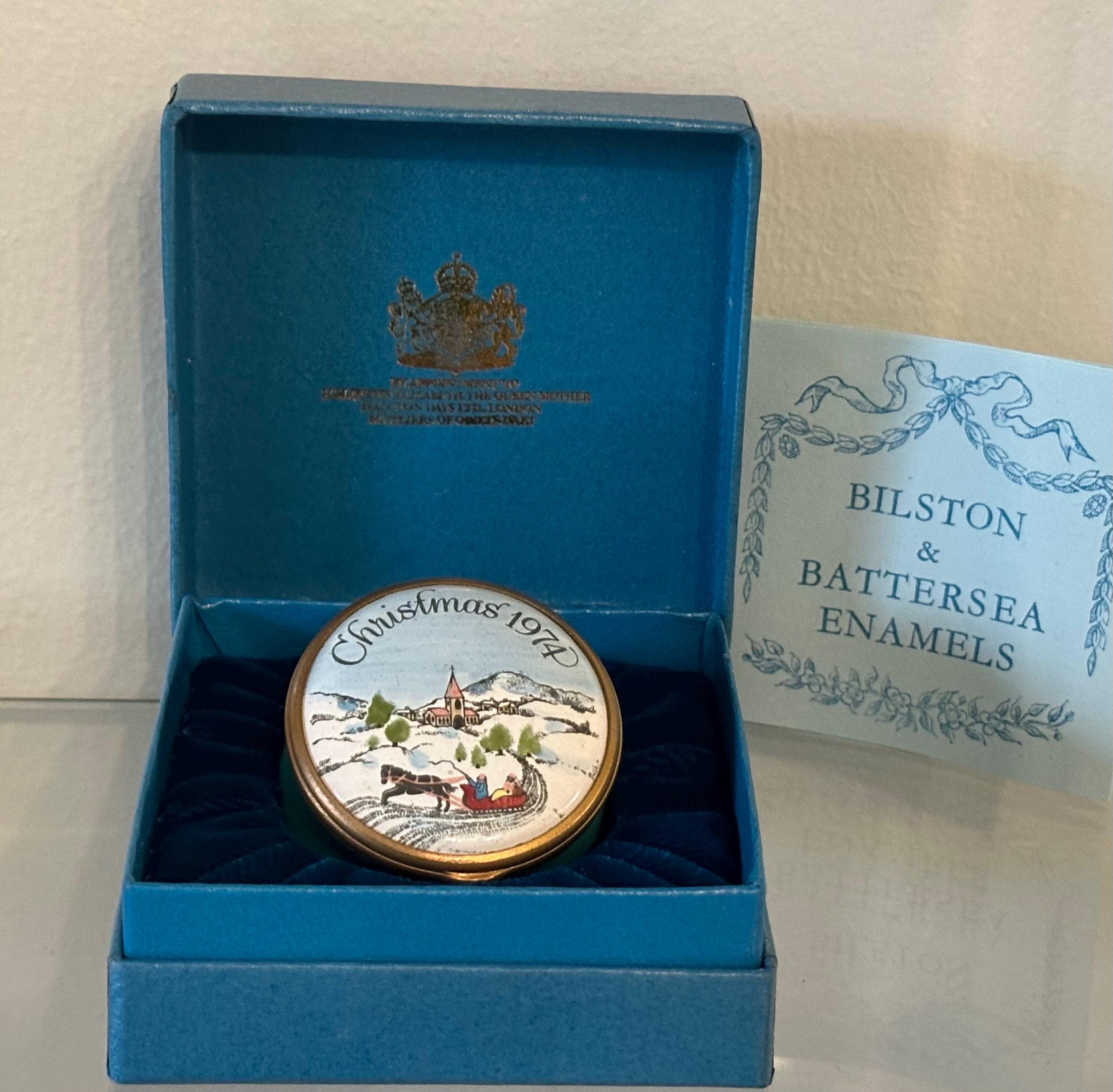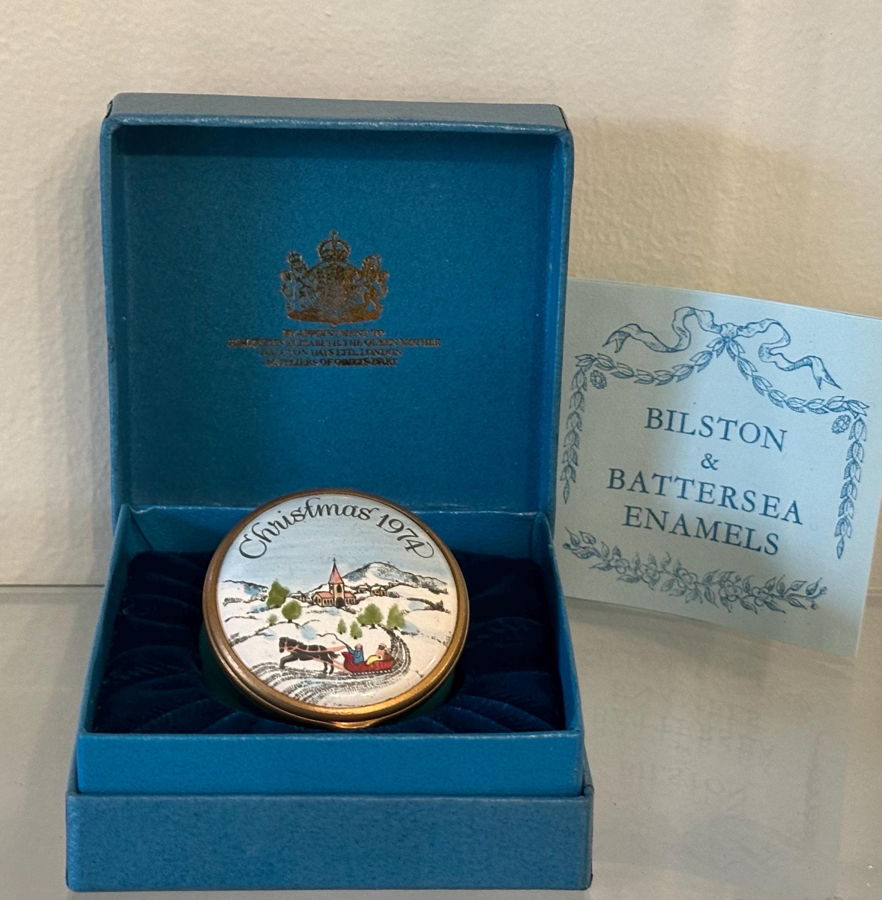 Rare Bilston and Battersea Enamels Halycon Days Christmas 1974 Trinket Box