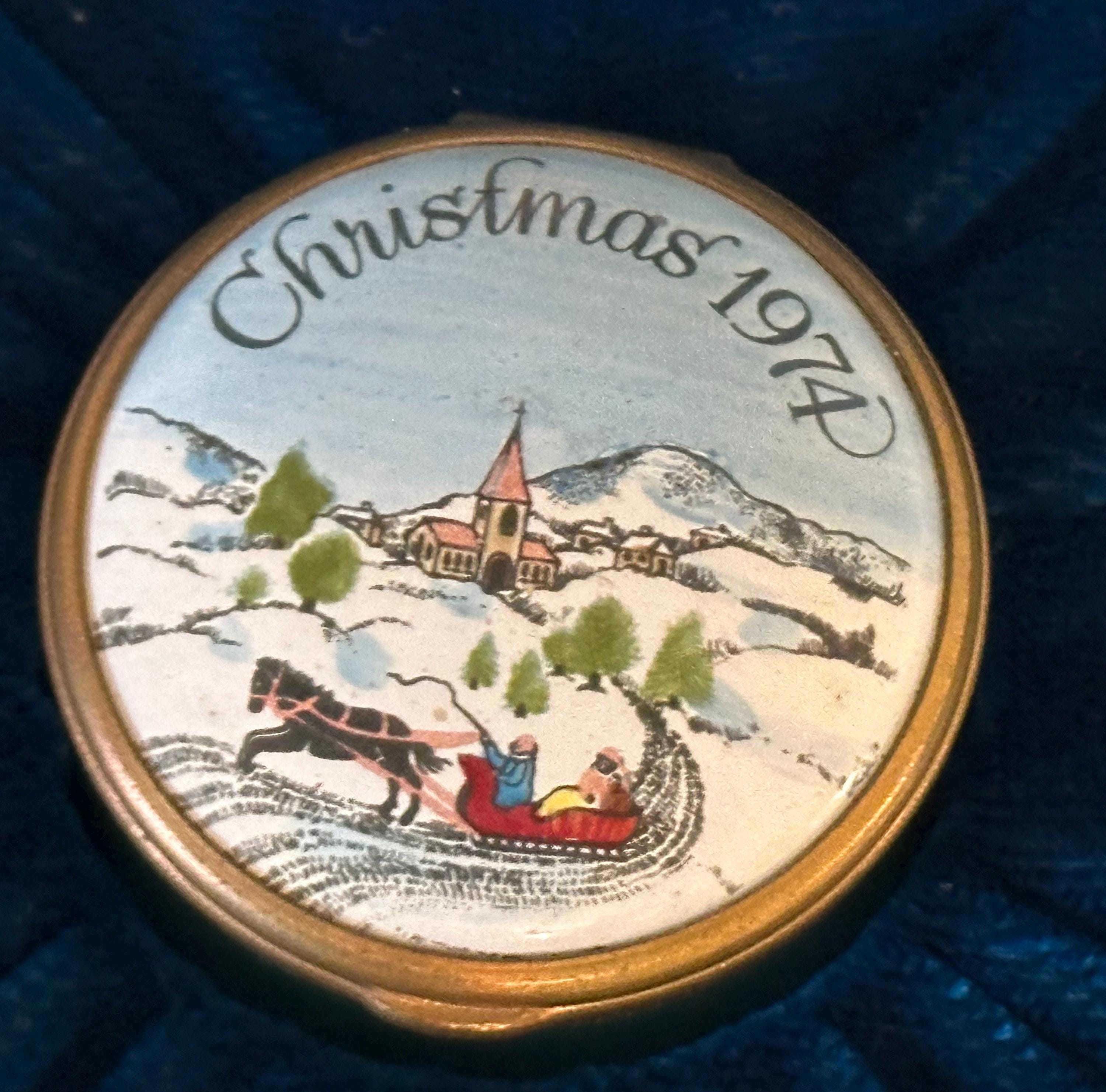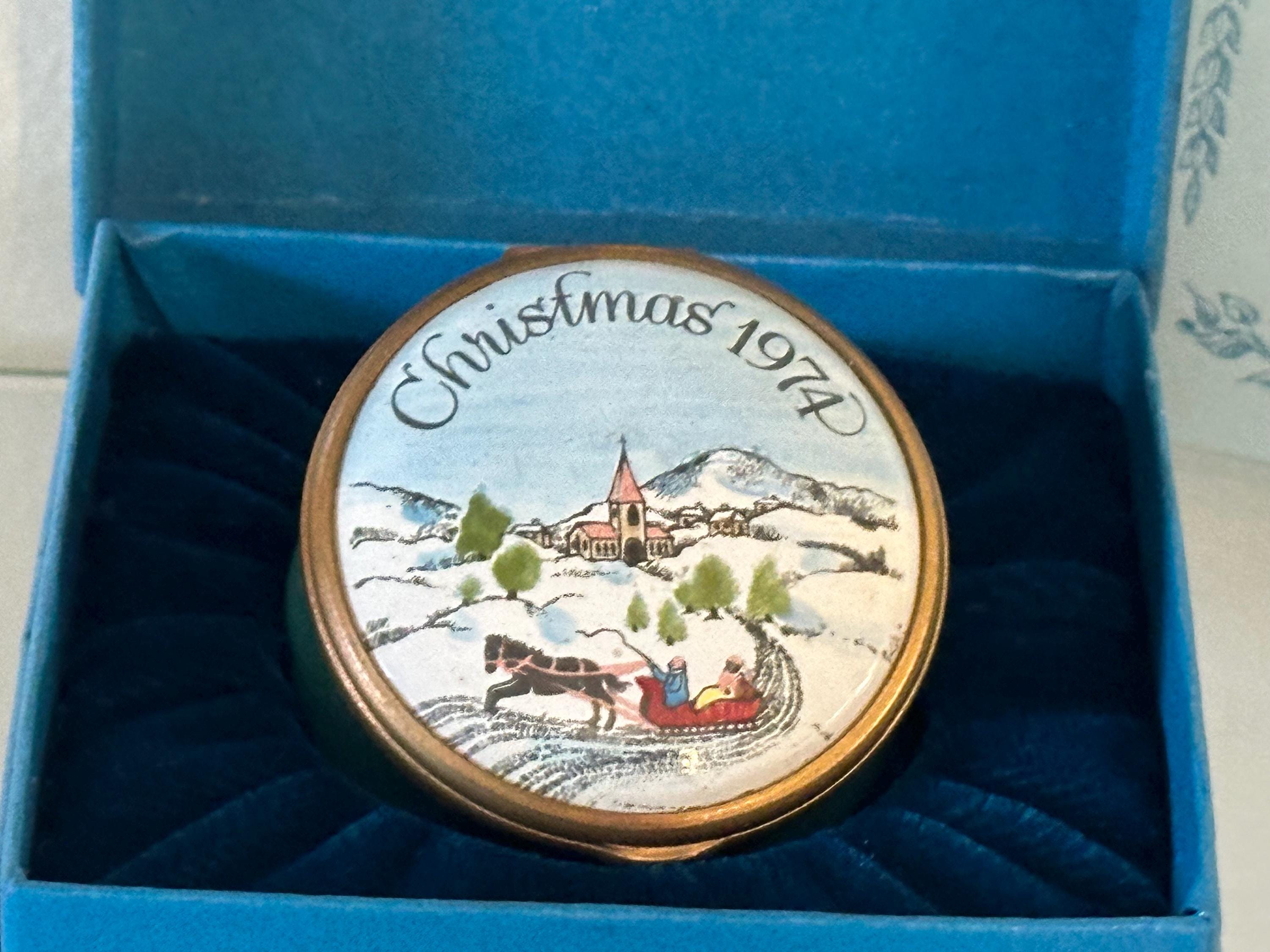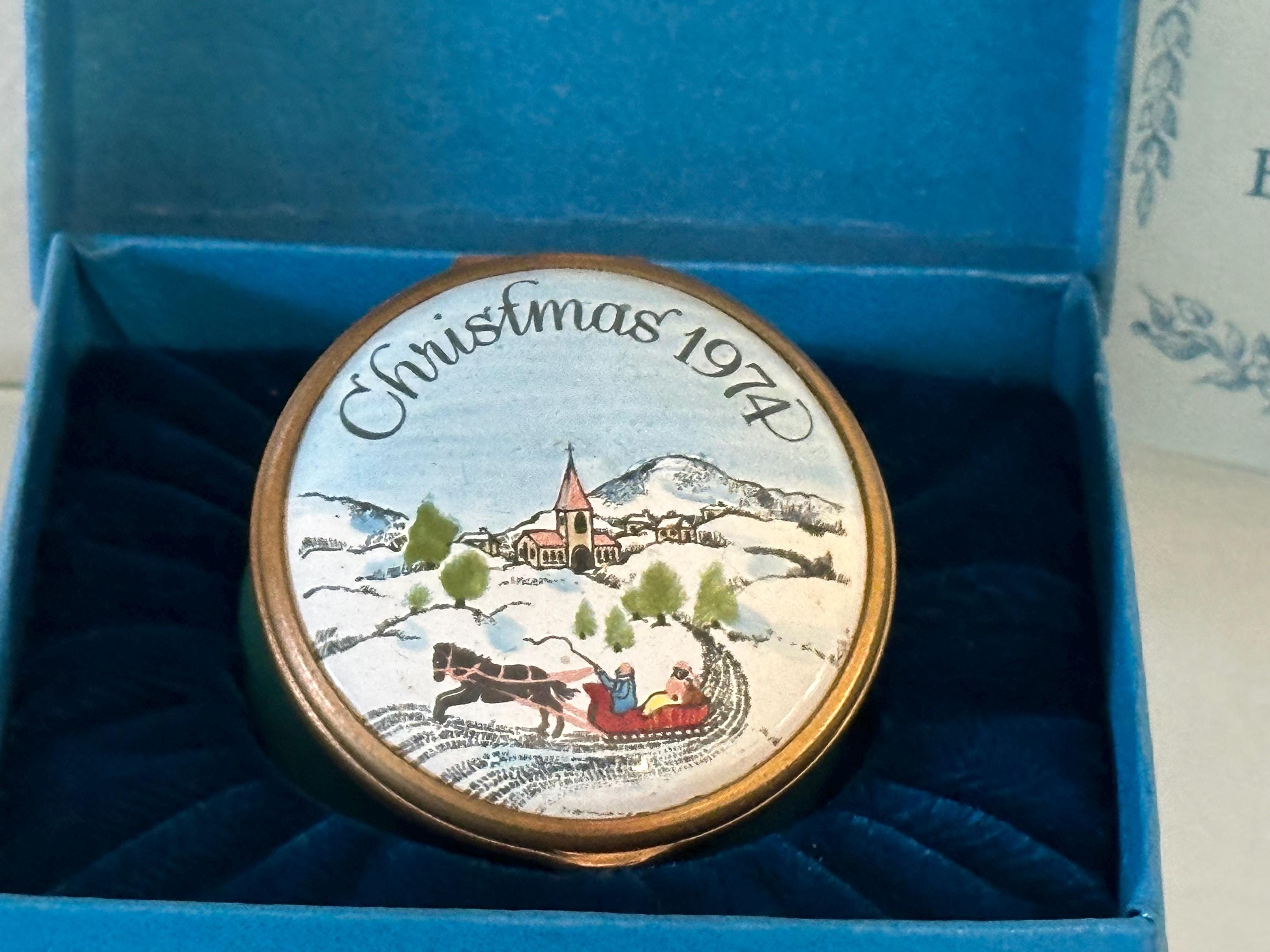Rare Bilston and Battersea Enamels Halycon Days Christmas 1974 Trinket Box