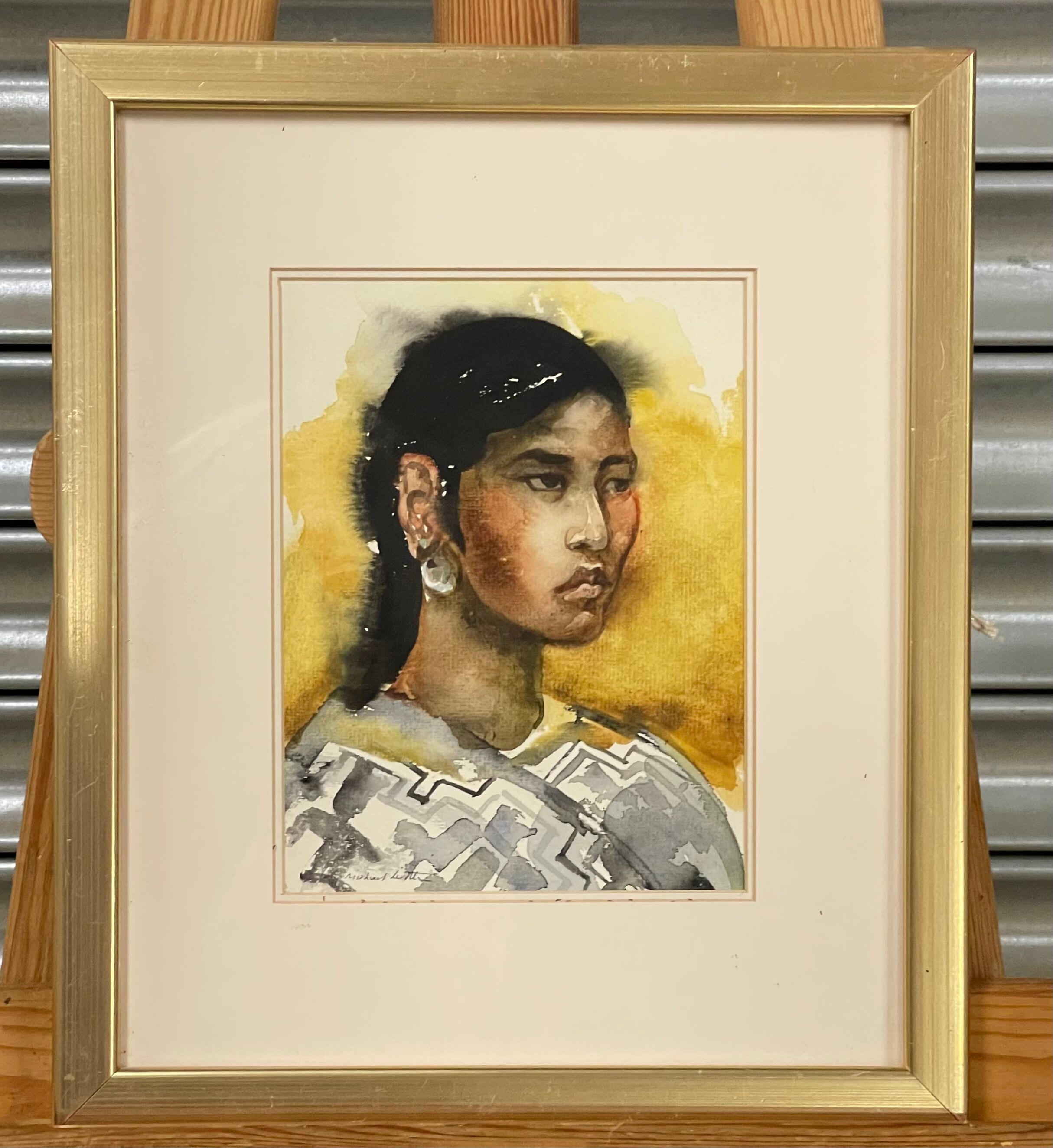 Wonderful Framed and Glazed Watercolour Portrait Titled Indian Girl By Michael Little