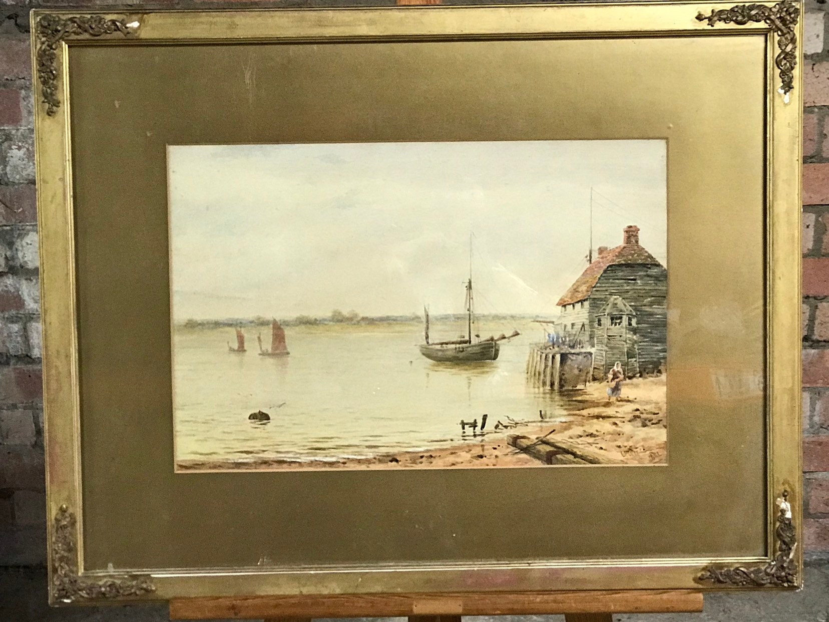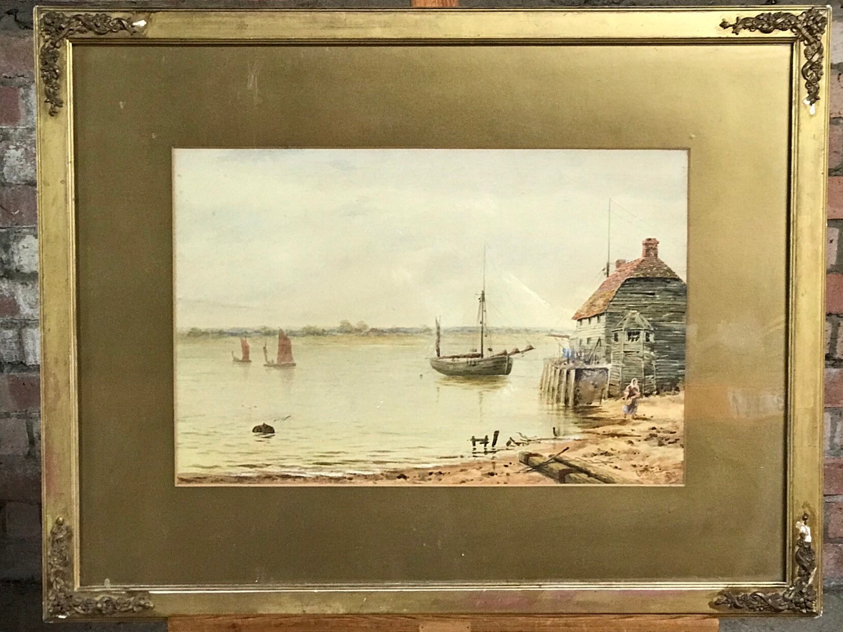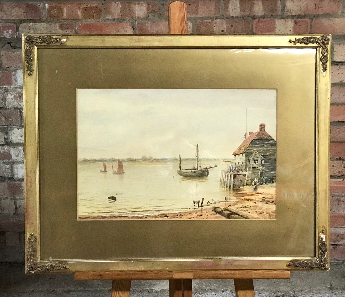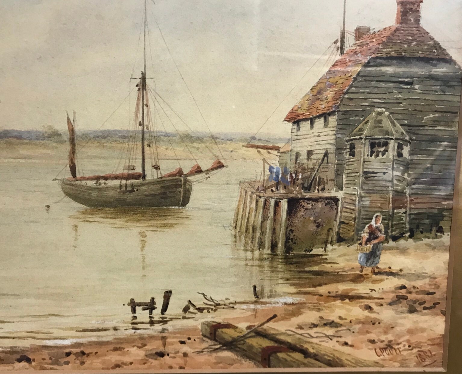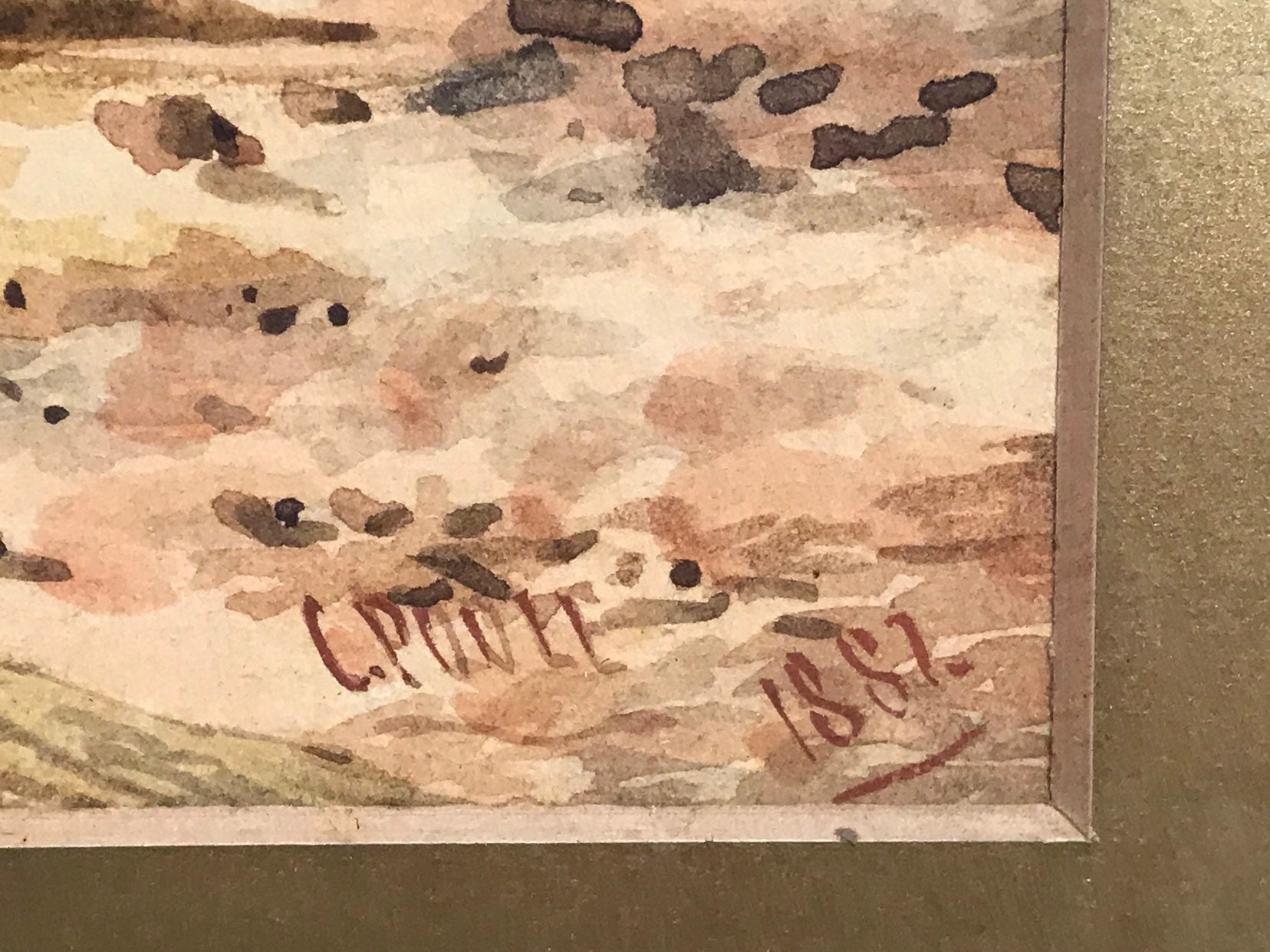 Original 19th Century Watercolour By L Poult Dated 1881 Habour Scene