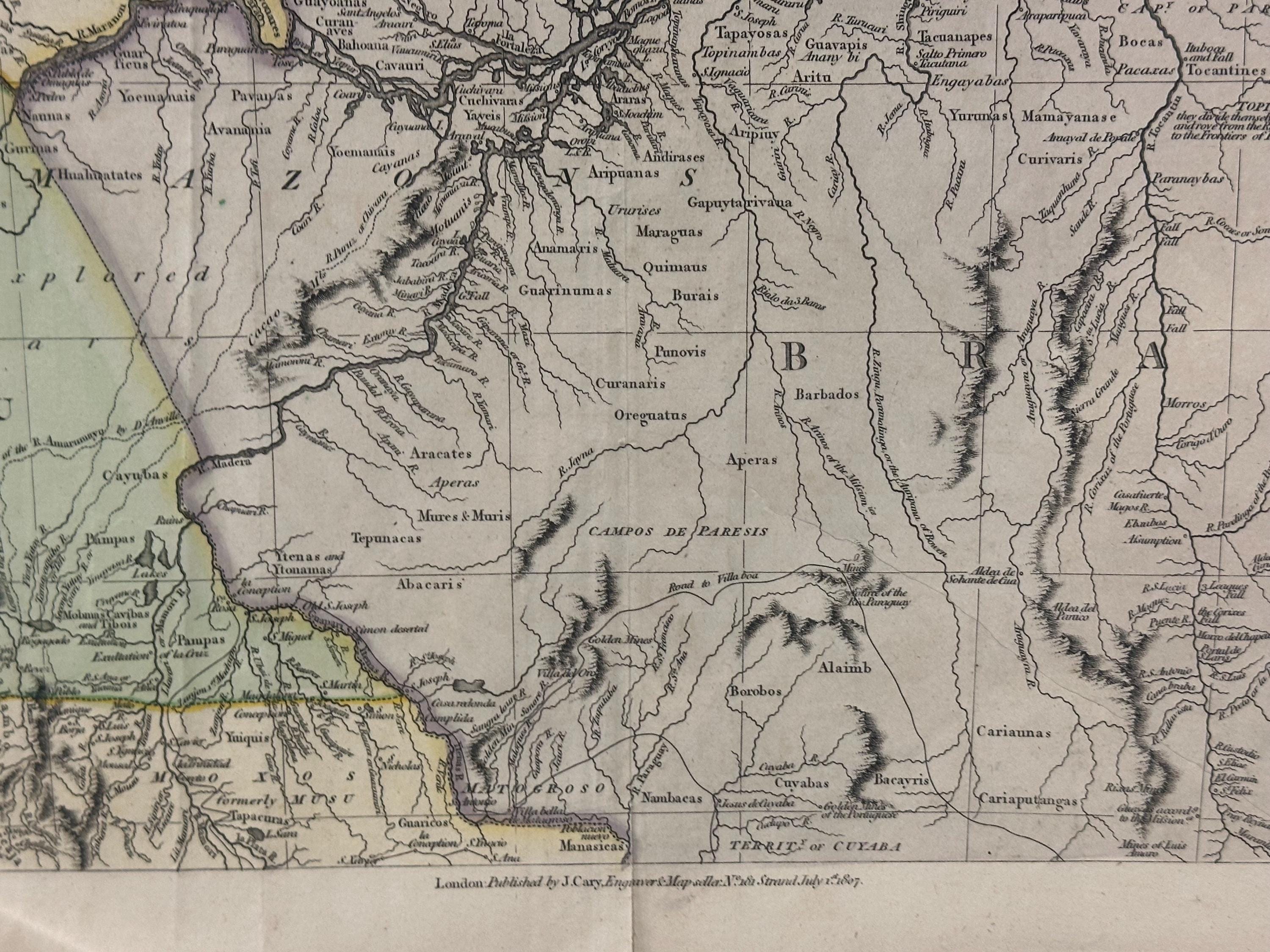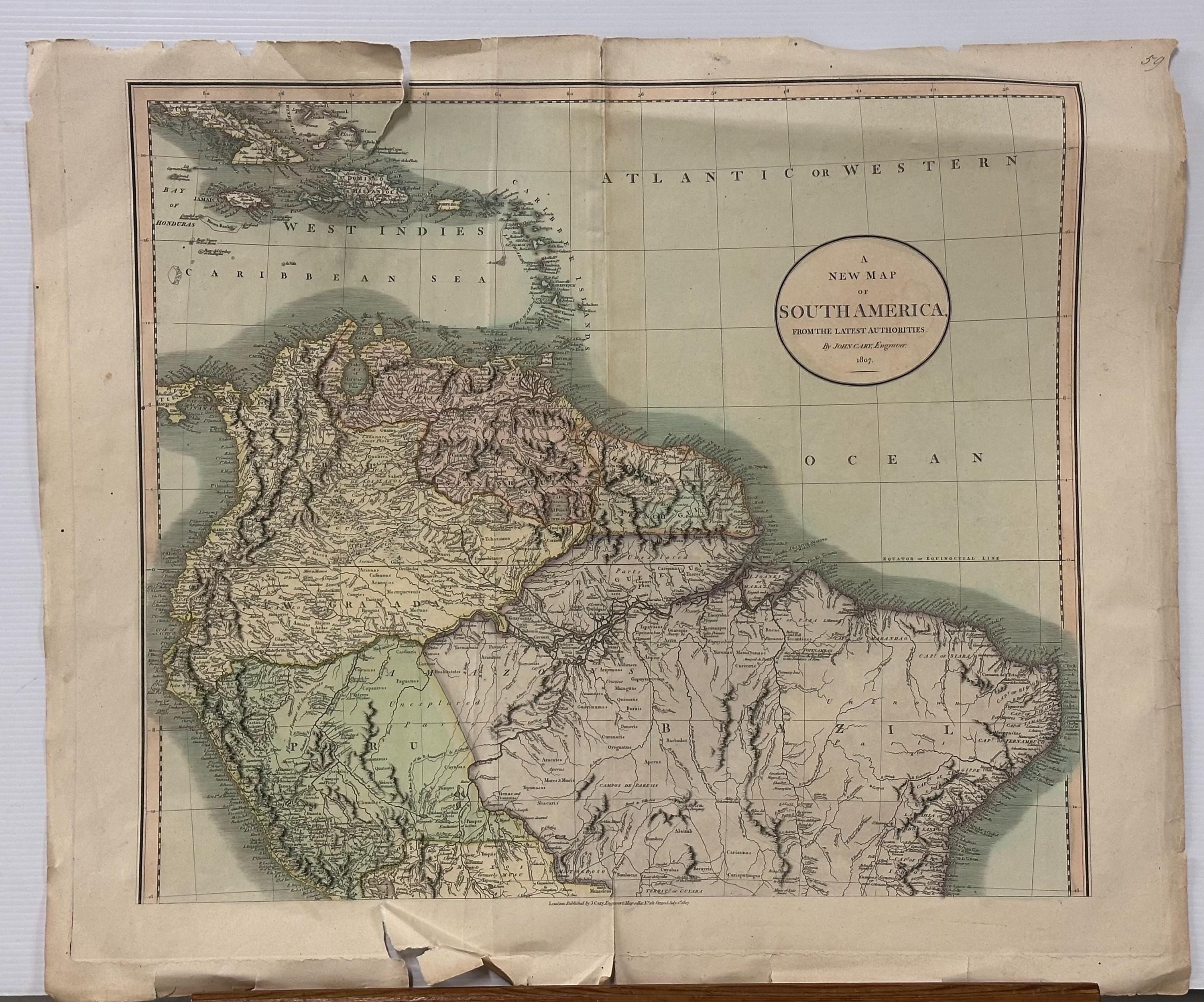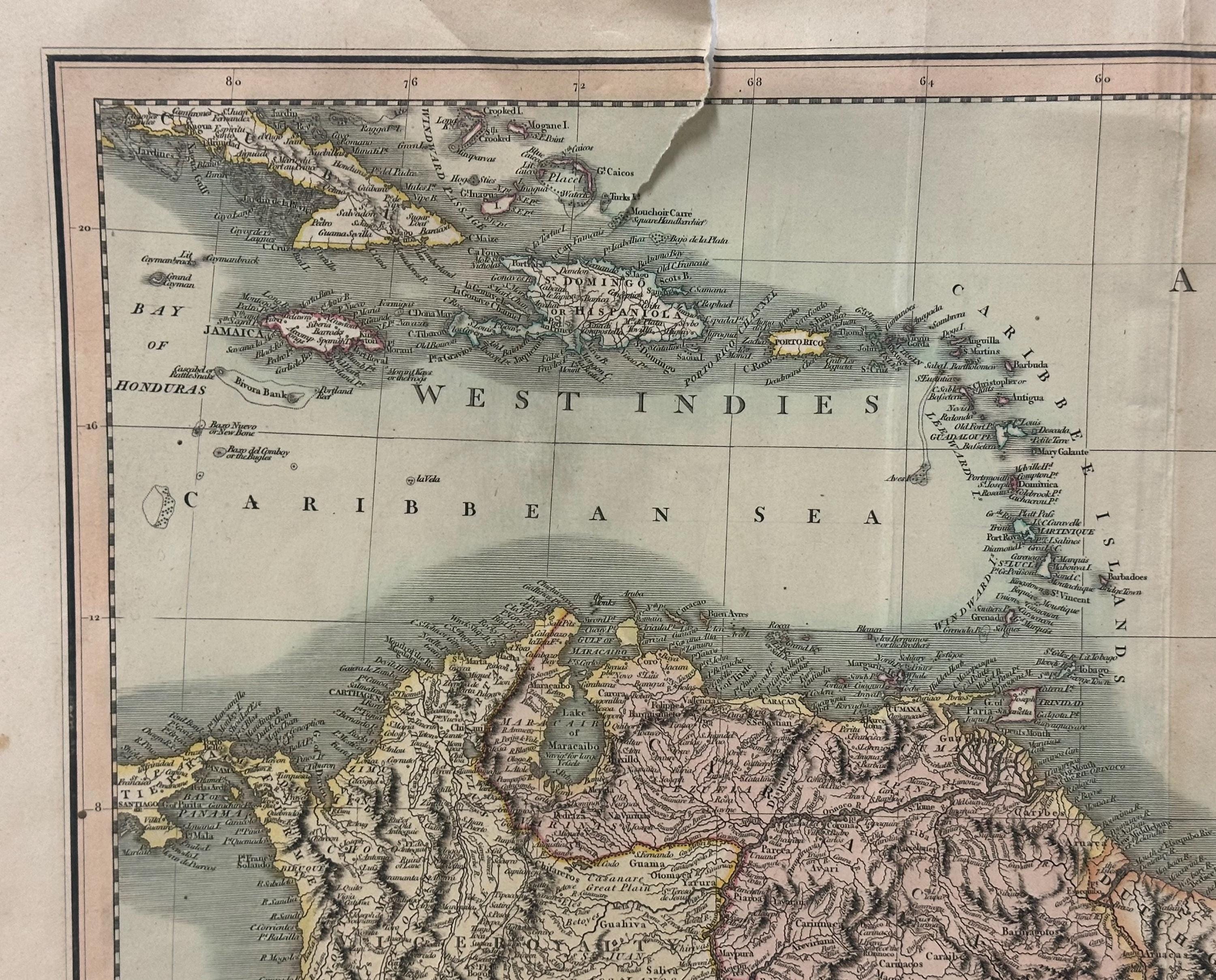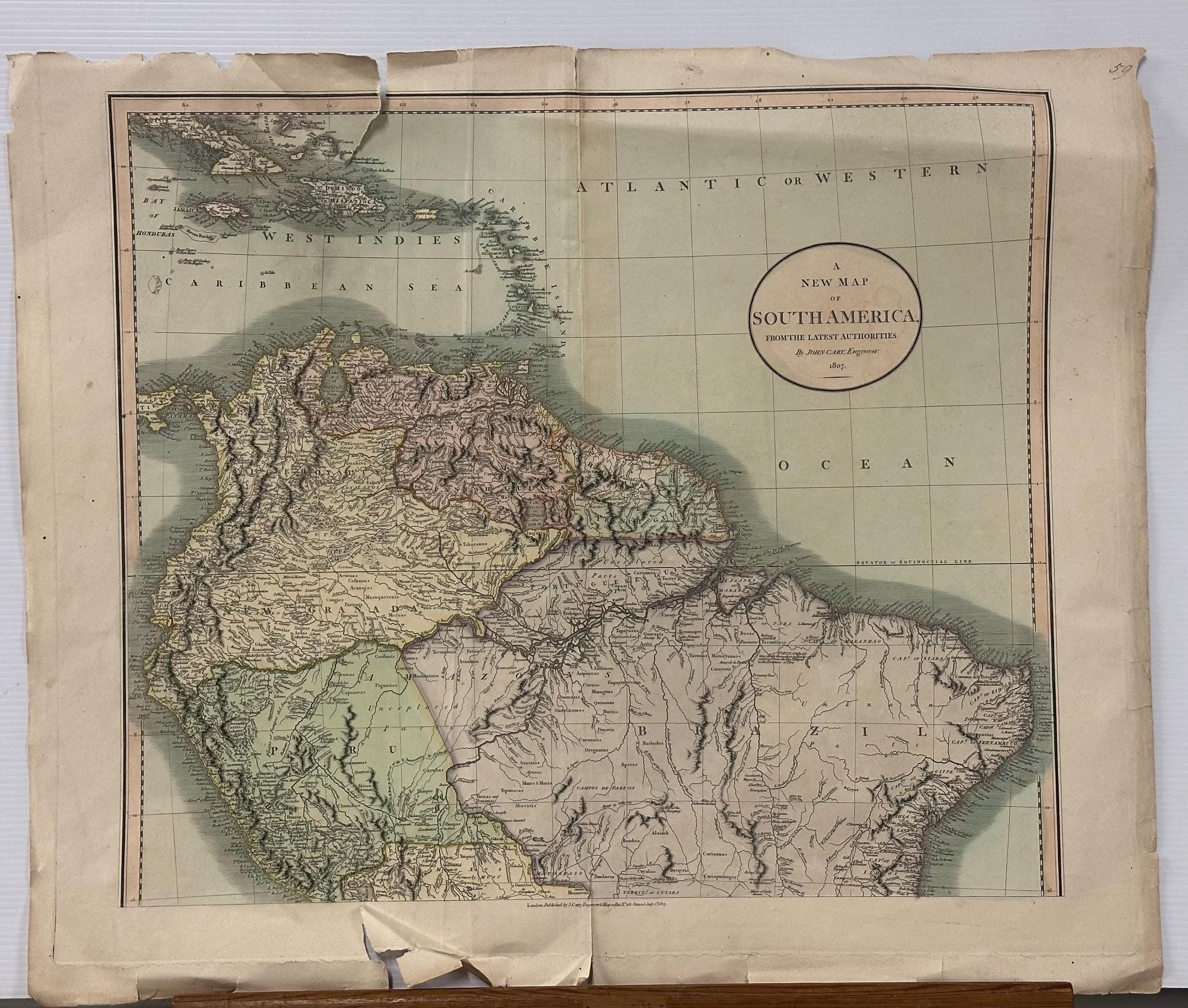 Rare South America Map Of America (north) By John Cary Engraver 1807