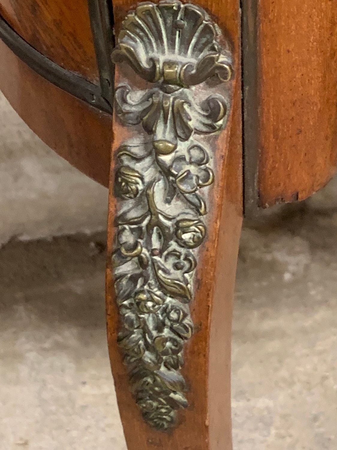 Antique French Kidney Shaped Table With Ornate Brass Mounts & Marble Top