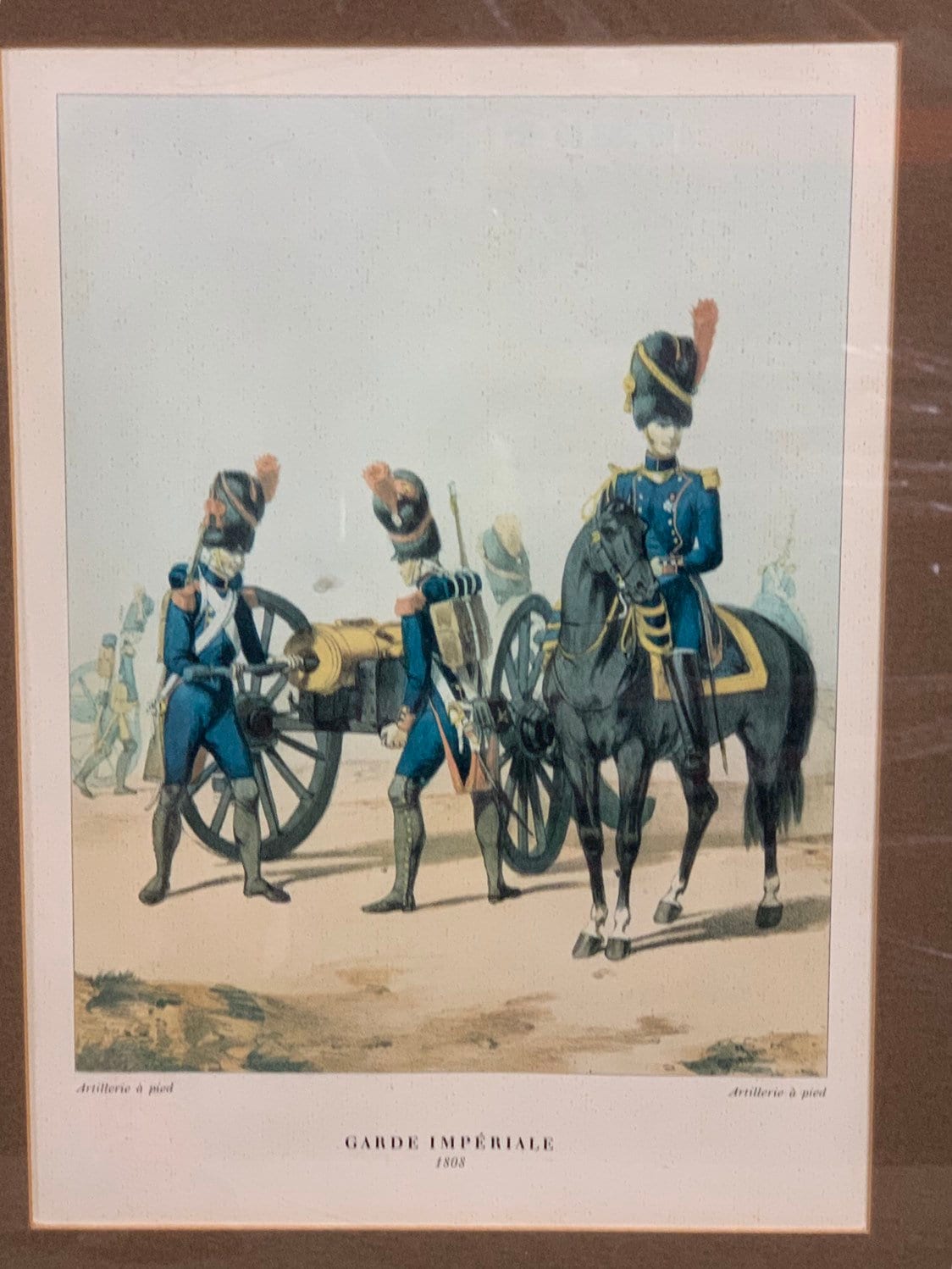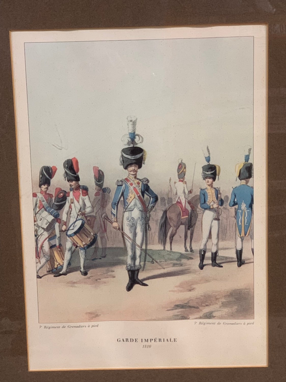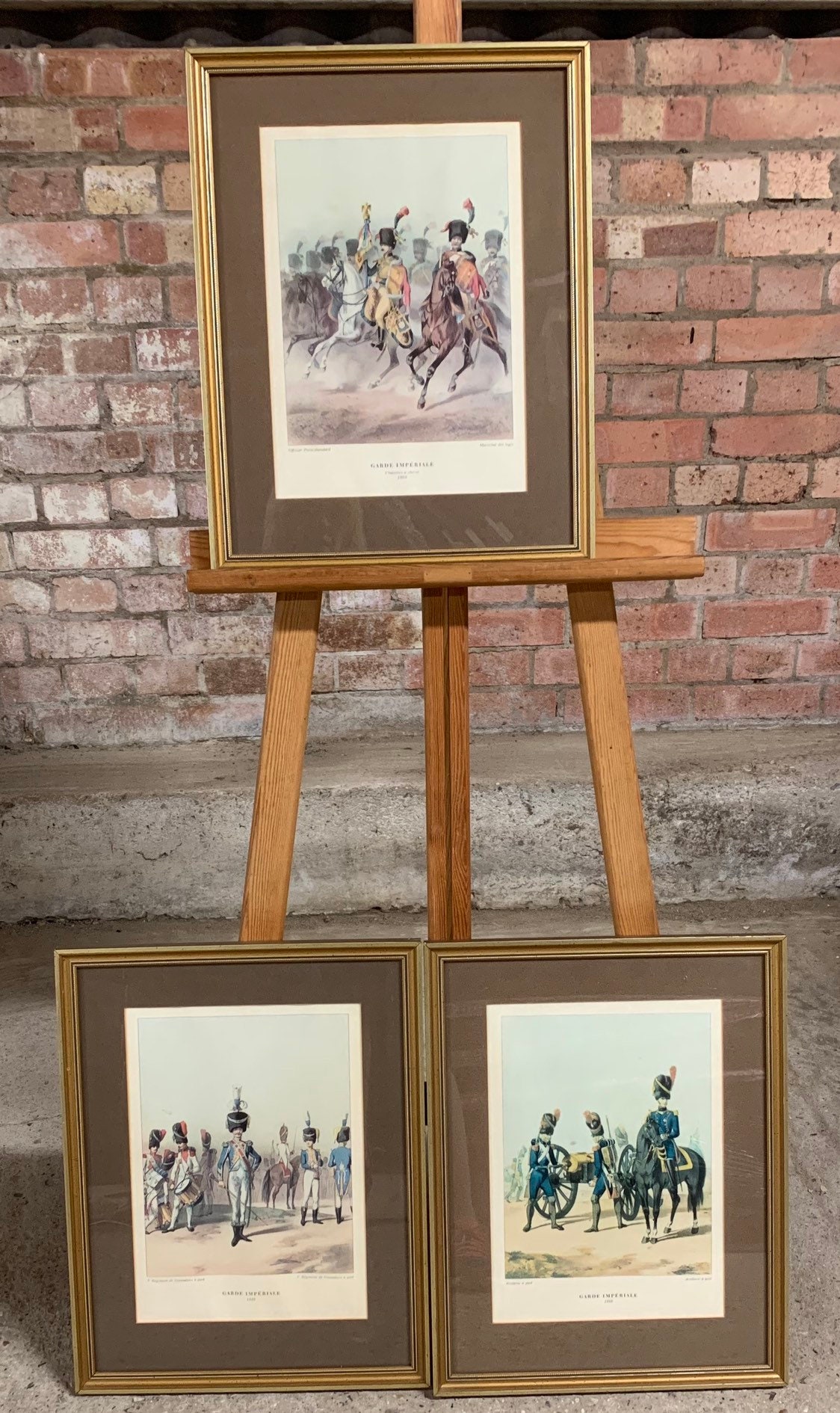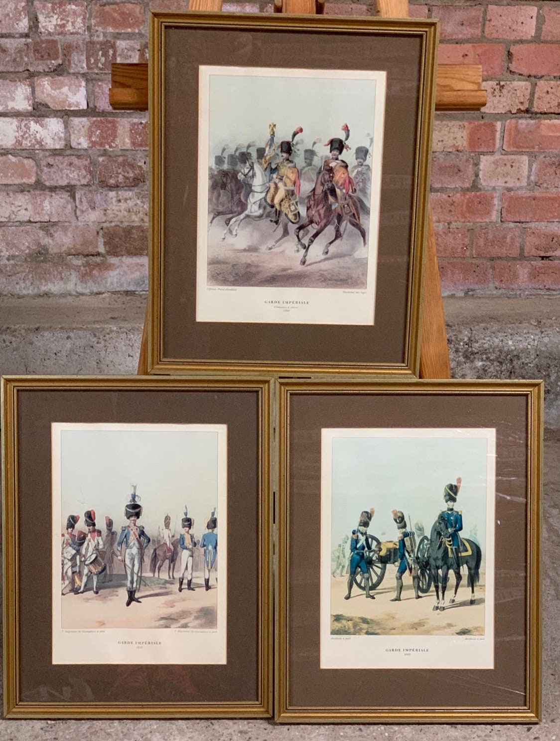 Three Antique 19th Century Framed and Glazed Coloured Prints Of French Army Officers