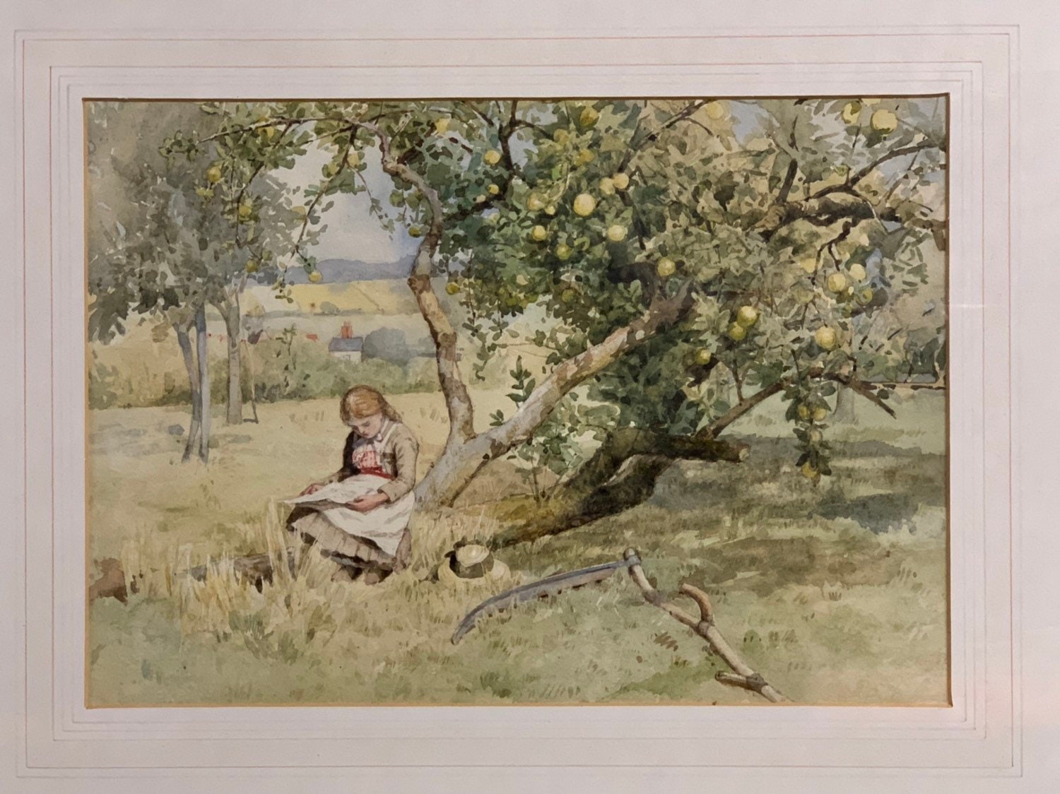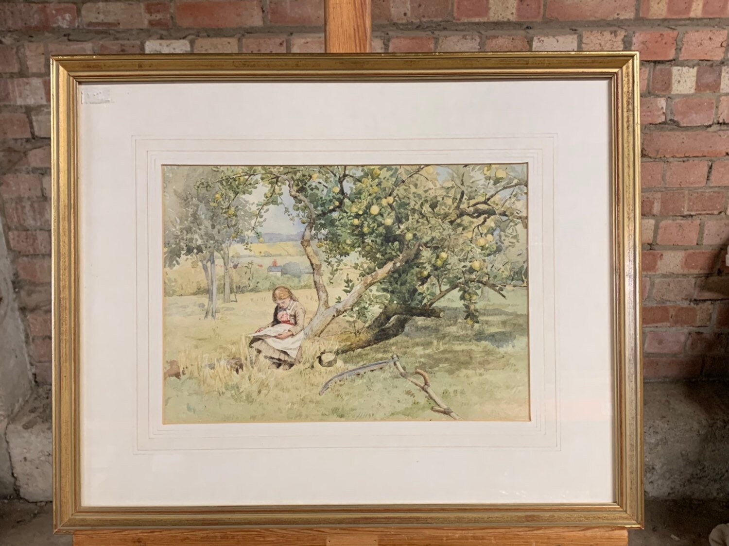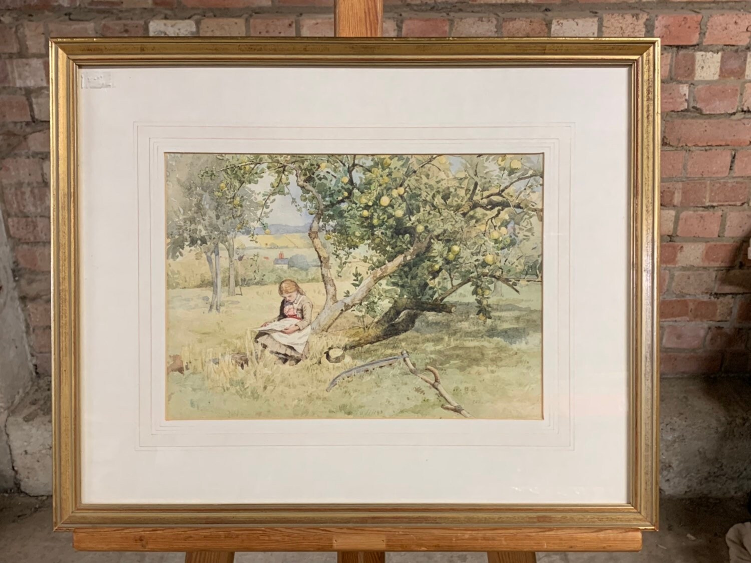 Superb 19th Century Watercolour Titled ‘In An Orchard’.