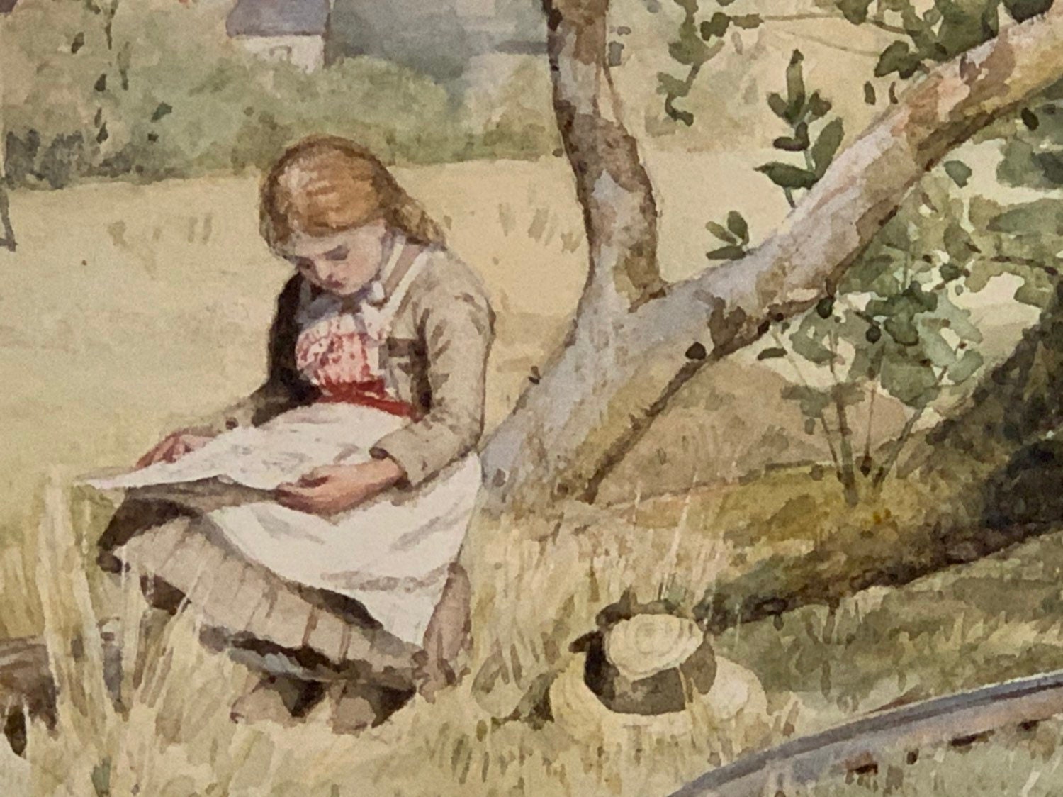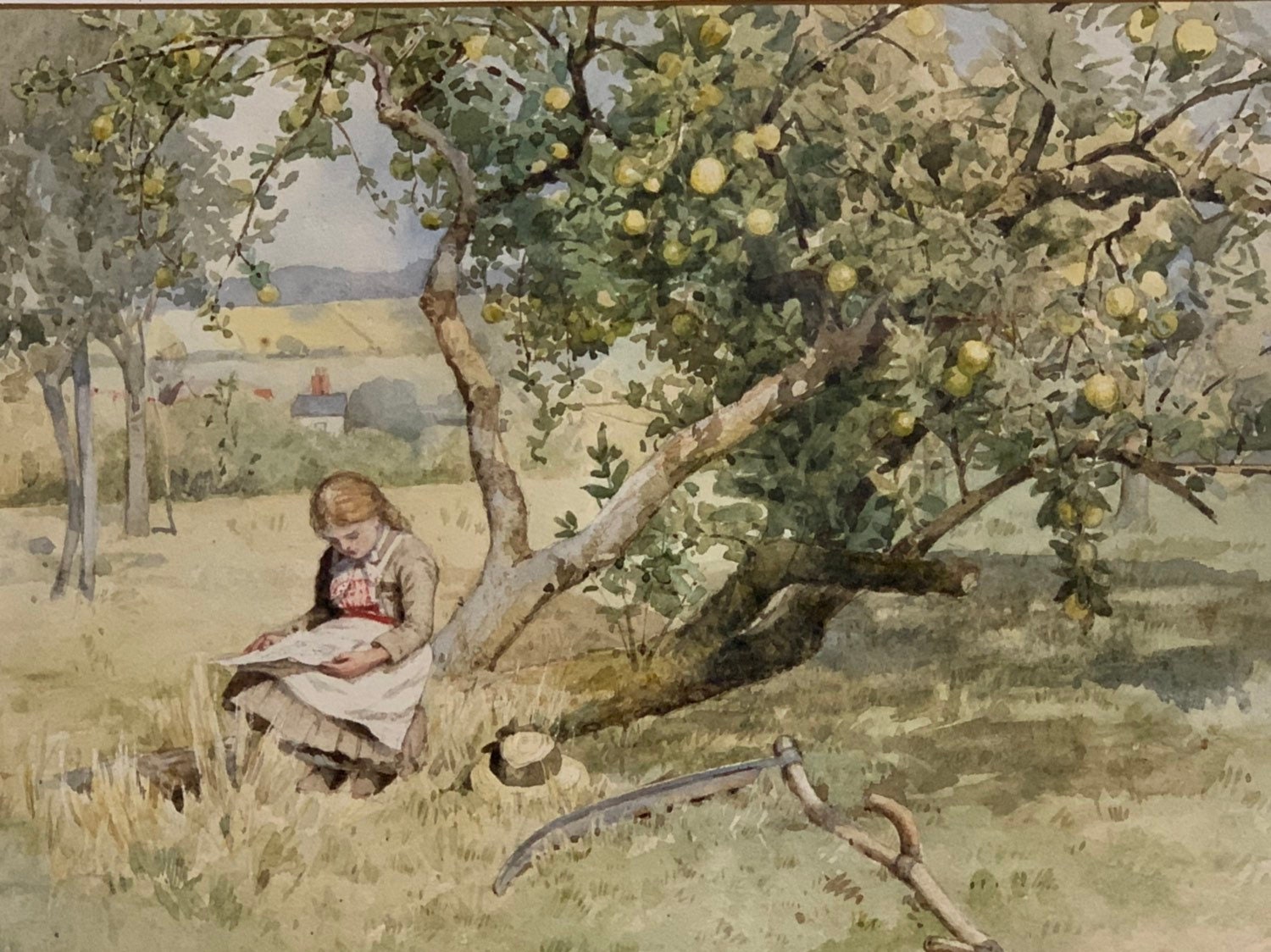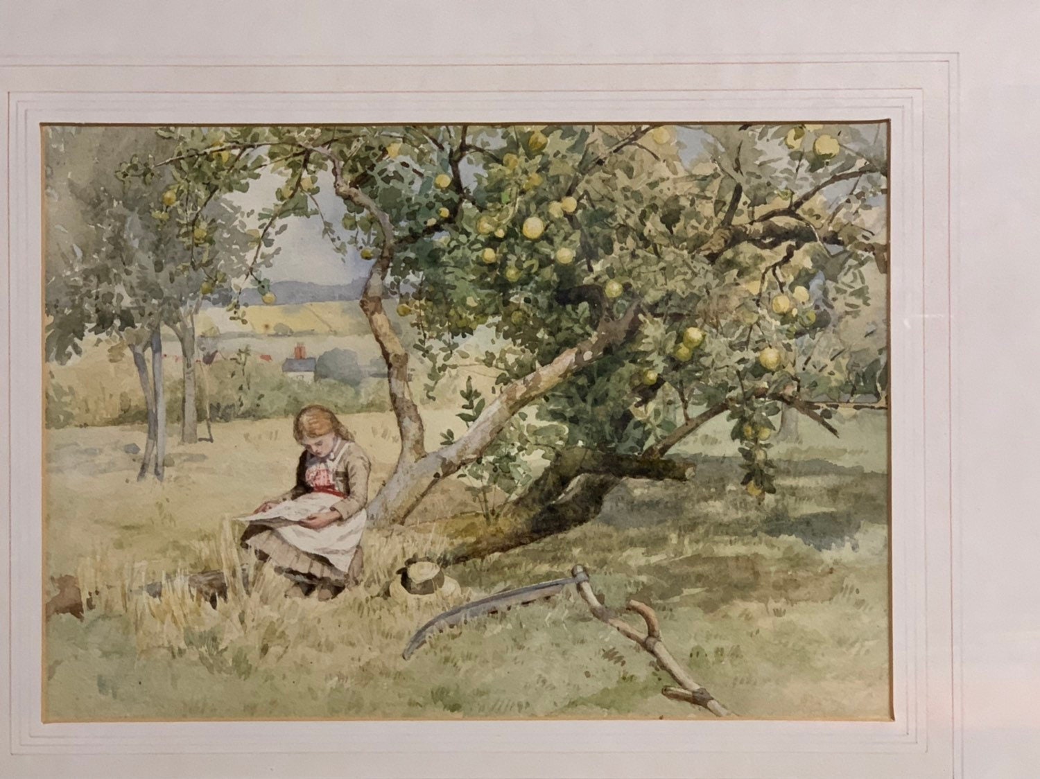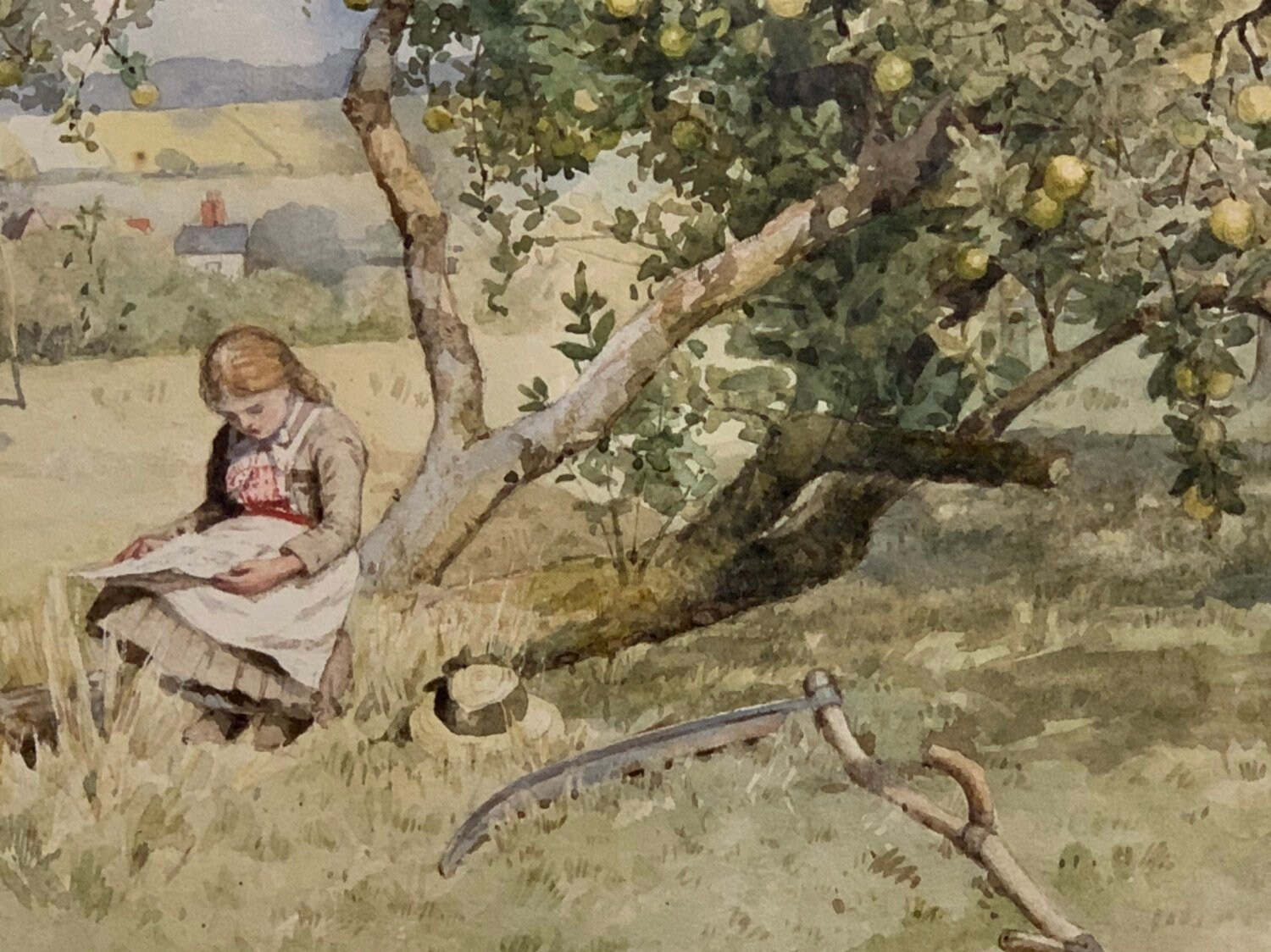 Superb 19th Century Watercolour Titled ‘In An Orchard’.