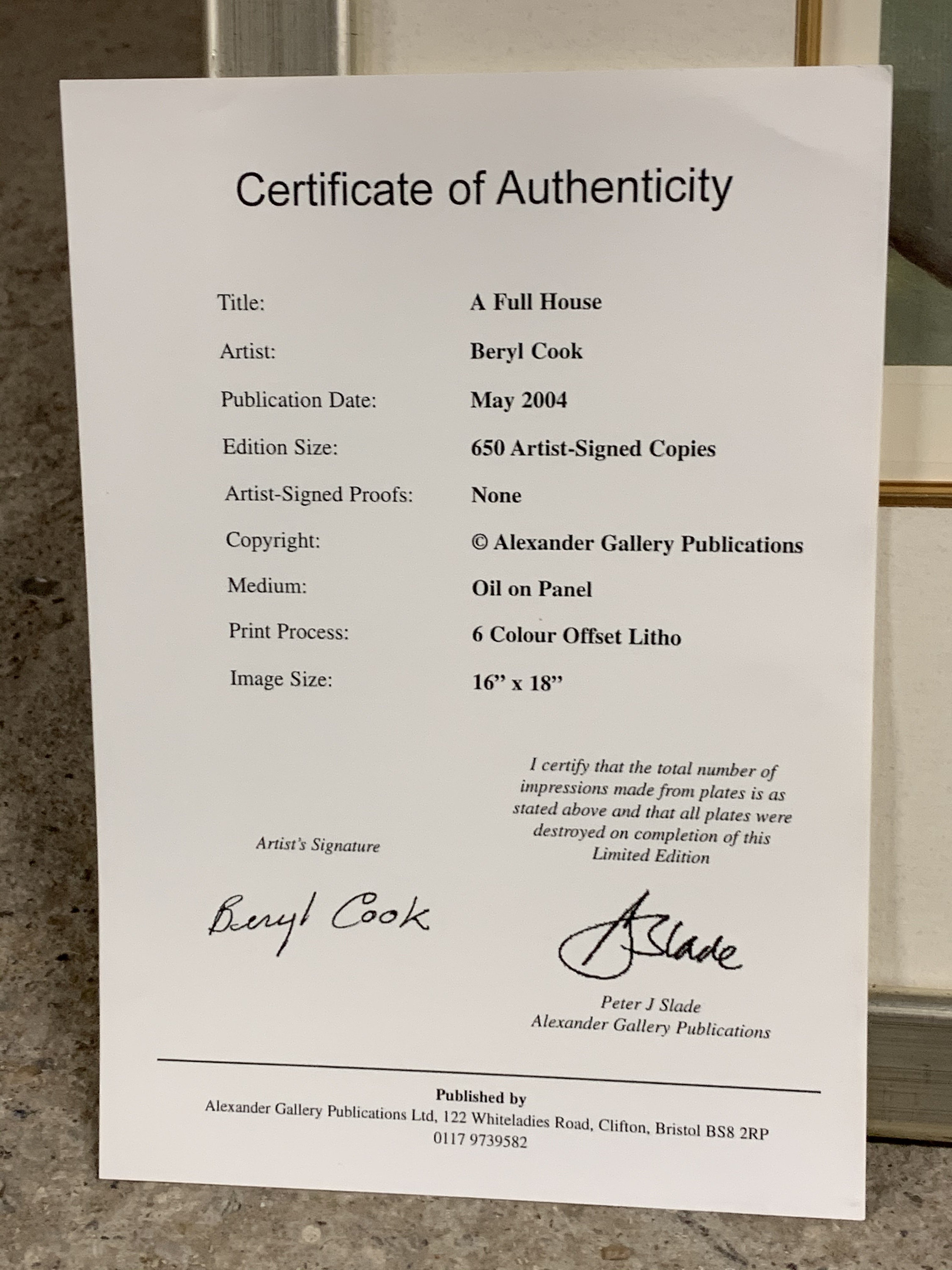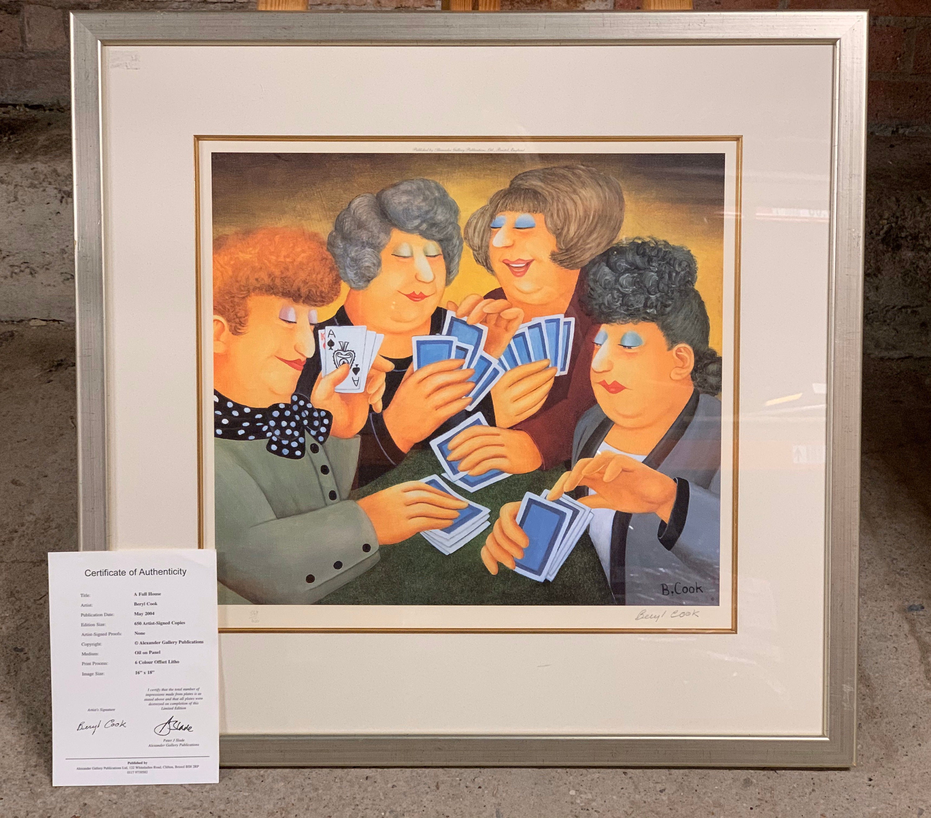 Fabulous Beryl Cook Offset Limited Edition Lithograph Titled ‘A Full House’ with Certificate of Authenticity, Signed By Artist Lower Right