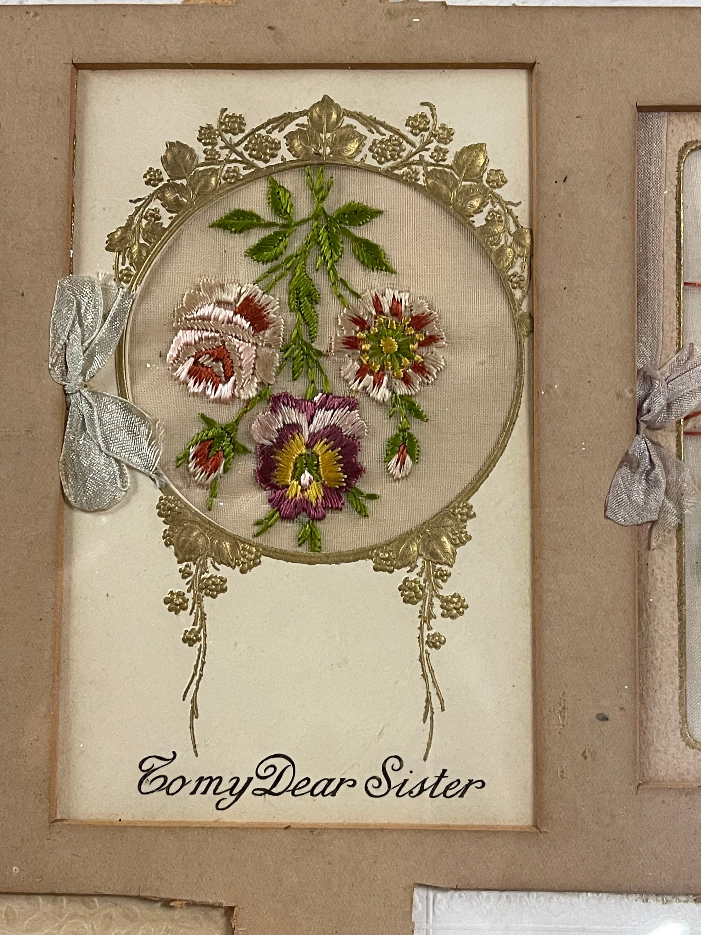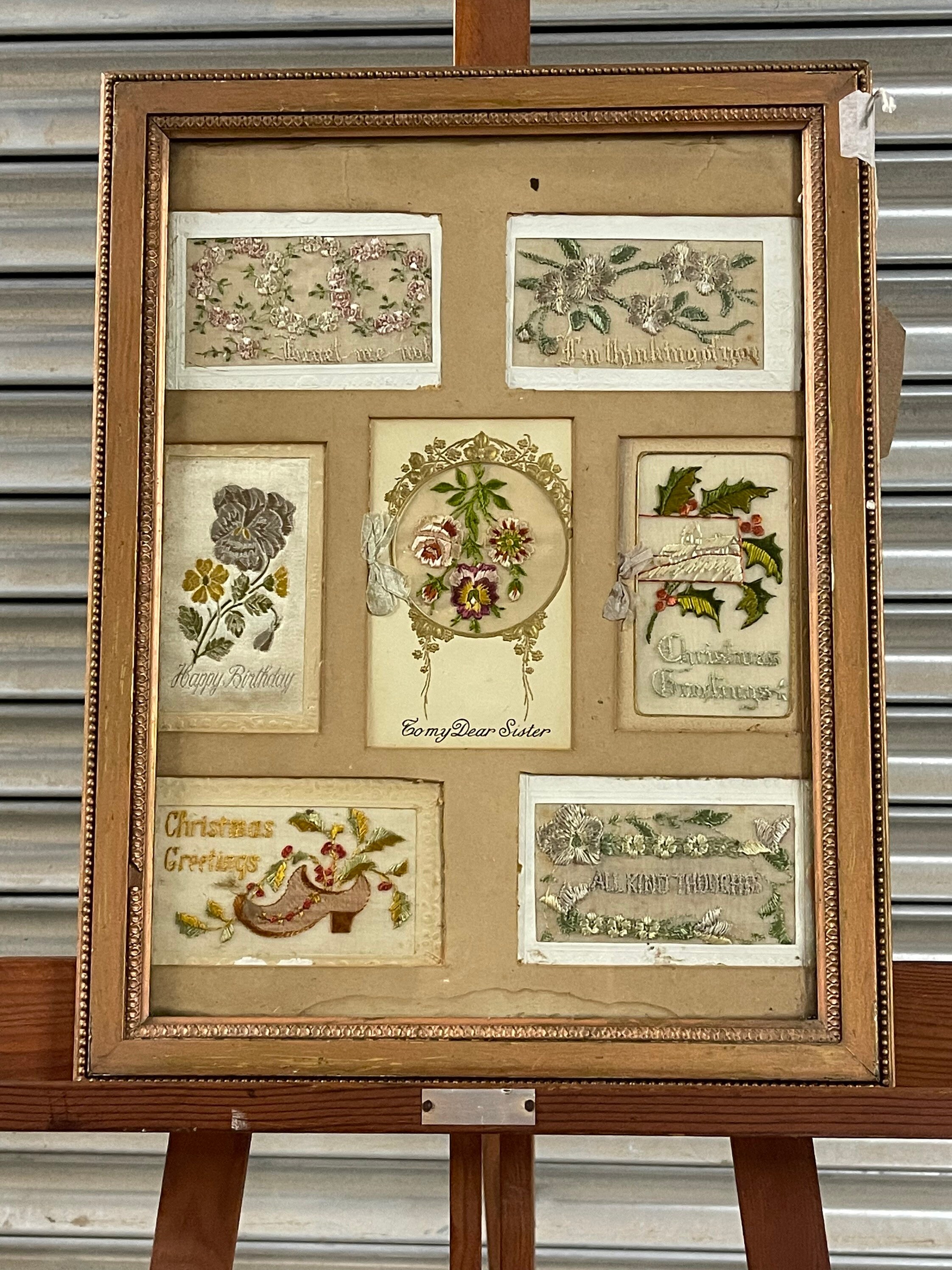 Antique 19th Century Silk Embroidery Needlepoint of Various Sentiments including Love, Christmas and Birthday Greetings